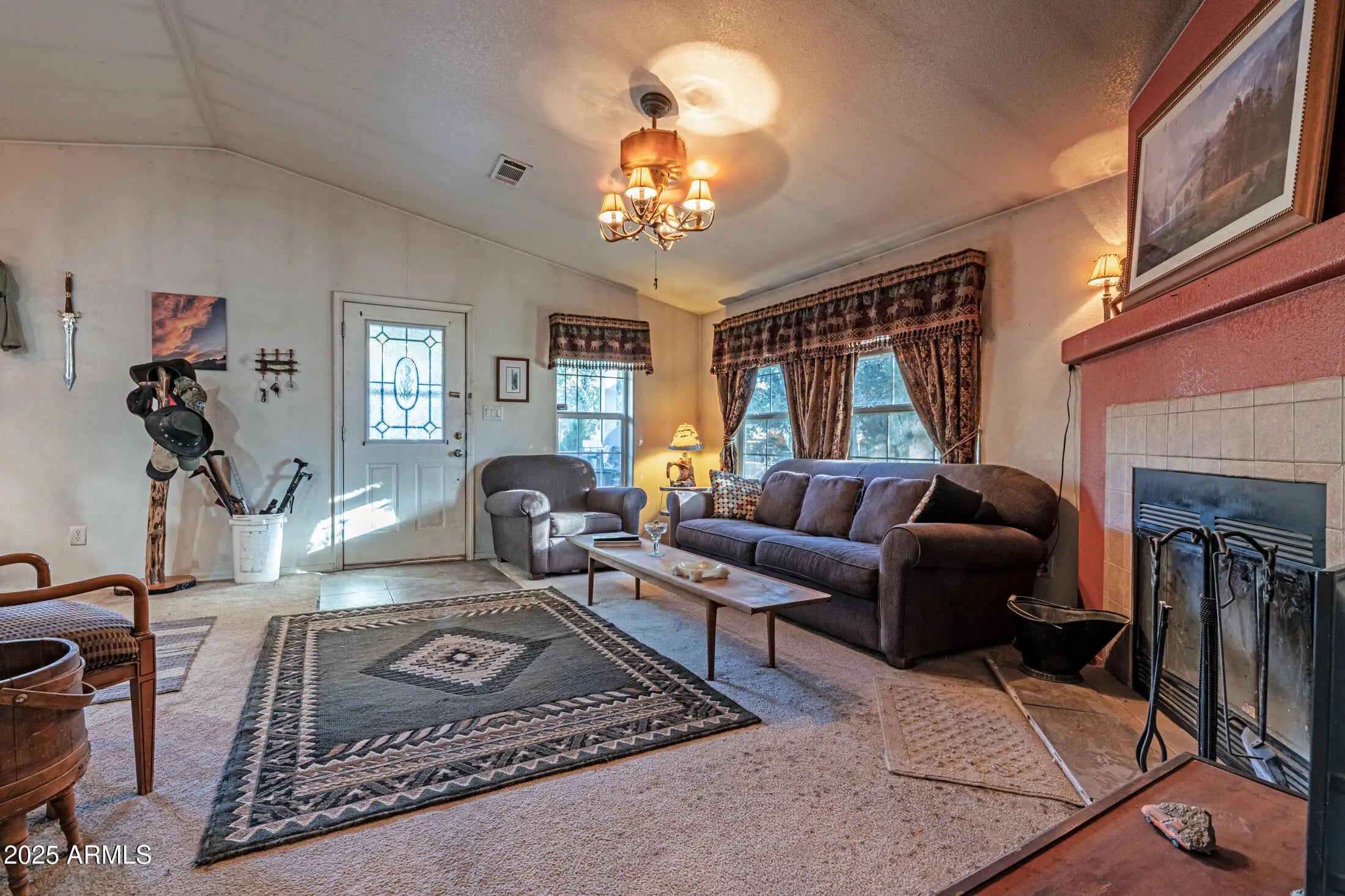 Two lots with sky scraping pines. Discover this top-of-the-line Palm Harbor home in the serene community of Overgaard, AZ, offering 2 bedrooms, 2 bathrooms, and a versatile den with kitchenette. Nestled on a generously sized 12,000 sq ft, this residence invites you to enjoy nature at its finest. Enter through a welcoming front deck into a spacious living area featuring an electric fireplace perfect for chilly nights. The spacious kitchen impresses with tile and copper inlays, perfect for culinary enthusiasts. Entertain guests at the outdoor bar or unwind in the tranquil hot tub. Additional storage is available in the 1-car garage. Upgraded 2''x6'' framing & concrete siding. Tour today to experience this exceptional property! Includes APN # 206-16-296 & APN # 206-16-295