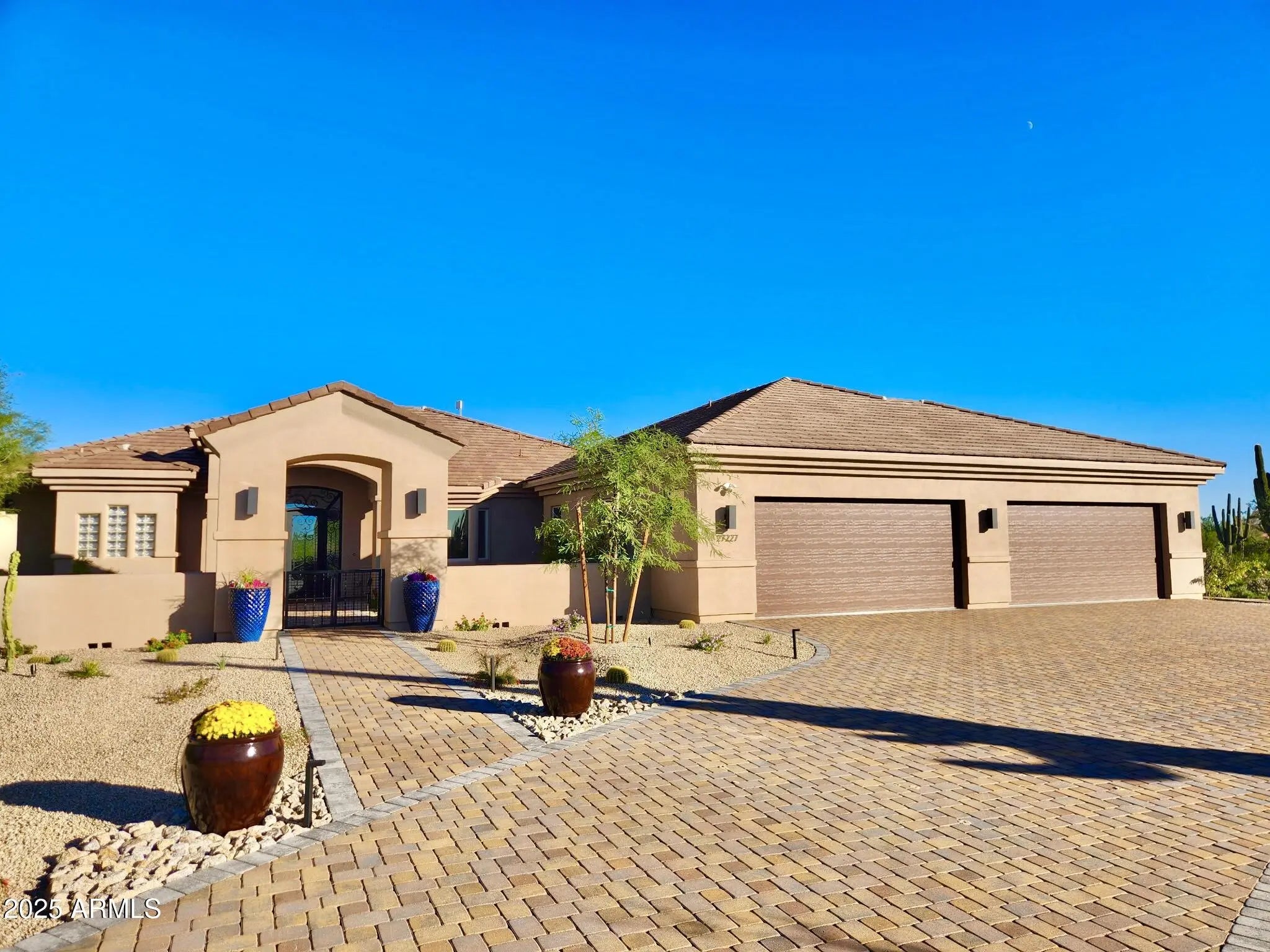 Multigenerational living at its finest! This extensively updated North Scottsdale estate with a 1,500 sq ft addition sits on a private 1-acre lot with no HOA, surrounded by mountain views and open desert. Designed for flexibility, it offers two master bedrooms, two additional bedrooms with en-suite baths, and a spacious den. An attached 2-bedroom, 1-bath guest house adds versatility, while the extended, air-conditioned 4-car garage suits car lovers or a home gym. The bright open layout features tall ceilings, modern finishes, and energy-efficient upgrades. Enjoy a resort-style backyard with a pool, spa, covered patio, low-maintenance landscaping, and RV or boat parking. Close to golf, dining, and top schools, this home offers luxury, privacy, and freedom with no HOA.