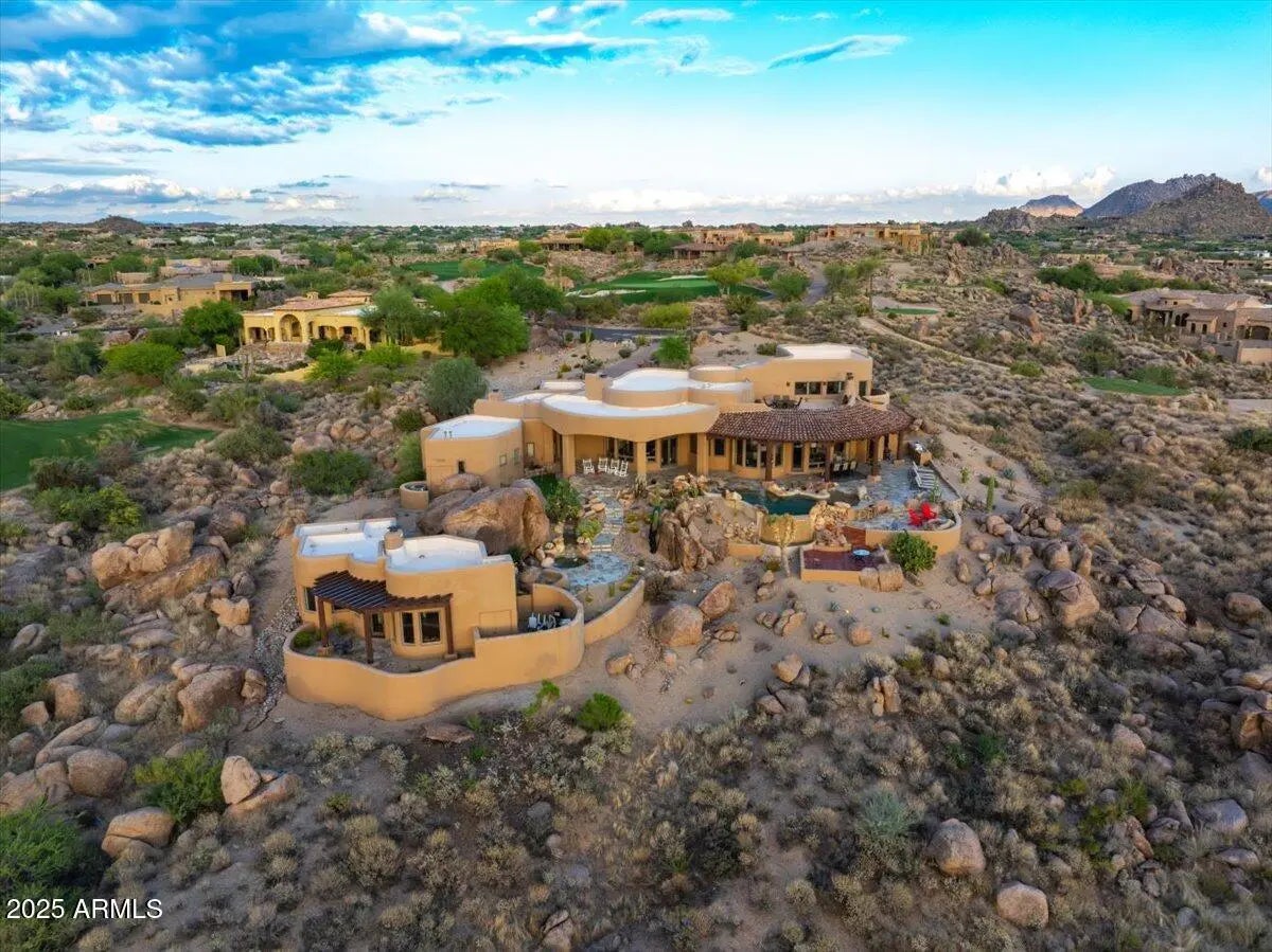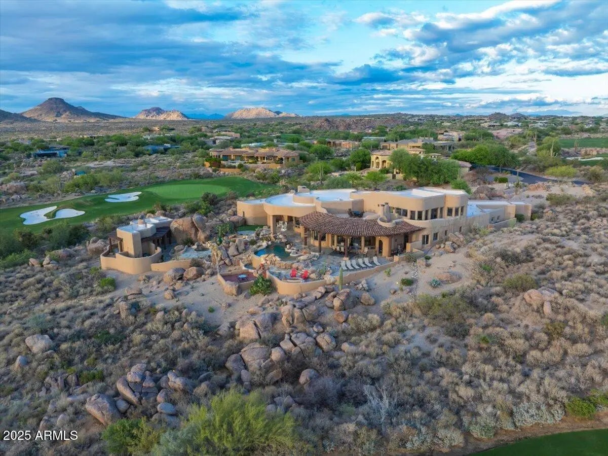 Nestled in a prestigious gated community, this meticulously maintained and Ideally positioned home captures the sweeping sunset and golf course views, this exceptional residence offers a seamless blend of elegance , comfort, and desert charm. The thoughtfully designed layout includes a private guest casita, ideal for visitors or flexible living needs. Refined finishes and inviting indoor-outdoor spaces make the most of the stunning scenery-perfect for enjoying Arizona's dramatic skies, lush fairways, and unforgettable sunsets. A true retreat for those seeking beauty, privacy ,and effortless living.