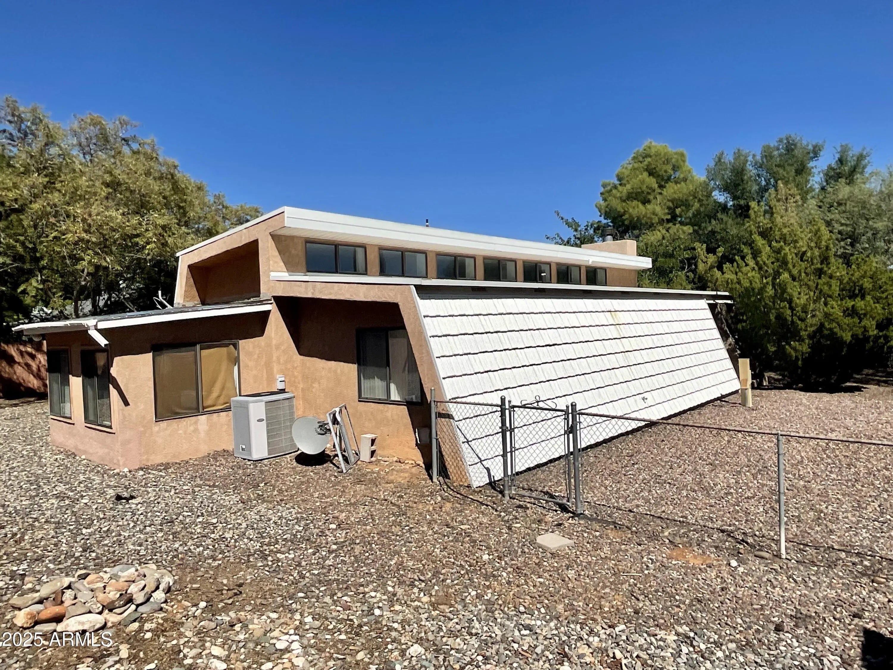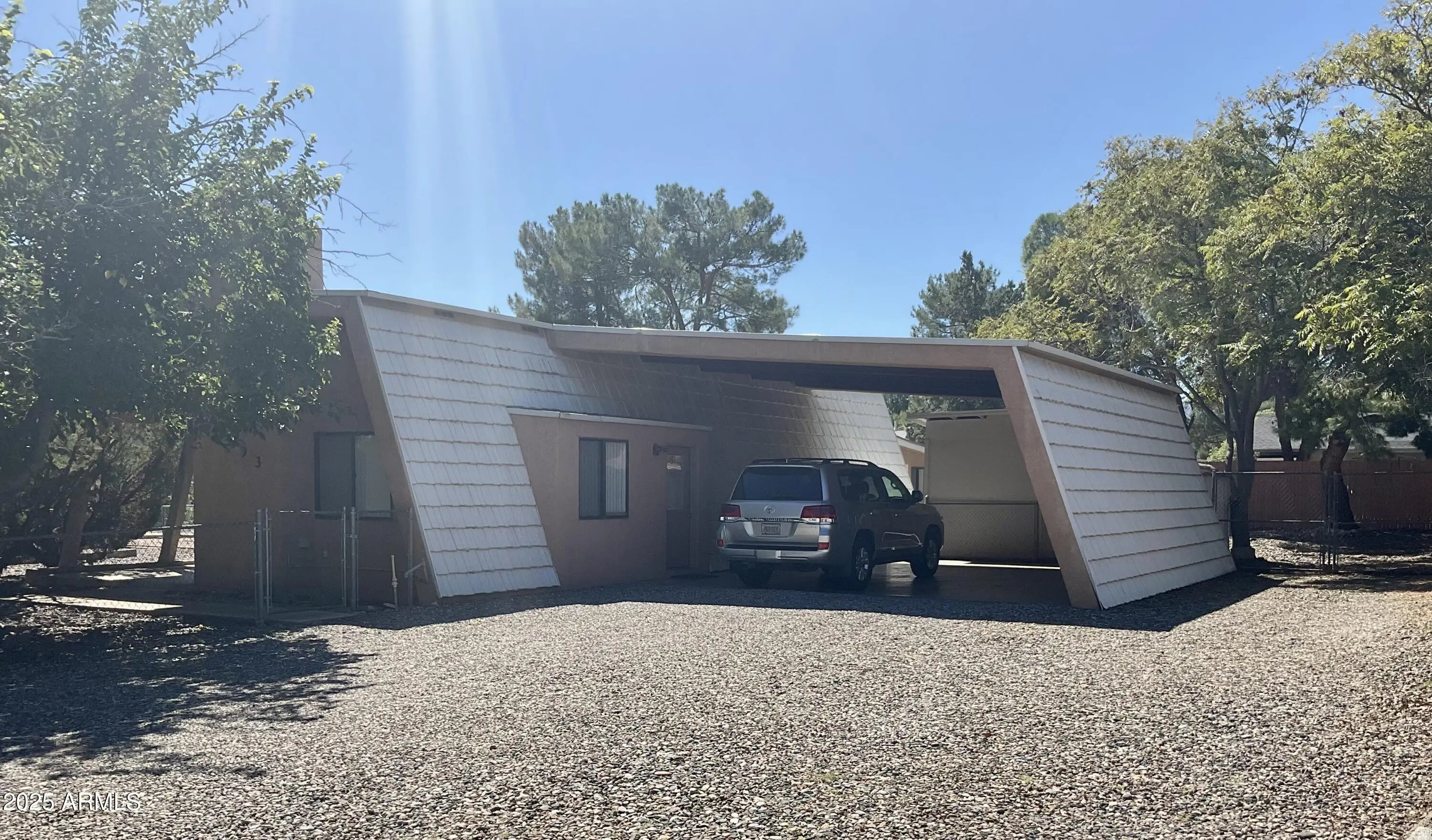 Interesting steel constructed modern A frame home w/2 car carport, with row of clestery windows up high in living room. Gas fireplace in living room, with open Floorplans to kitchen & dining. All ceramic tile floors thru out. 3 bedrooms & enclosed AZ room/den in rear. Large lot with large shade tree,fenced yard & storage shed & workshop. Sellers have updated kitchen, wall oven & microwave, stove & refrigerator. lights/fans. Exterior stucco updated & painted along with interior paint. Roof is permanent metal shingles & shingle roof on rear has been updated. All electric home, except fireplace gas log. Landscaping all complete, & ready to move in condition. Seller would consider Owner carry terms possible, 5.0% interest for up to 15 years, with at least 20% down, upon approved credit.