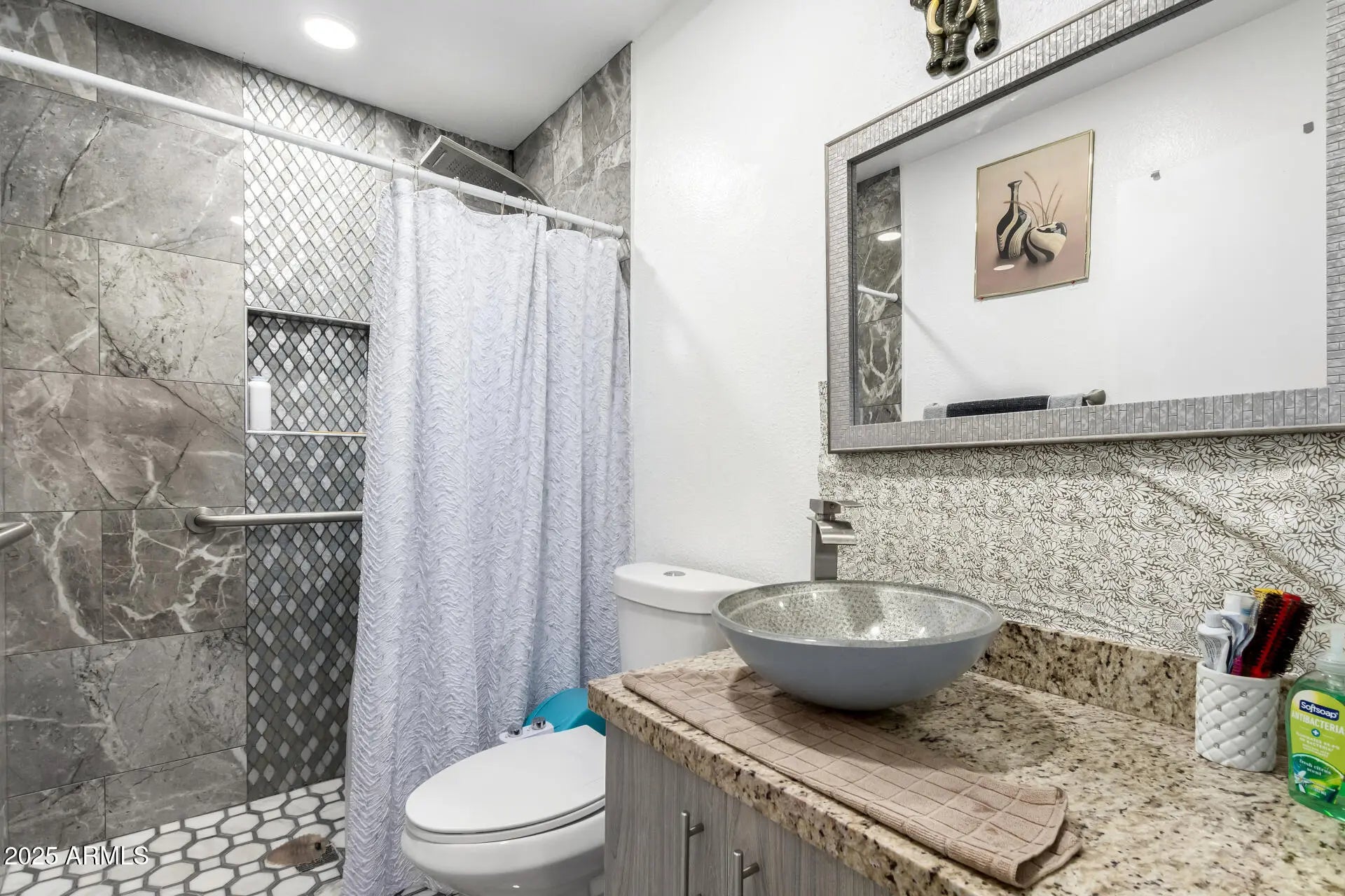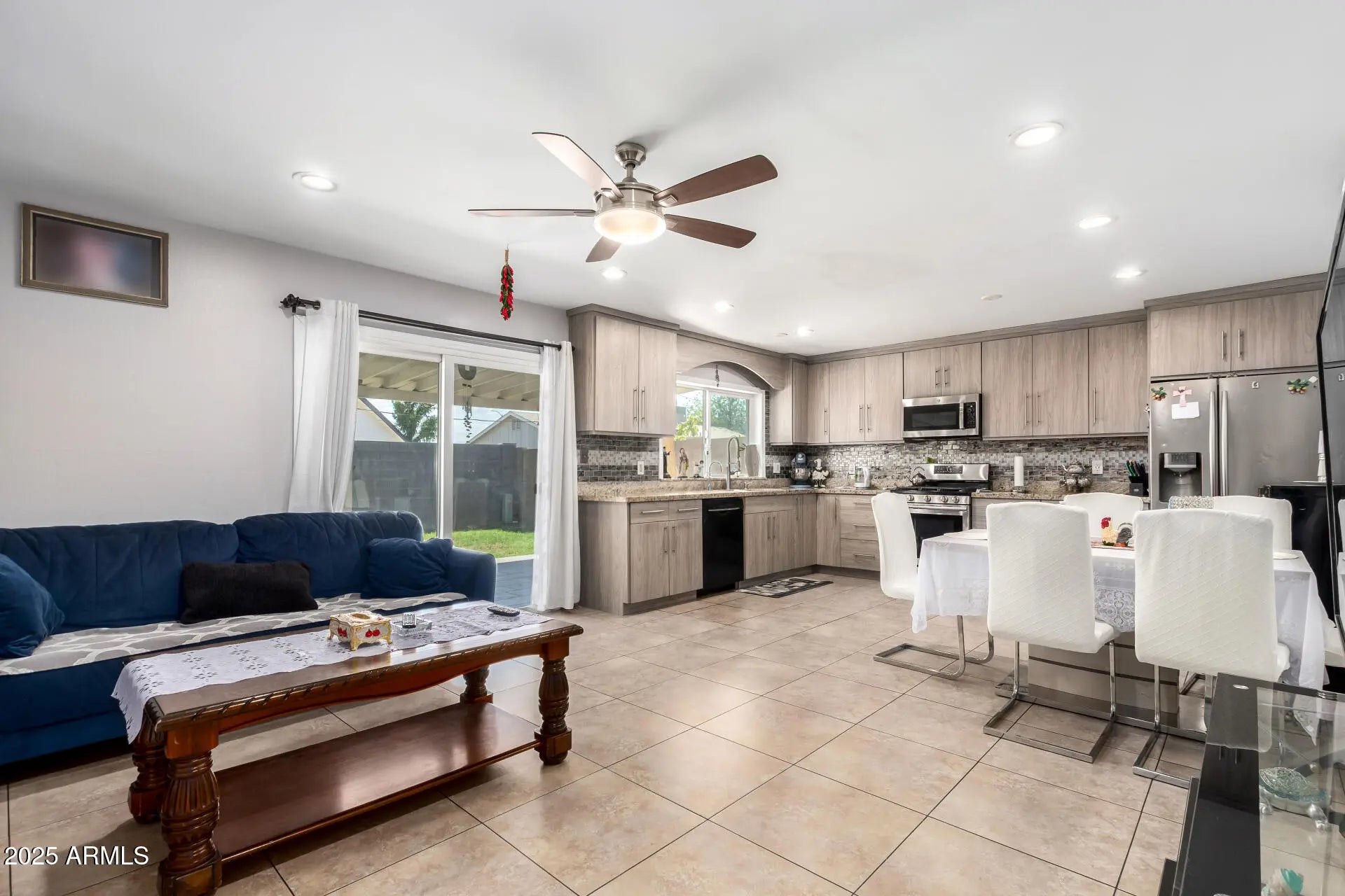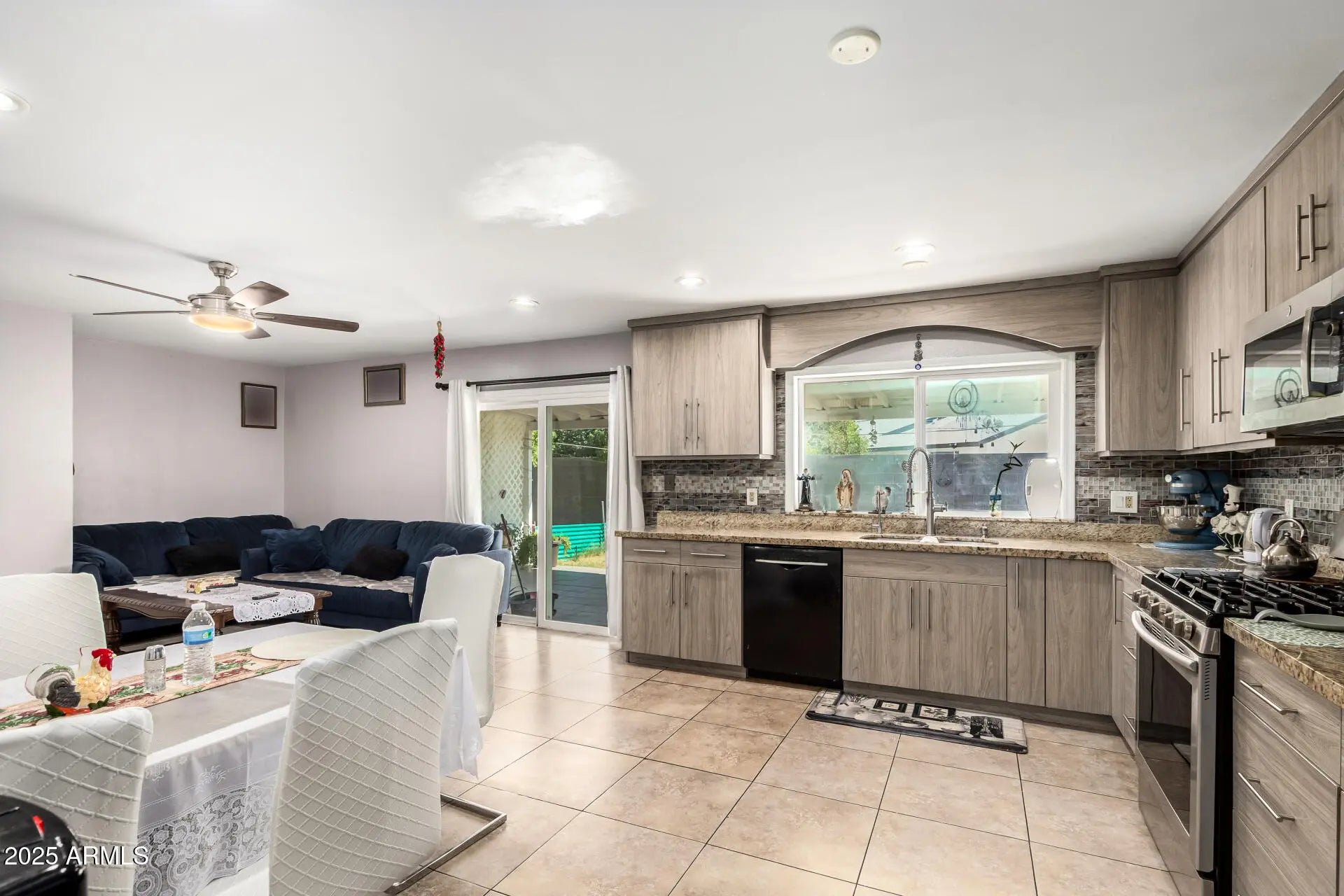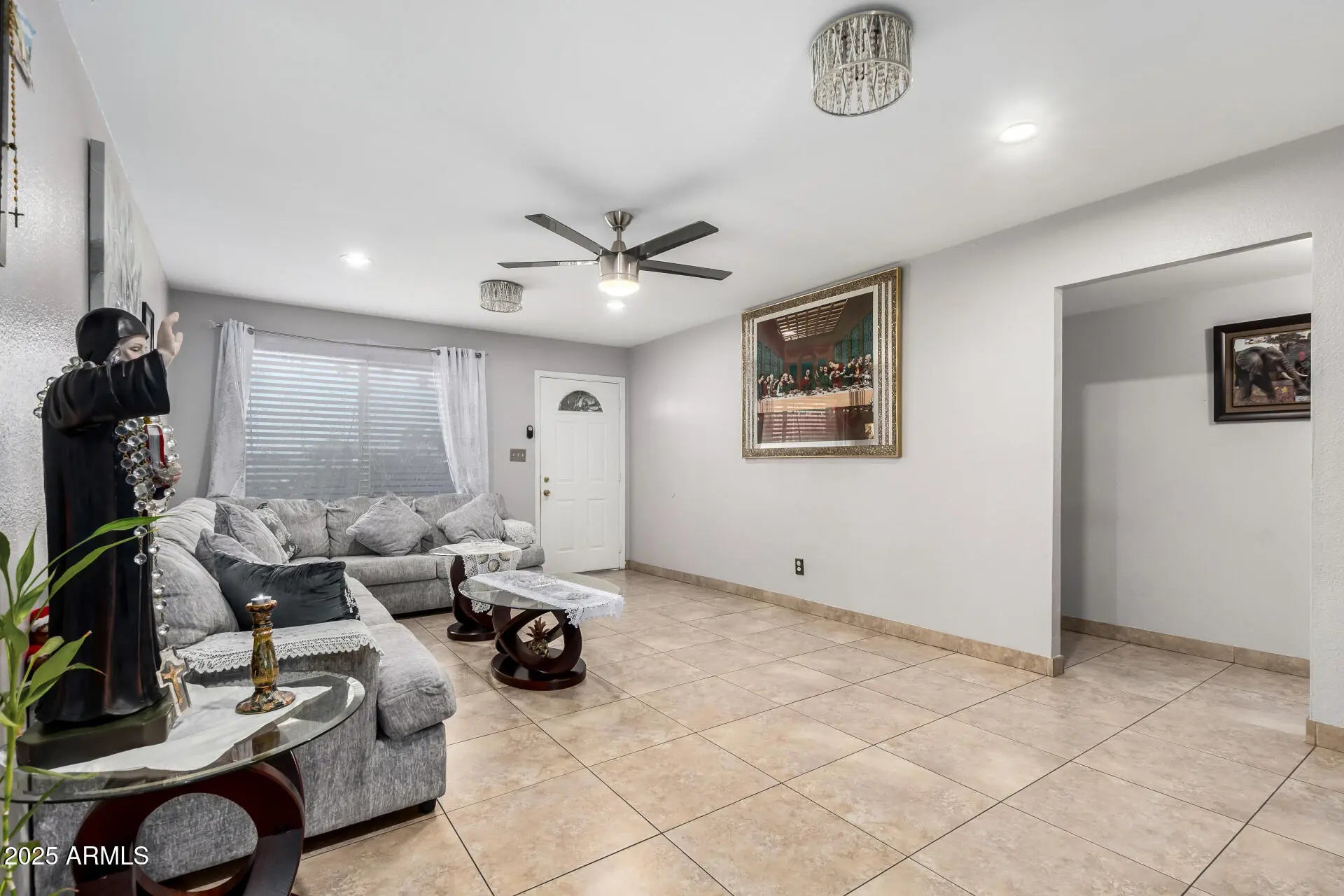 Fall in love with this fabulous 3-bed, 2-bath home in Glendale, AZ! Displaying a 2-car garage and a welcoming front porch, this gem sets the tone from the start. Inside, abundant natural light fills the inviting living room and large great room. Thoughtful details include tile flooring, ceiling fans, and neutral color palette throughout. Impeccable kitchen comes with recessed lighting, stainless steel appliances, tile backsplash, plenty of cabinetry, and granite counters. Sizable primary bedroom promises a good rest, featuring a private bathroom with a convenient grab bar in the shower. Spacious backyard provides a covered patio where you can unwind while enjoying your favorite beverage. Act now before it's gone. Hurry!