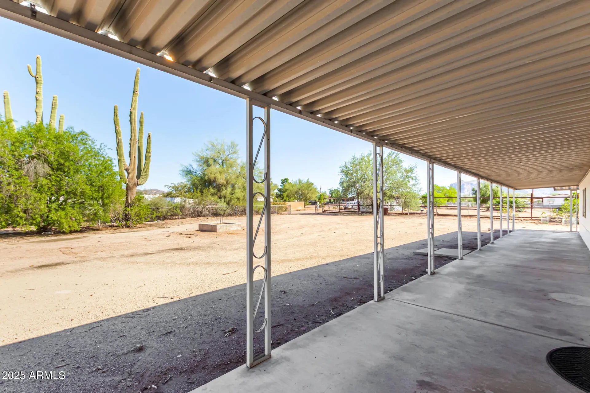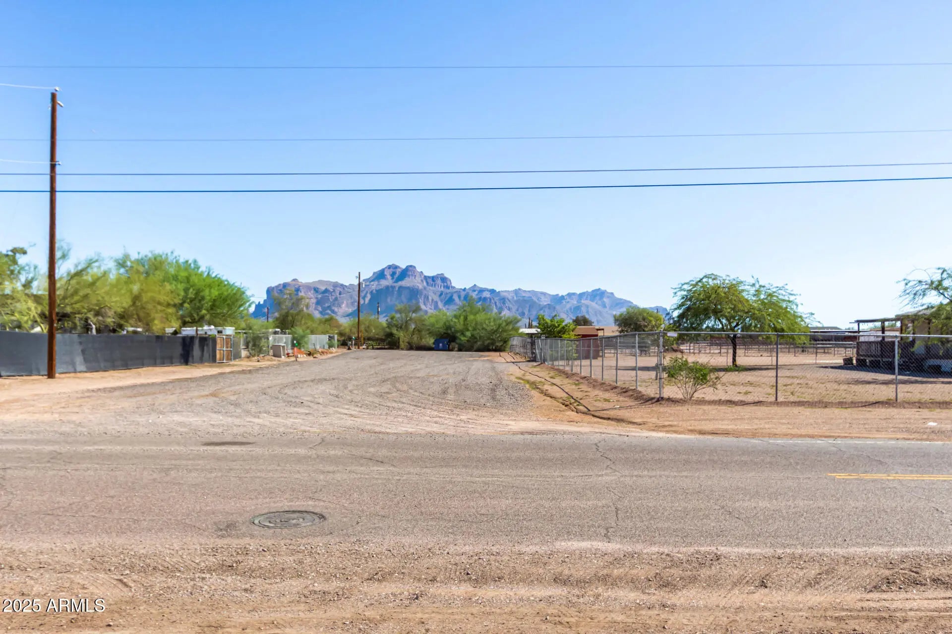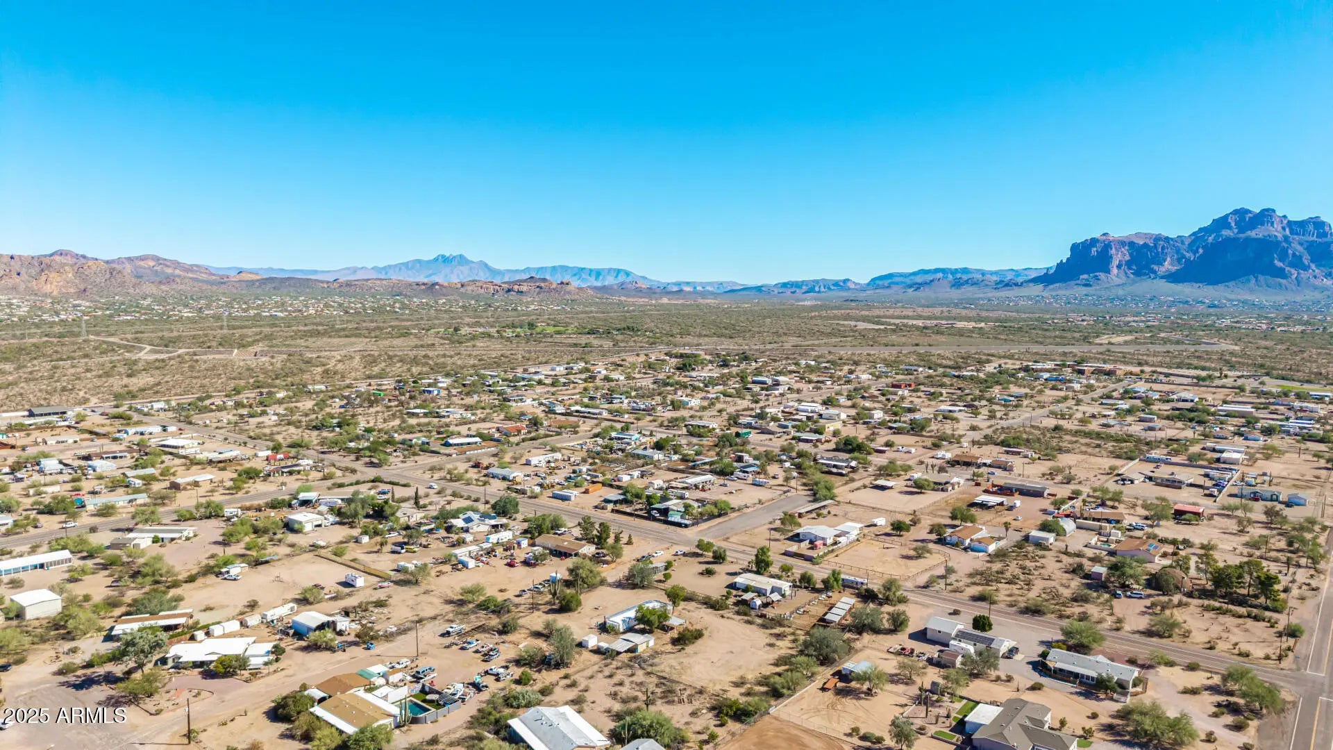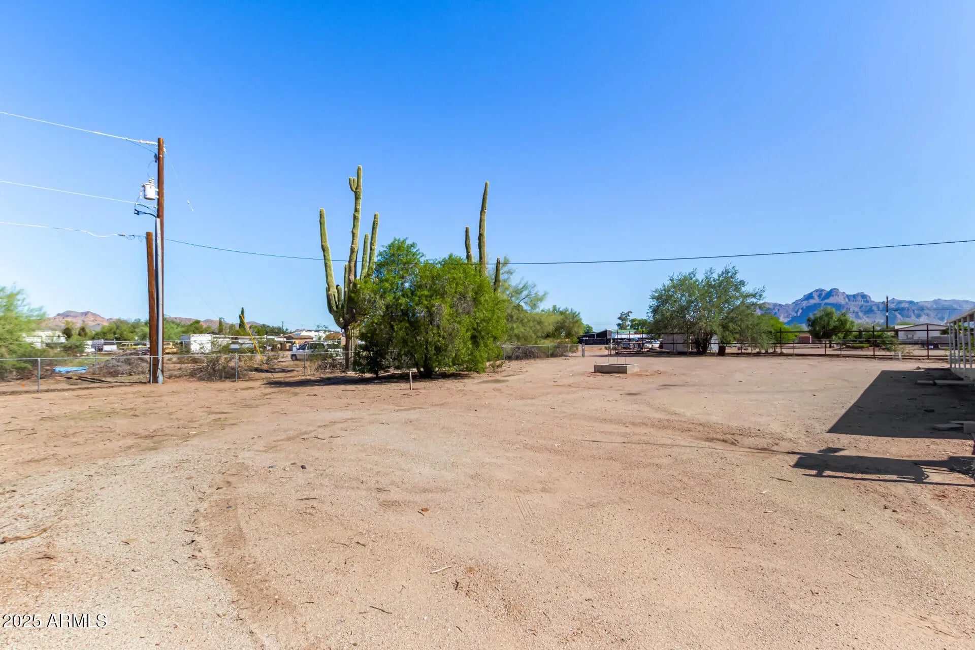 ***Property available to view beginning 10/25*** Enjoy peaceful desert living with easy access to favorite recreation sites like Salt River Tubing, Canyon Lake, and endless horse/ATV trails. You'll love the panoramic views of the Superstition Mountains from *both* porches of this charming 2-bed, 2-bath home on 1.25 acres in Apache Junction. The property offers room for horses, gardens, or future expansion—ideal for those dreaming of a custom home site. Inside, an open layout features warm wood-look flooring, neutral tones, and a modern kitchen with white shaker cabinets and updated stainless-steel appliances. The primary suite includes a private bath with extra storage space as well as a separate tub and shower. Recent upgrades include buried electrical lines and a completely redone panel, providing a solid framework for future building or additions. Step outside to a covered patio, outdoor shade ramada, storage sheds, workshop, and endless views that showcase Arizona's natural beauty.