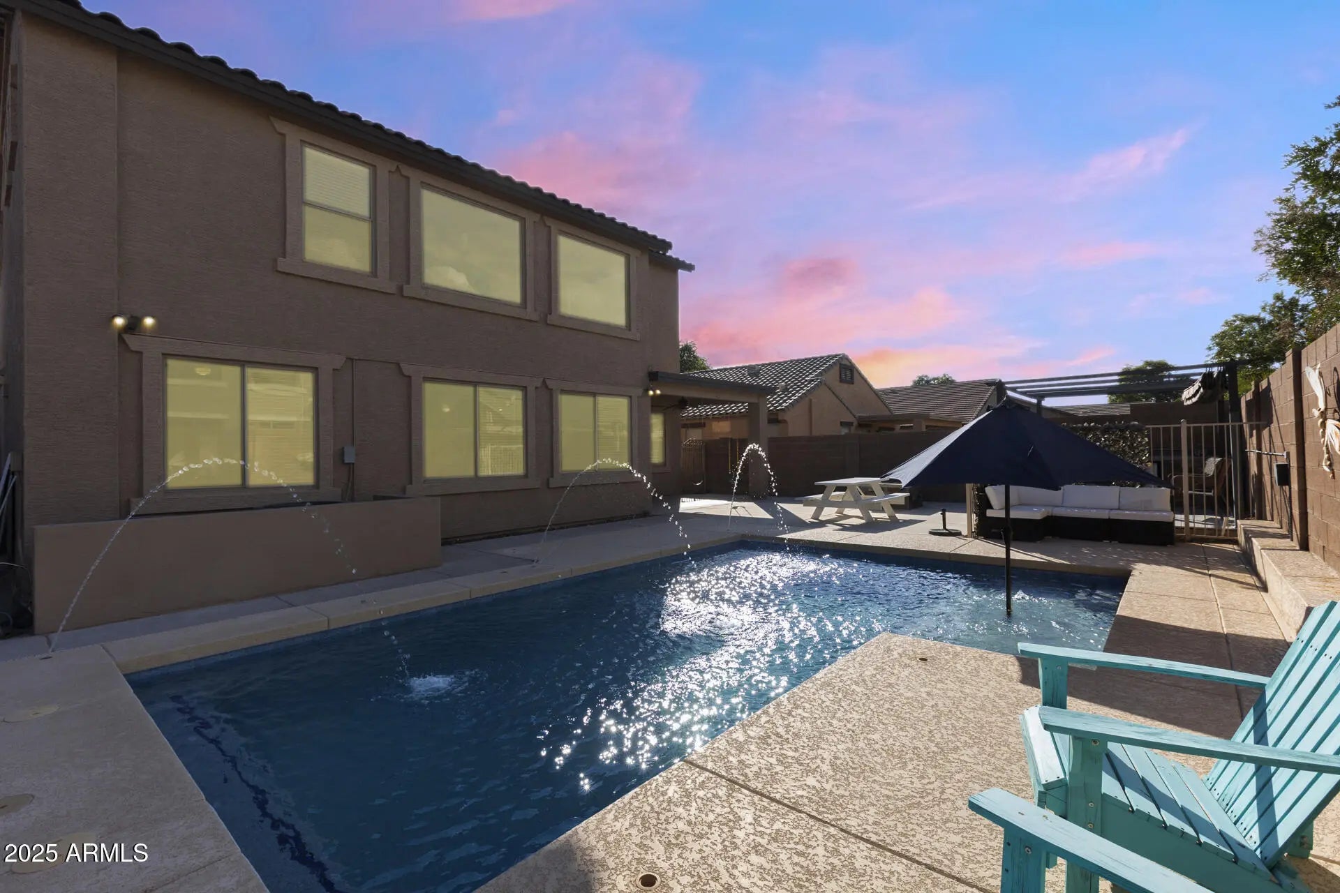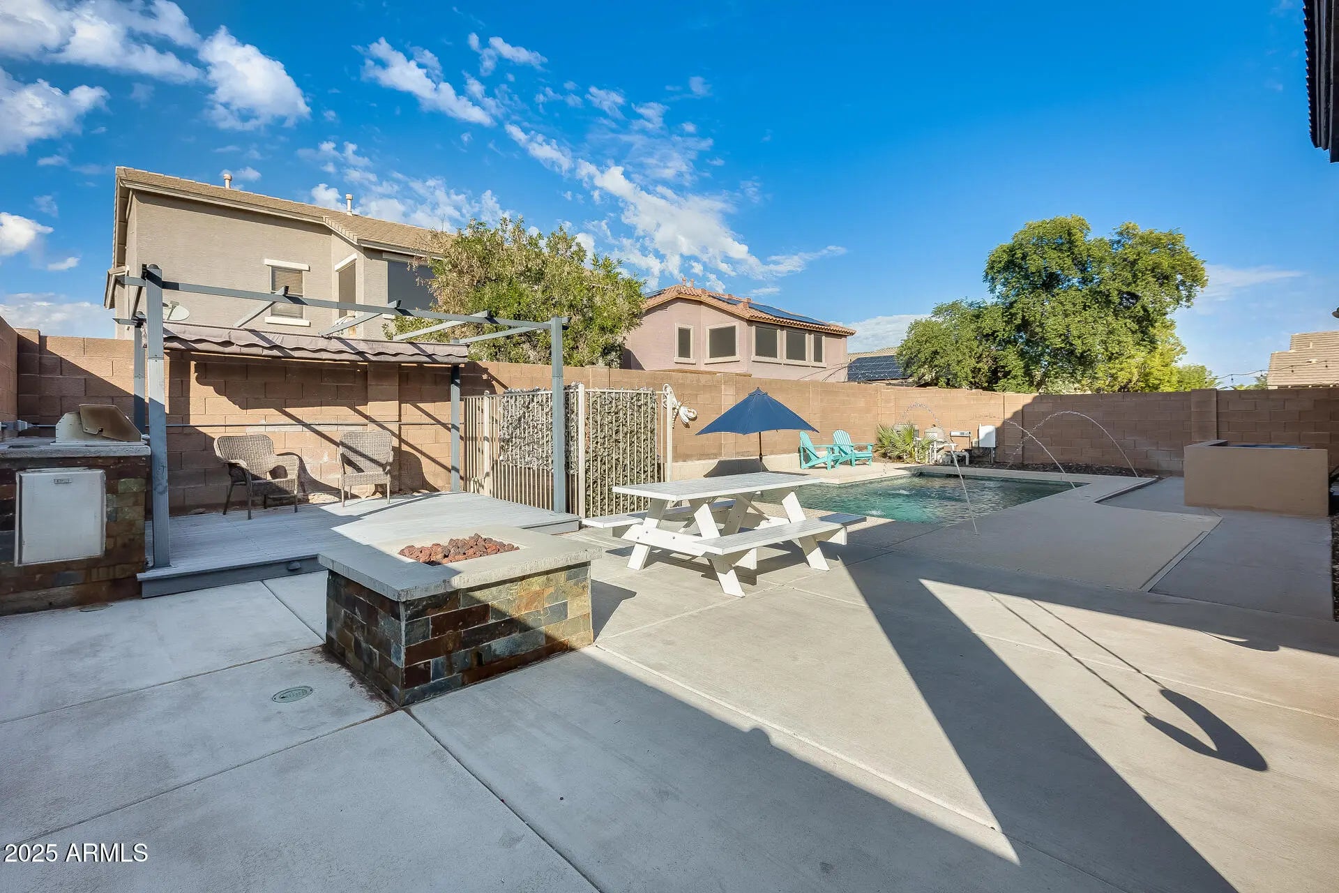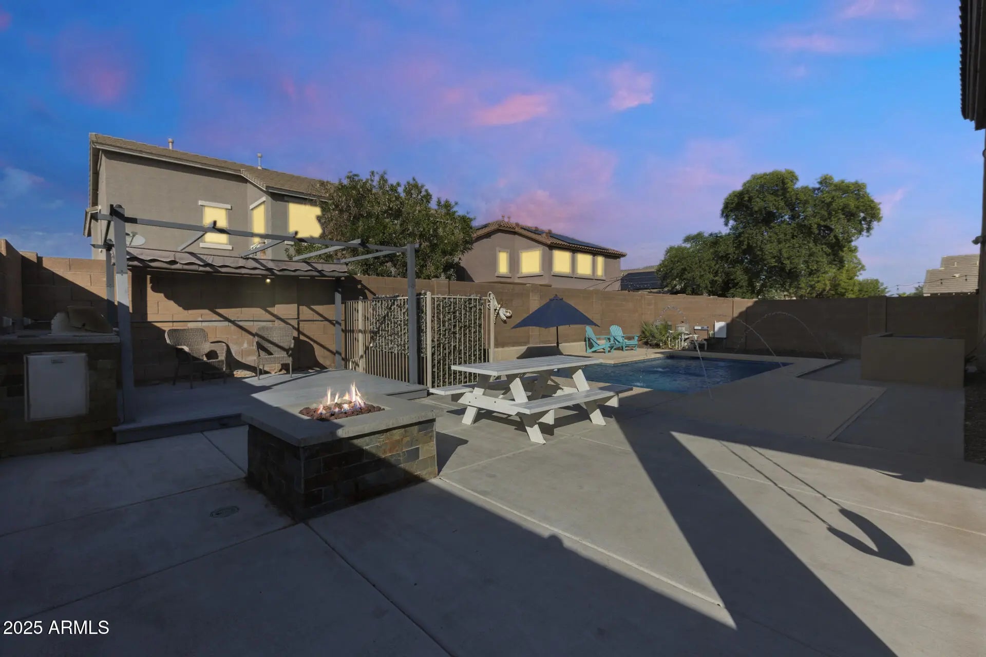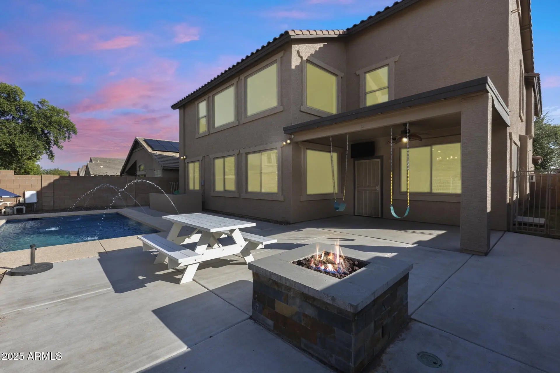 Discover space, style, and comfort in this beautifully renovated 4-bedroom, 2.5-bath home with an office, loft, and 3-car garage, offering 2,950 sq. ft. of living space. Featuring lovely curb appeal and a prime location, this home impresses from the moment you arrive. Featuring newer dual 4-ton Trane A/C units (2019) that add lasting value and comfort. Additional updates include new flooring and fresh paint. Inside, enjoy formal living and dining rooms, a large eat-in kitchen with an island, and an open family room. The primary suite offers an updated shower (2025) and tub plus a spacious walk-in closet. Outside, relax or entertain in your private backyard oasis complete with a covered patio, BBQ area, gas firepit, play area, plus a sparkling pool (approx. 6 years old)! Enjoy a welcoming community with basketball and sand volleyball courts, playgrounds, and easy access to Loop 303, Loop 101, shopping, restaurants, libraries, spring training facilities, and more!