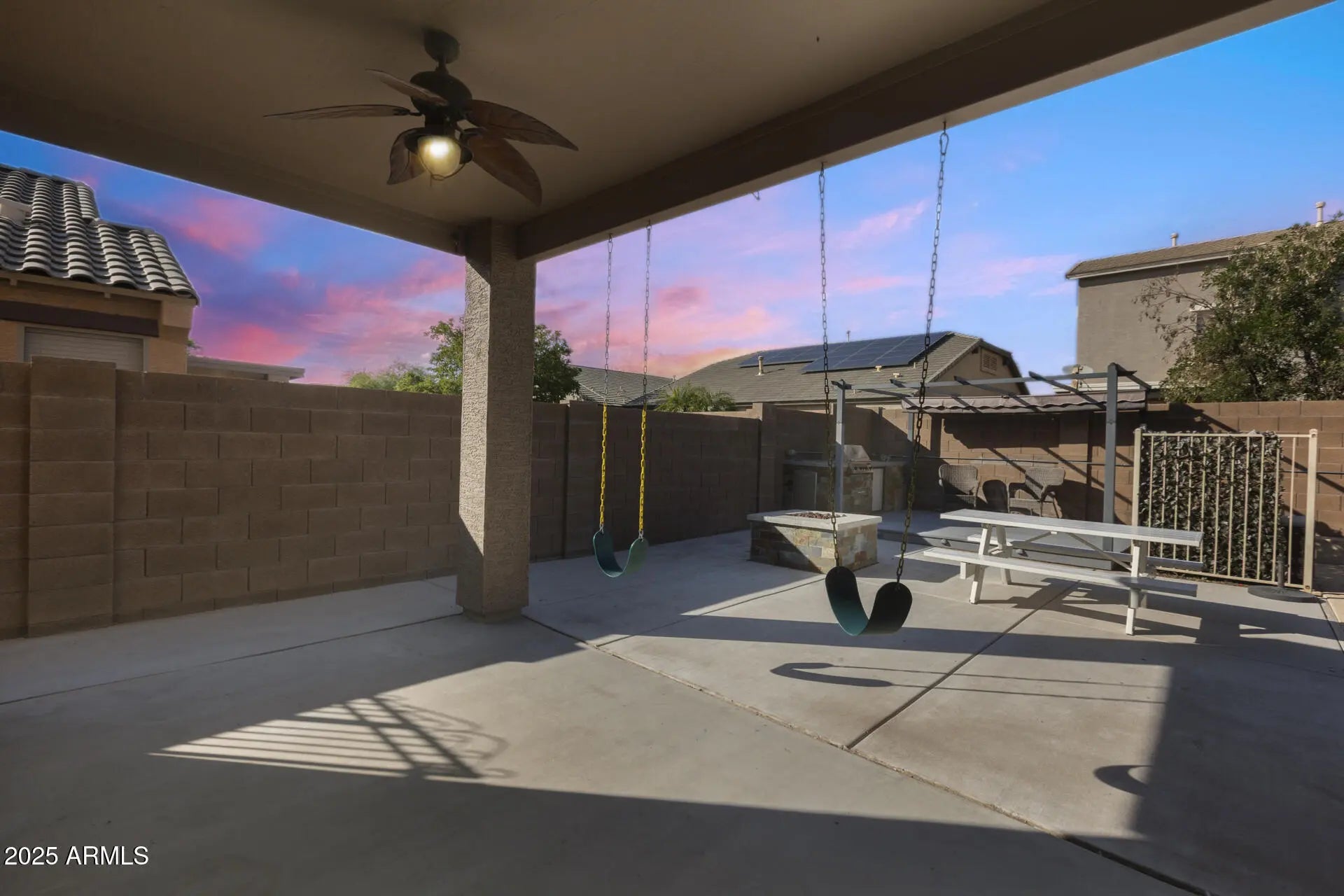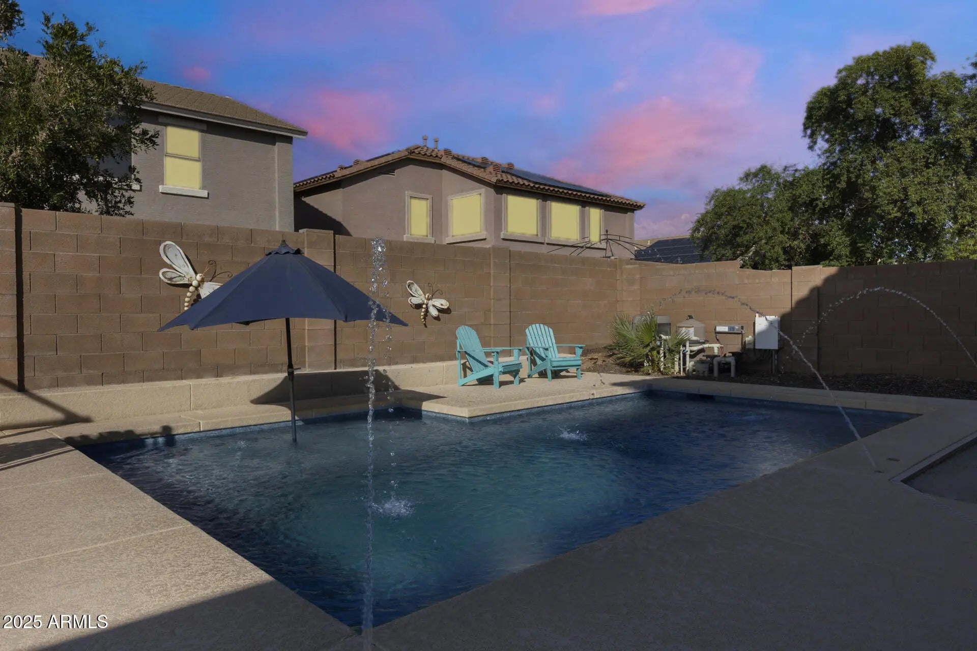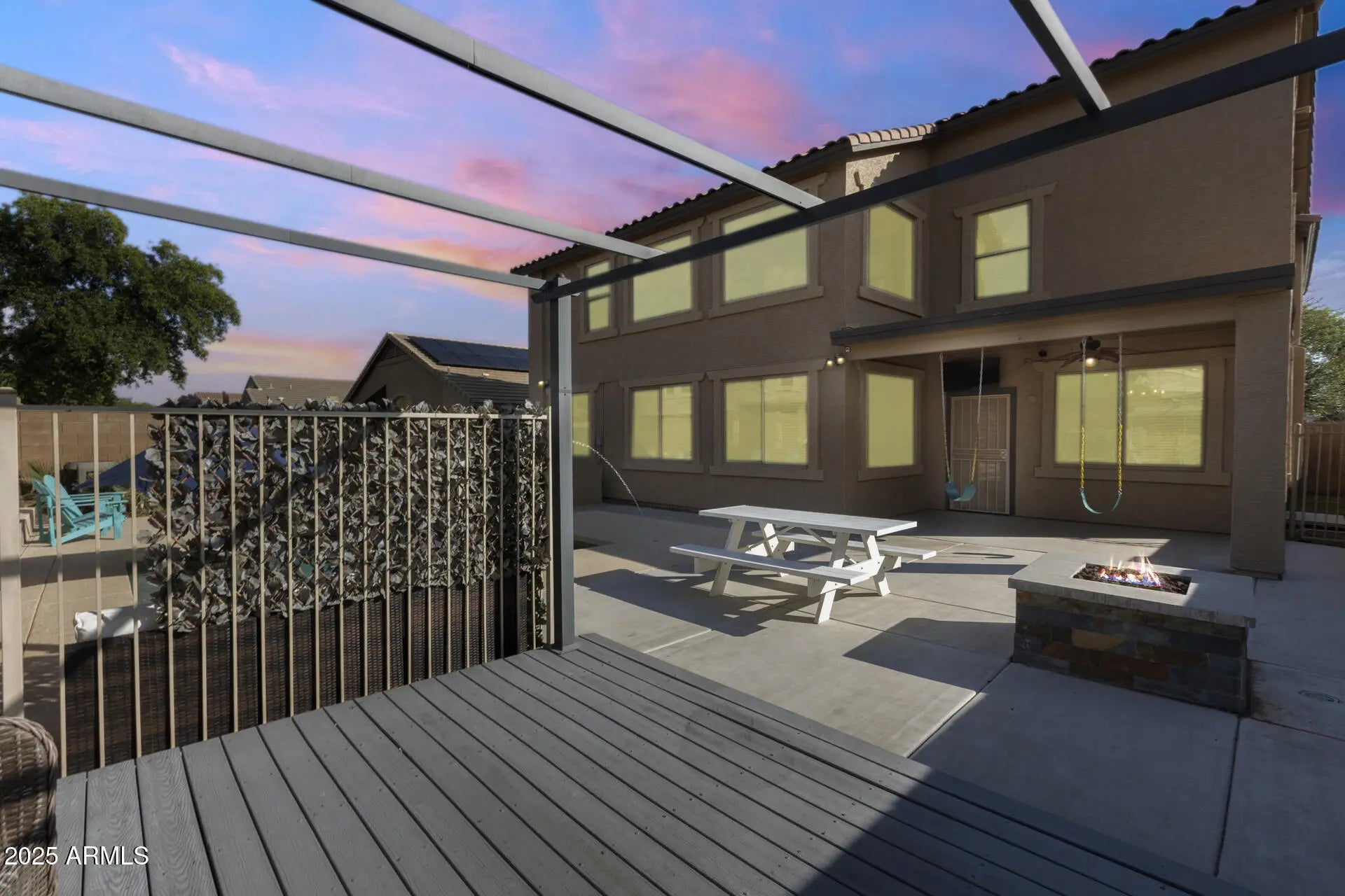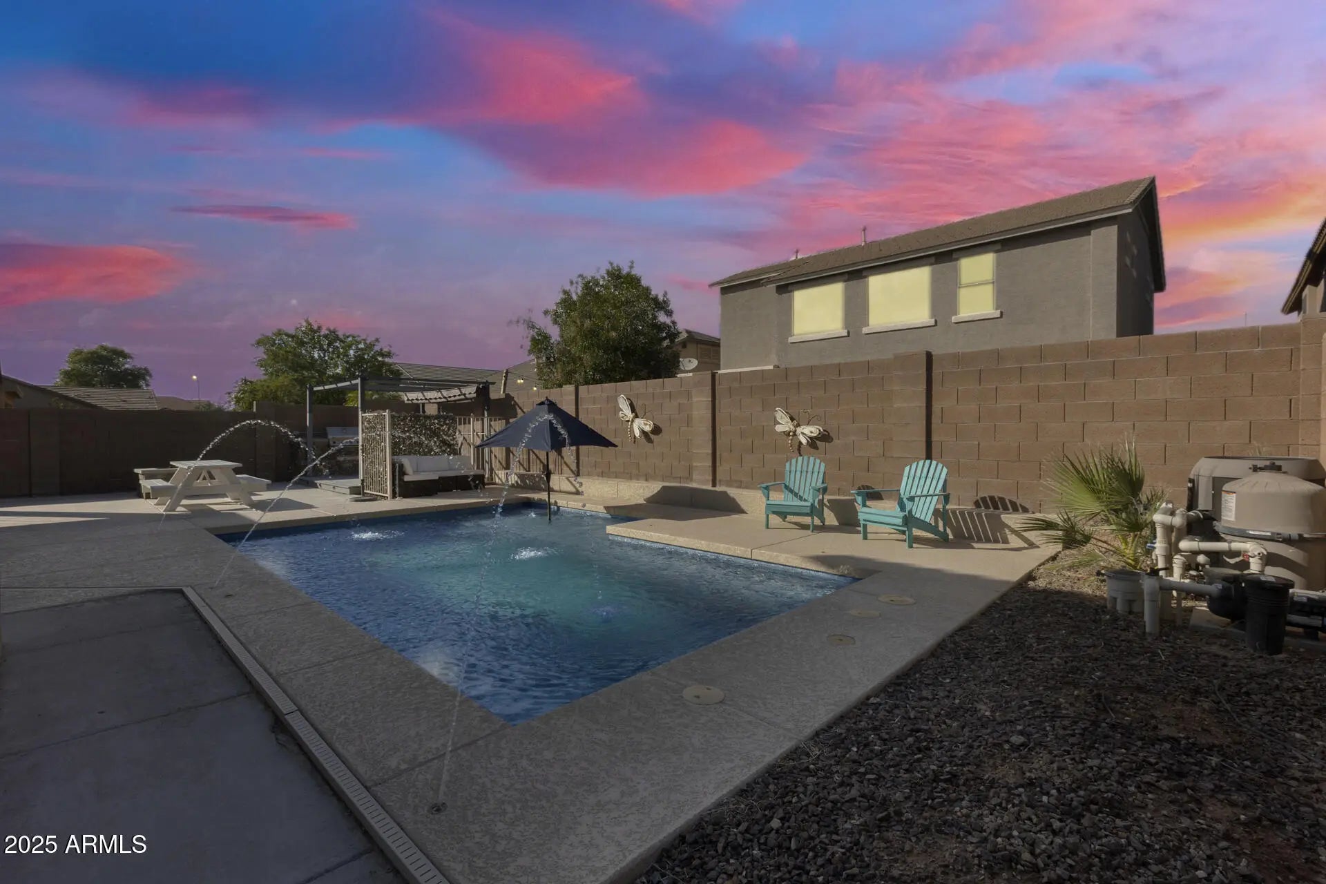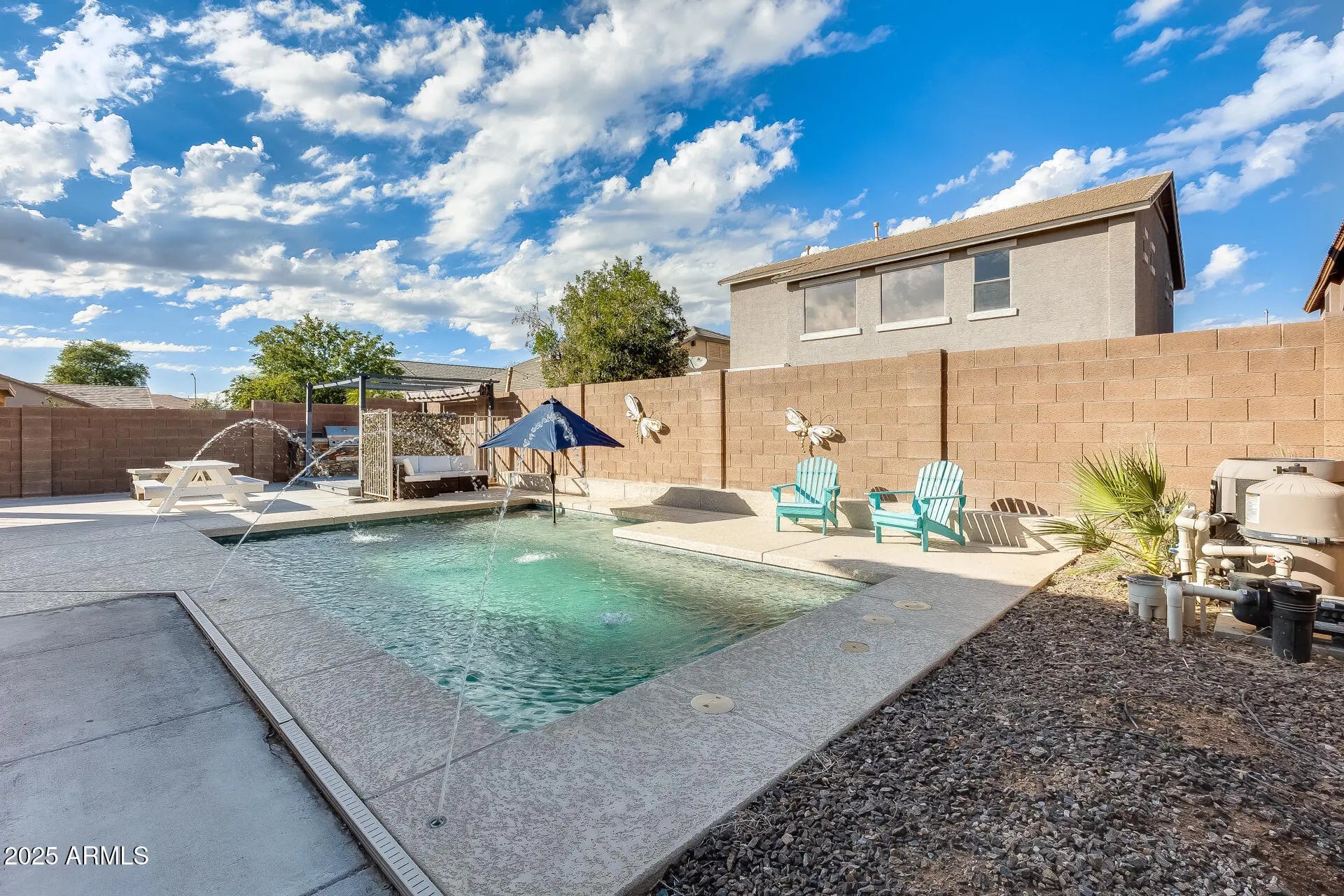 Discover space, style, and comfort in this beautifully renovated 4-bedroom, 2.5-bath home with an office, loft, and 3-car garage, offering 2,950 sq. ft. of living space. Featuring lovely curb appeal and a prime location, this home impresses from the moment you arrive. Featuring newer dual 4-ton Trane A/C units (2019) that add lasting value and comfort. Additional updates include new flooring and fresh paint. Inside, enjoy formal living and dining rooms, a large eat-in kitchen with an island, and an open family room. The primary suite offers an updated shower (2025) and tub plus a spacious walk-in closet. Outside, relax or entertain in your private backyard oasis complete with a covered patio, BBQ area, gas firepit, play area, plus a sparkling pool (approx. 6 years old)! Enjoy a welcoming community with basketball and sand volleyball courts, playgrounds, and easy access to Loop 303, Loop 101, shopping, restaurants, libraries, spring training facilities, and more!