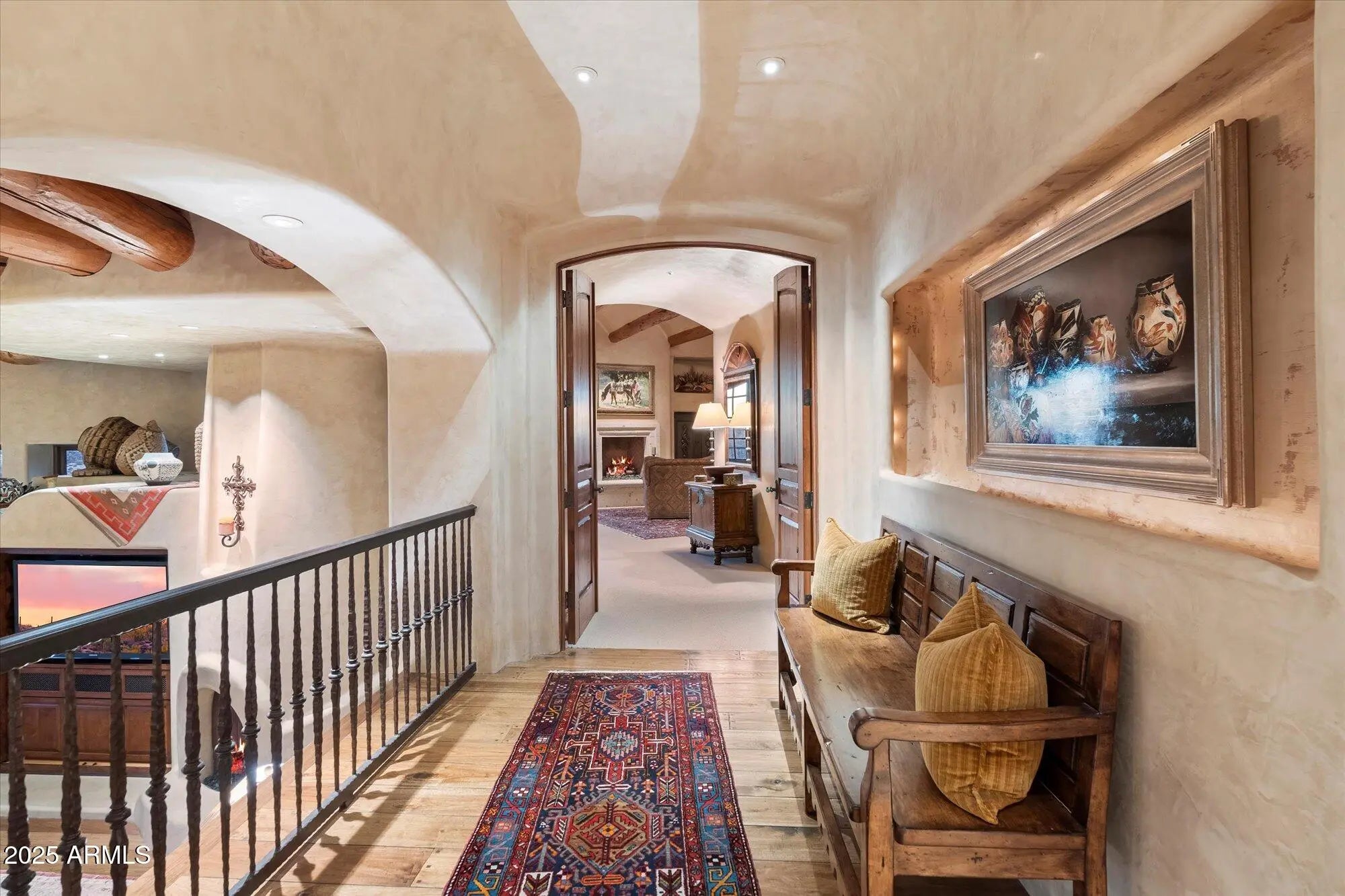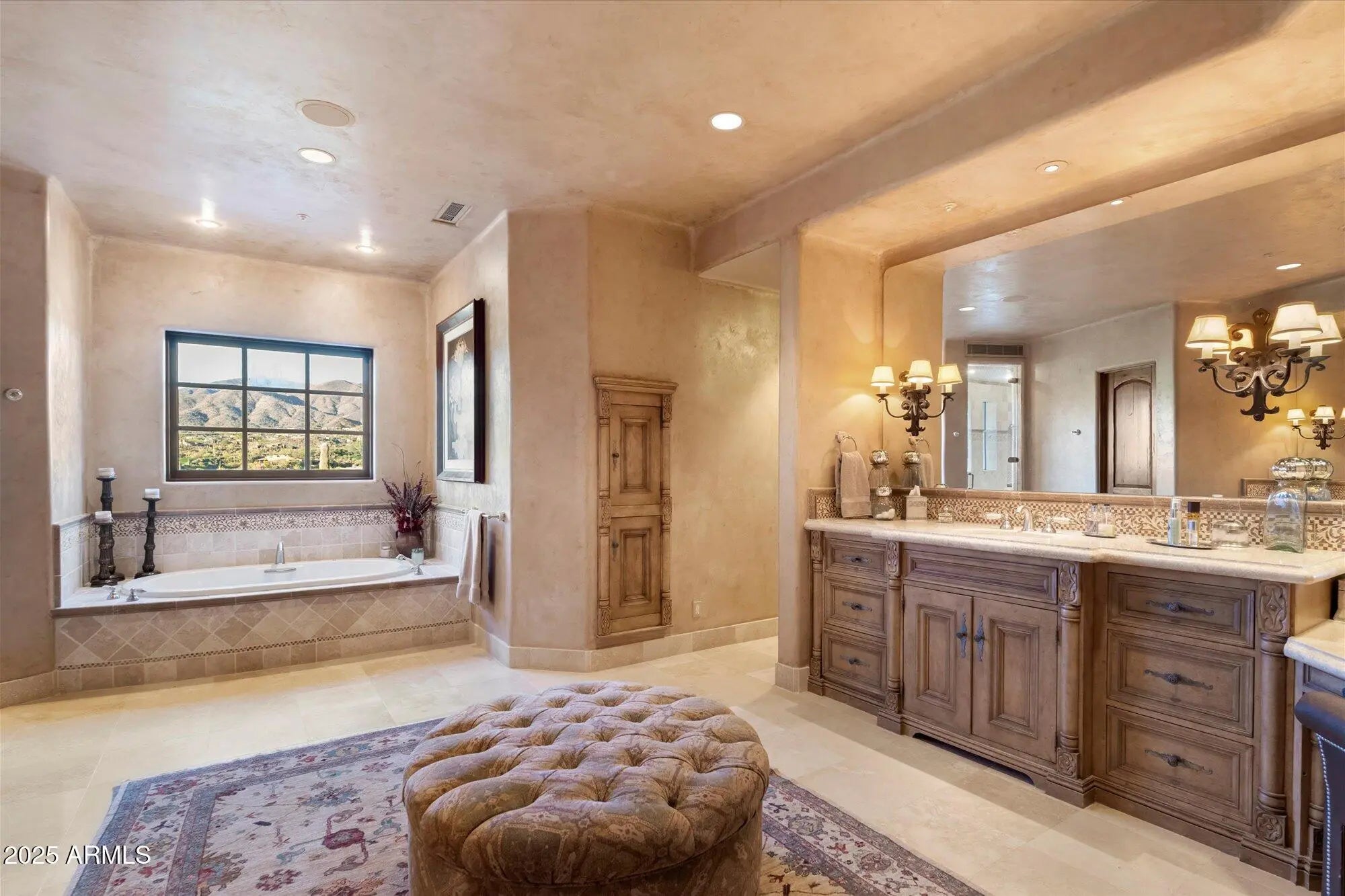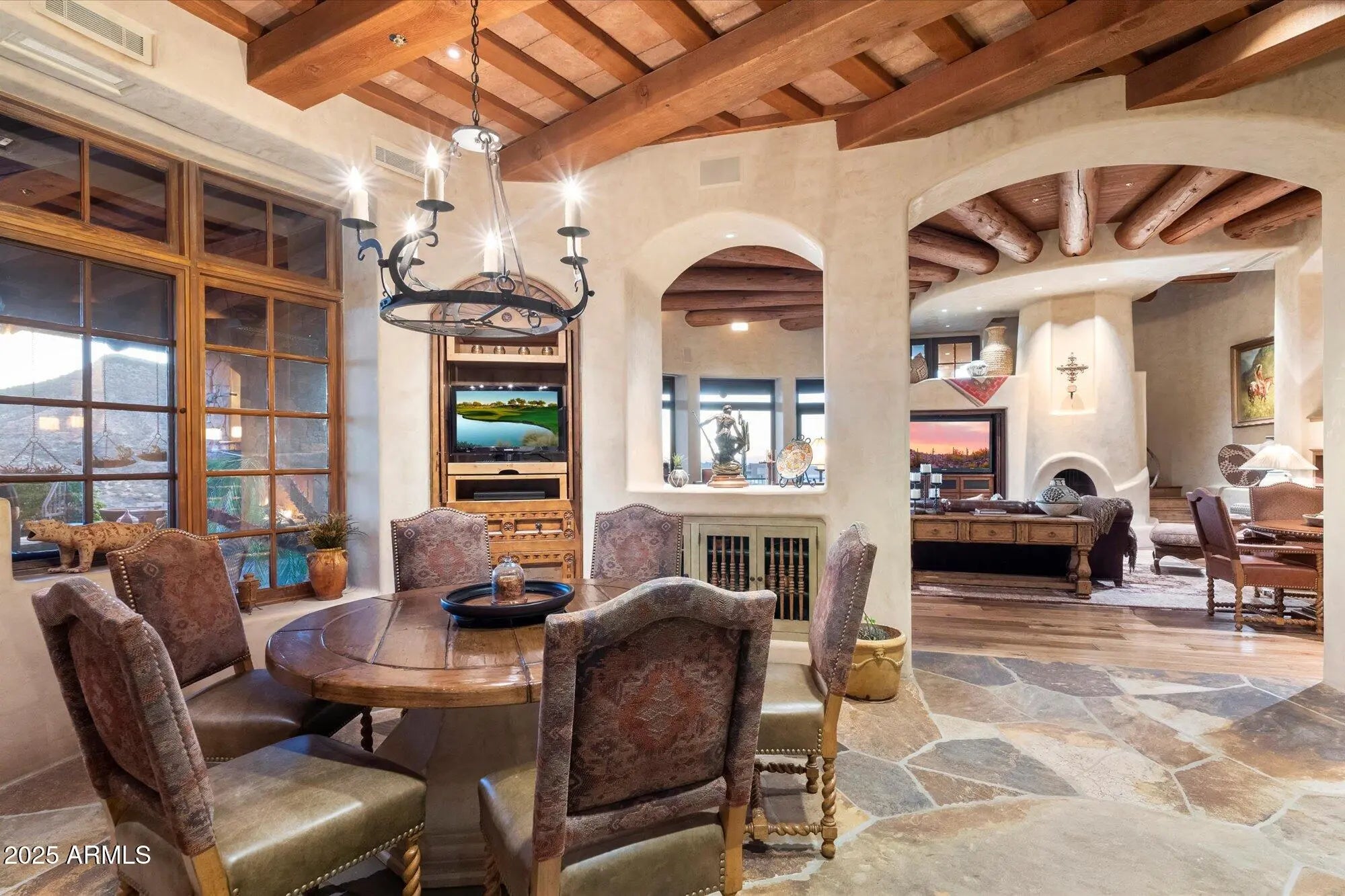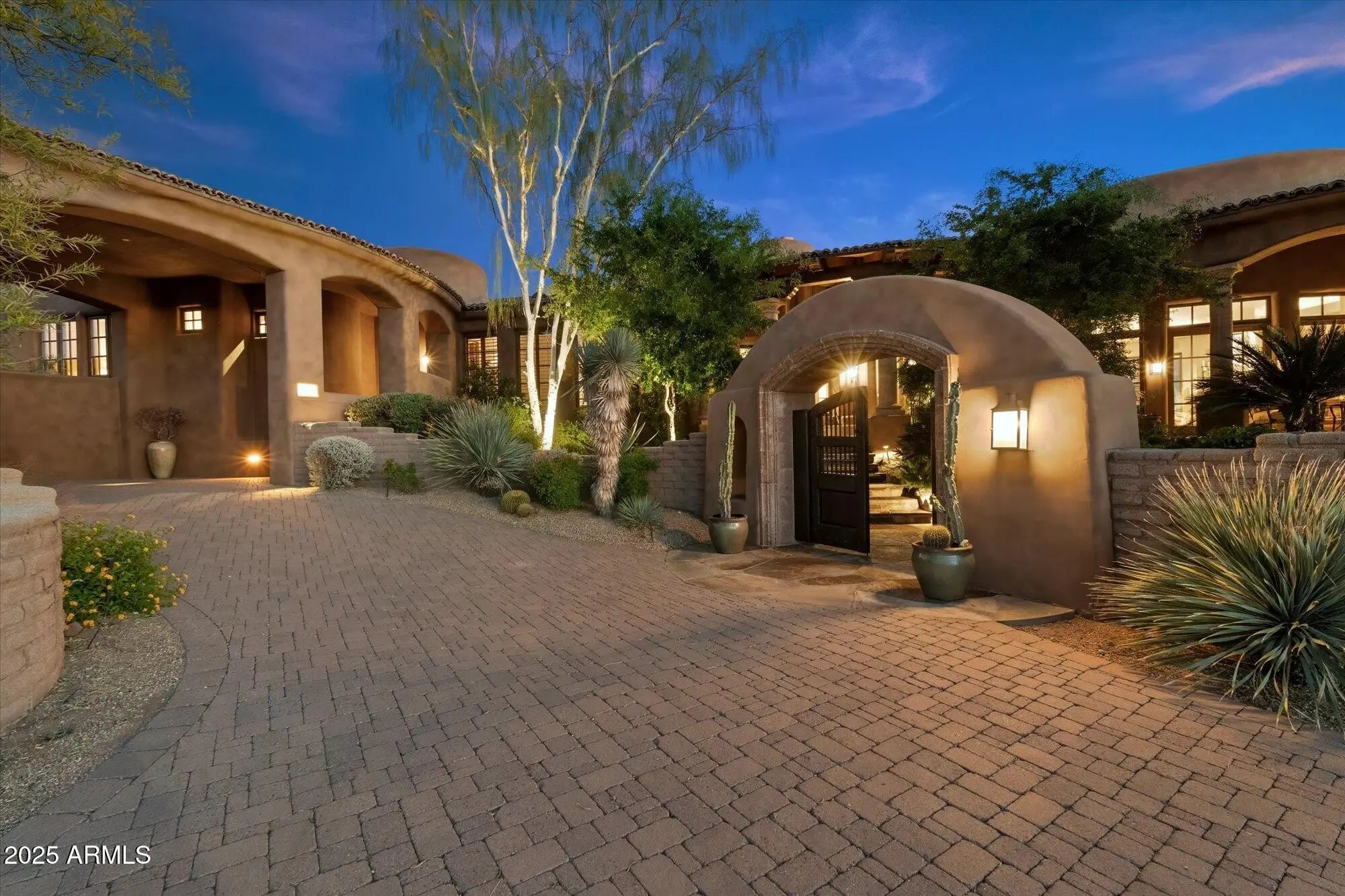GOLF MEMBERSHIP AVAILABLE! An entertainers DREAM HOME, this 11,625 sq. ft. resort styled estate offers 2 Guest Homes. You are greeted at the detached guest house with a gated courtyard entrance to an oversized family room open to the chef's kitchen, 2 en-suite bedrooms, laundry & oversized 3 car garage. The 2nd guest quarters are in the 9085 sq. ft. main house & has a private entrance with covered parking, 4 beautifully appointed en-suite bedrooms & 2 media-living room spaces with wet-bars. Designed with a foursome of golfers in mind & also for family, friends, live-in caretakers, personal assistant/chef or live in Au Pair. This Organic Pueblo styled 9085 sq. ft. main home was designed by Lee Hutchinson-UDA LTD. Exquisite finishes include polished Venetian Plaster walls.......CONTINUED Cantera fireplaces, natural stone flooring and bespoke cabinetry. Located on the 9th hole of the Geronimo Golf Course, the property sits on 3 lots combined to create a 2.25 acre parcel. The expansive outdoor patio spaces are over 4000 sq. ft. The living spaces of the main house include an oversized living room, a chefs kitchen, and a spacious hearth room and game room. The primary bedroom space is accessed with an elevator to the 2nd level of the residence. The beautiful home office has access to the wrap around balcony with view corridors to the Continental Mountain Range. The primary bedroom has a Cantera Fireplace, spacious spa styled bath and double walk-in closets. For car enthusiasts, the main home has a temperature controlled 4 car garage (one bay is tandem) and abundant built in storage cabinets. The guest house has an oversized 3 car garage with built in storage. Owned solar array on both homes
