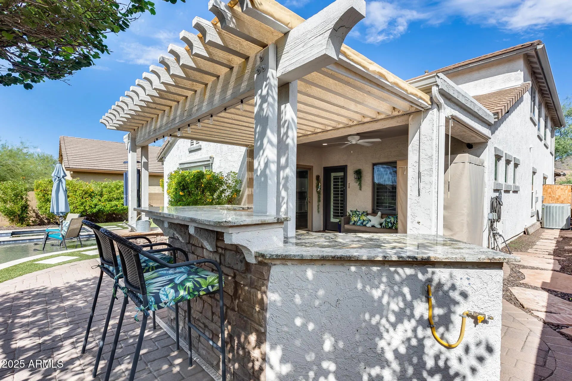 Your next chapter starts here! Welcome to this beautiful Arizona living retreat! Walk in to the open great room featuring vaulted ceilings and designer lighting. The kitchen and baths have been thoughtfully remodeled with quartz countertops, porcelain tile accents and high end appliances. The main floor primary suite is an experience not to be missed. Enjoy a large soaking tub and dual head shower that make you feel like you're at a luxury spa. Step outside and you'll instantly see why this one is special! The serene covered patio, outdoor kitchen and relaxing pool are the epitome of outdoor living. Fireside at Norterra Community Center features pools, workout facilities, sport courts, meeting rooms and more
