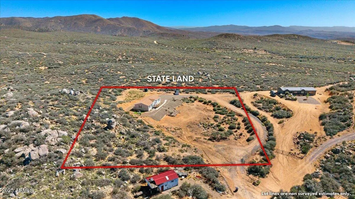 Welcome to your private retreat in the desirable Whitehorse Ranch community of Dewey! This beautifully updated single-level manufactured home sits on 2 acres, is zoned for horses, and backs to State Land for incredible privacy and unobstructed mountain and hill views. Just a short distance off a paved road, the property features a private gated entrance, tons of parking and plenty of space to roam. Inside, you'll find a split floor plan with 3 bedrooms, 2 baths, and an open-concept great room that flows seamlessly into the kitchen and dining area. Enjoy vaulted ceilings, luxury vinyl plank flooring, granite countertops, a kitchen island, and stainless steel appliances. There's also a separate family room or flex space, perfect for entertaining or relaxing. The primary suite offers a walk-in closet, dual sinks, and a spacious layout for comfort and convenience. Outside, unwind in the sitting area while soaking in the peaceful surroundings. The property includes low-maintenance landscaping, a water storage tank, and a rainwater catchment system for exterior watering. Enjoy privacy, views, and country living at its finestall within the sought-after Whitehorse Ranch area of Dewey!