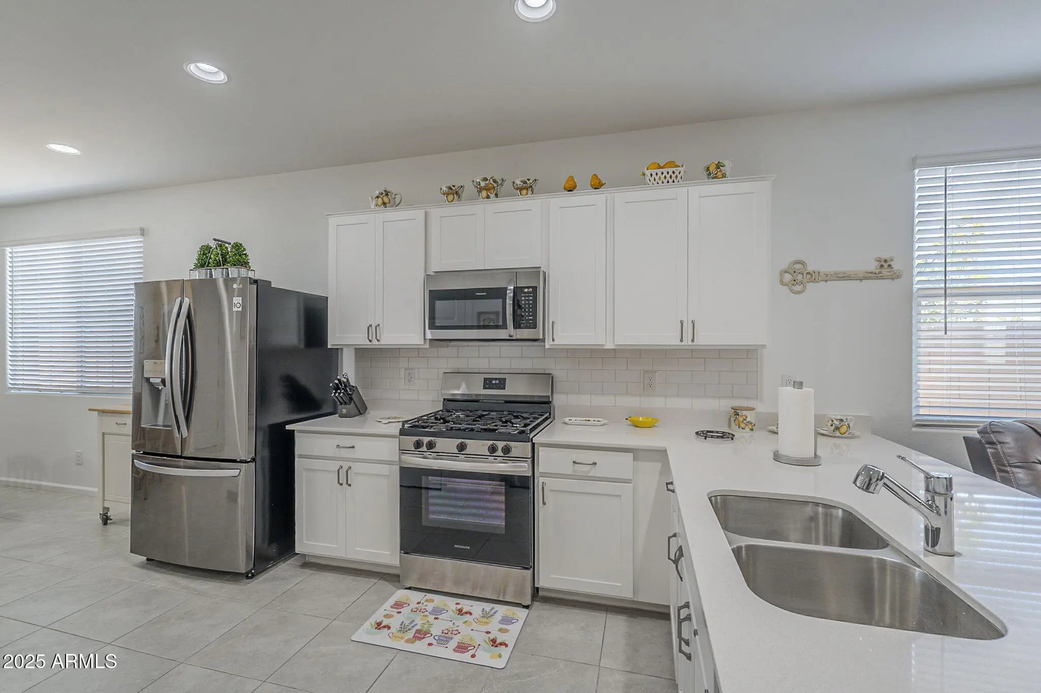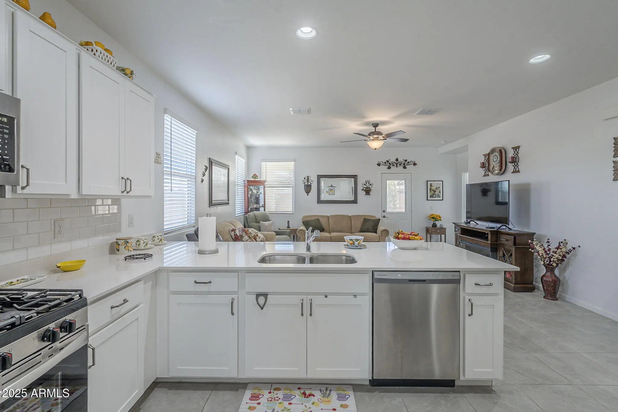 Seller already paid upgrades from builder, this single level home featuring an open floor plan that seamlessly connects the kitchen, dining nook, and great room perfect for entertaining. This 3-bedroom, 2-bath residence offers upgraded bathrooms with Jacuzzi® brand tubs, security doors, and all-new stainless steel kitchen appliances.Elegant 17x17 tile flooring, quartz countertops, and modern white cabinetry backsplash adds sophistication throughout.Enjoy effortless indoor-outdoor living with a covered patio, plus resort-style community amenities including a pool, spa, pickleball courts,and playground.Conveniently located near Goodyear Ballpark and Estrella Mountain Regional Park,this turnkey home blends comfort, style, and convenience in Goodyear's most sought-after neighborhoods! A Additional Upgrades Include: The master bathroom features a luxurious walk-in shower equipped with a Jacuzzi® brand system, upgraded glass enclosure, double shower heads, and convenient grab handles. The guest bathroom also offers a Jacuzzi® walk-in shower with a sleek glass upgrade and grab handles for added safety and style. Each room has been outfitted with added ceiling fans to enhance air circulation and comfort throughout the home. Custom security doors have been installed on both the front and back doors, providing added safety and peace of mind. The garage includes an electric vehicle (EV) charging outlet for added convenience. Outside, the front yard features extended side pavers running from the driveway to the backyard. The backyard boasts beautifully designed pavers with a spacious landing area perfect for entertaining and a walkway that extends along the west side of the home, connecting seamlessly to the front yard.