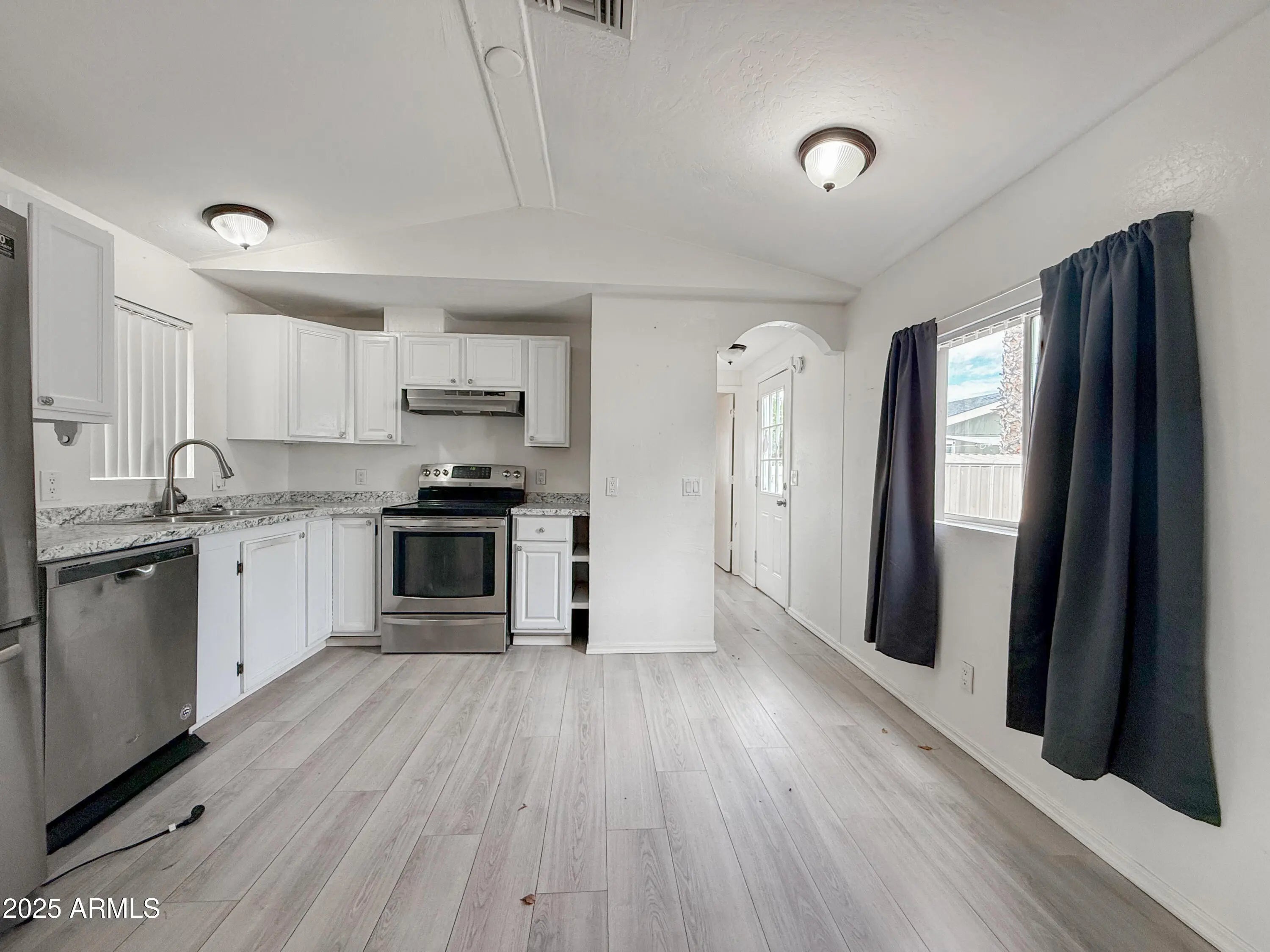 Spacious 3/2 Phoenix Manufactured Home - Modern Comfort & Prime Location! Enjoy vaulted ceilings and wood-plank style flooring in this beautifully updated home featuring a sleek kitchen with stainless steel appliances. The split master bedroom offers privacy with an enclosed bath, while cozy rooms and refreshed bathrooms provide everyday comfort. Includes in-home washer/dryer, extra storage, and a tranquil private patio perfect for relaxing. Located in a great Phoenix neighborhood close to shopping, dining, and major roadways. Style, space, and convenience - this home has it all.