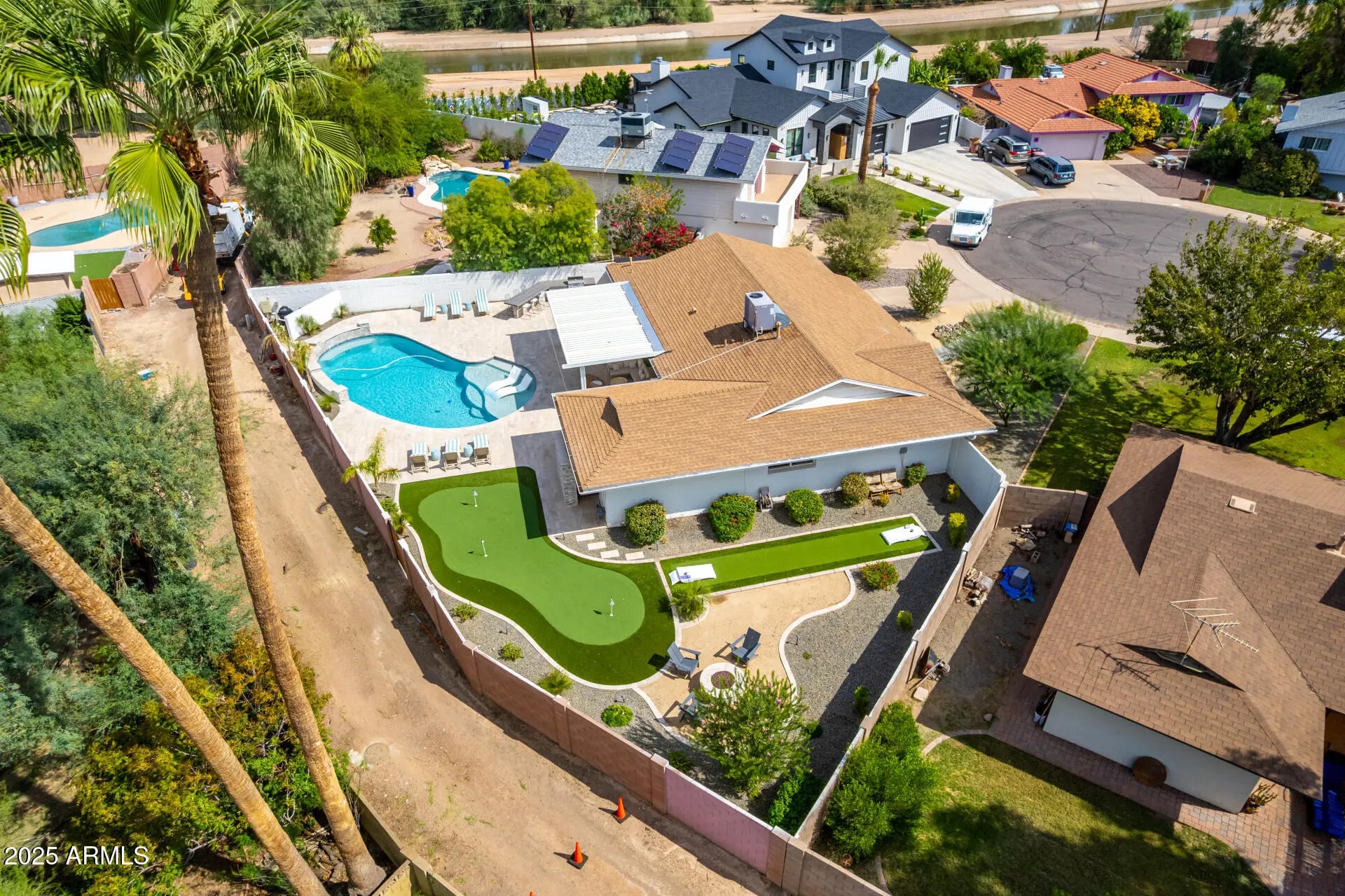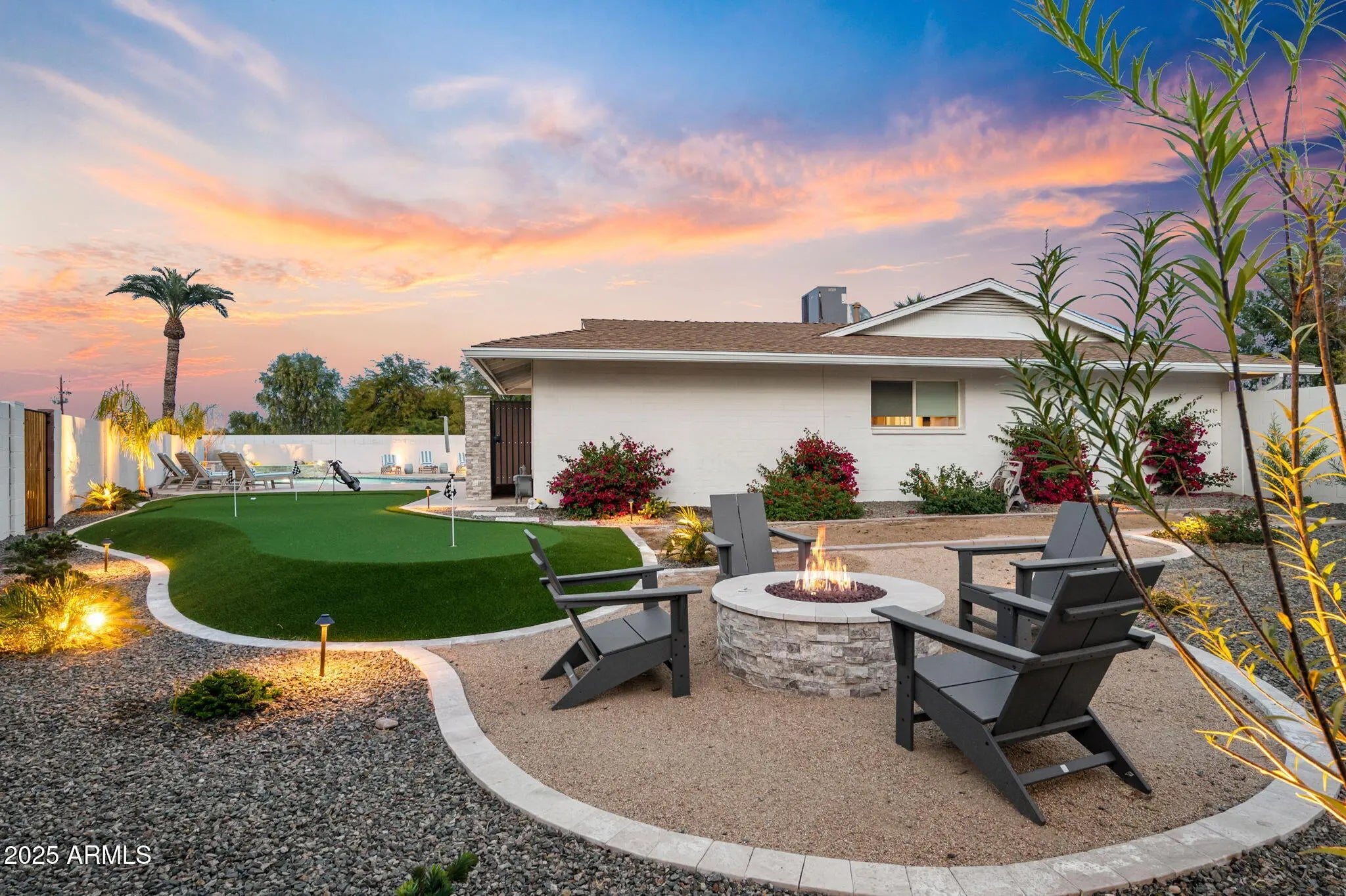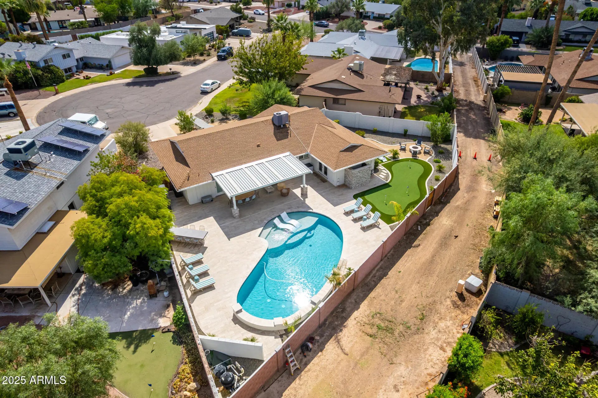 Welcome to this impeccably remodeled 4-bedroom, 2-bath home located on a quiet cul-de-sac in the coveted Park Scottsdale neighborhood. This property offers flexibility for use as a primary residence, short-term rental or vacation home. Every detail has been thoughtfully designed, blending modern finishes with timeless comfort. The open-concept floor plan showcases a designer kitchen with upgraded appliances, custom cabinetry, and sleek quartz countertops, creating a space that radiates calm and sophistication. The spacious utility room provides ample storage, new tankless water heater, a new electrical panel and an EV charger for added modern convenience. Step outside to your private backyard retreat, where thoughtful natural-stone landscaping surrounds a large heated pool, 3-hole putting green, natural gas fire pit, and dedicated corn hole/bocce court. Entertain effortlessly at the built-in natural gas gourmet BBQ and dining bar with seating for six. The private outdoor shower crafted from natural stone completes this luxurious resort experience. All of this, just minutes from world-class golf, and Old Town Scottsdale's premier dining, shopping, and entertainment. This home perfectly combines luxury, location, and lifestyle in one exceptional package offering privacy, sophistication, and proximity to the scenic AZ Canal Trail, perfect for walking, cycling, or running.