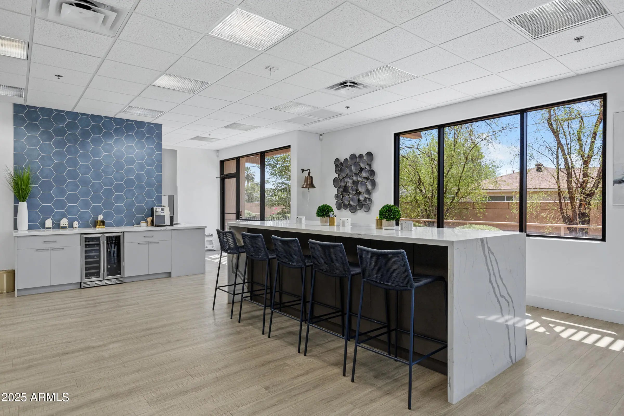 Conveniently located just off the 101 in South Scottsdale, this remodeled single-story Class A office condo offers a modern and functional workspace ideal for a variety of professional uses. The suite features five private offices (which can also serve as conference rooms), two private restrooms, and a welcoming reception area with direct entry access. The spacious kitchenette is equipped with a refrigerator, microwave, dishwasher, and wine fridge, plus a large island area perfect for team gatherings or client meetings. Enjoy peace of mind with a newer HVAC system and water heater, new roof in 2024, ample on-site parking, and high-end finishes throughout. The space is available furnished or unfurnished, offering flexibility for your business needs.