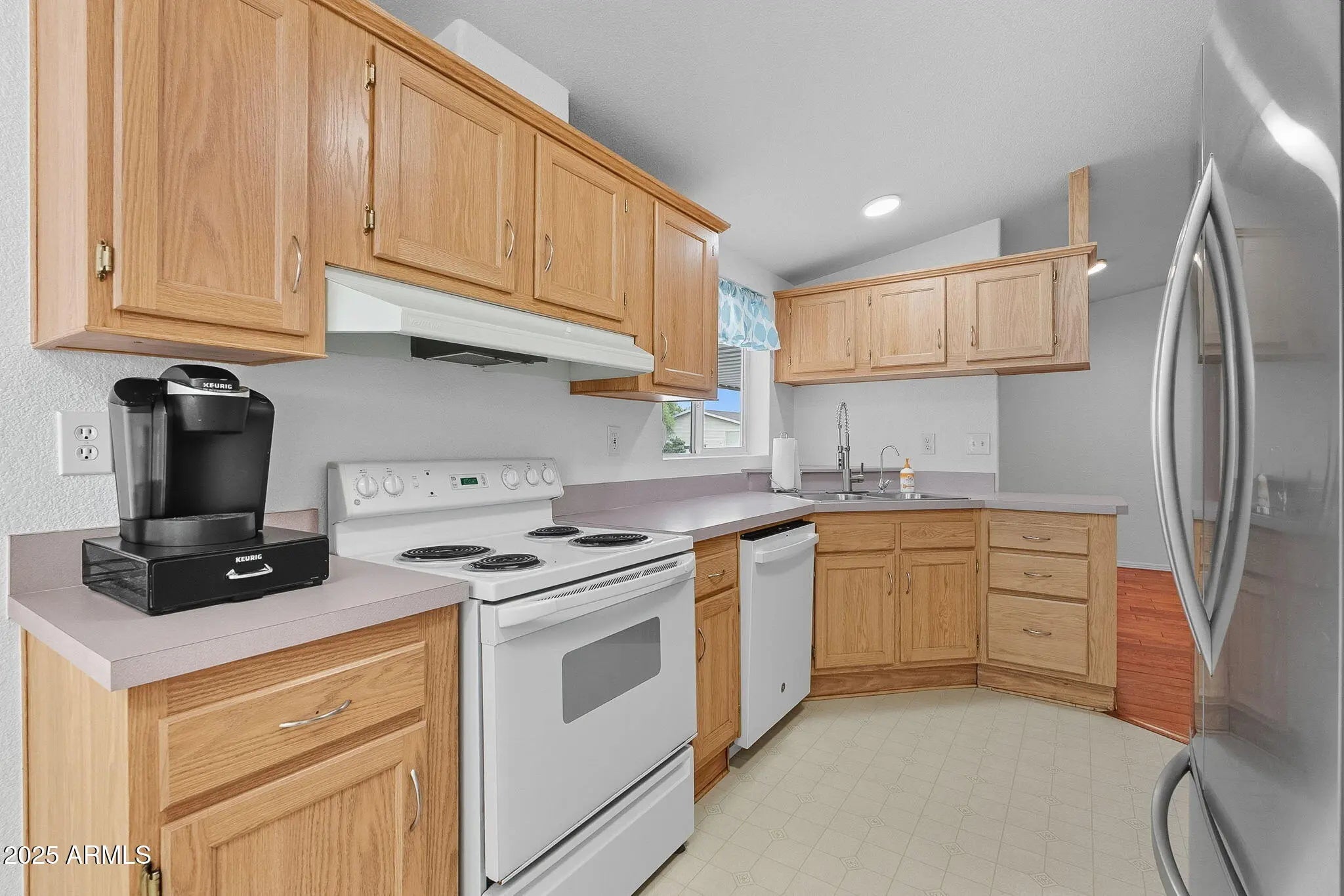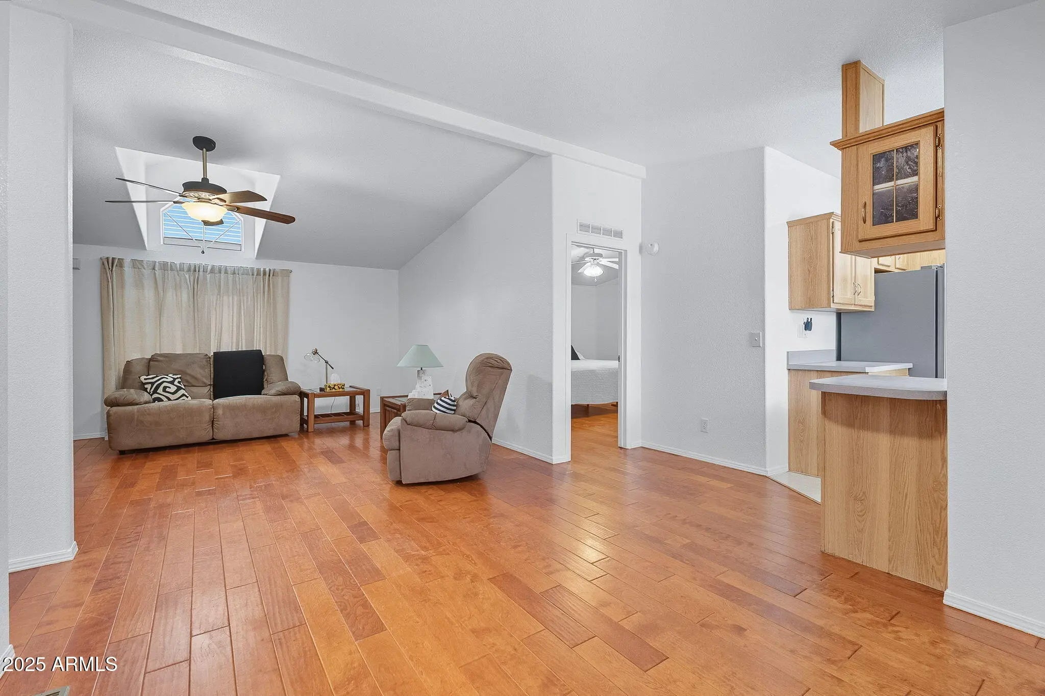 This home makes it easy to settle in and enjoy life. Located in a friendly 55+ community where you own your land—no lot rent—this move-in ready 3-bedroom, 2-bath home offers generous living space with vaulted ceilings and hardwood floors through most of the home. There's plenty of room for hobbies and guests with a covered carport, a 1-car garage with a workshop, RV gate, and an Arizona room for year-round enjoyment. The updated primary bath adds a fresh, modern touch, while the covered back patio and low-maintenance turf yard make outdoor time effortless. Community perks include a clubhouse, pool and spa, fitness center, library, and game rooms with billiards and shuffleboard. Comfortable living starts here.