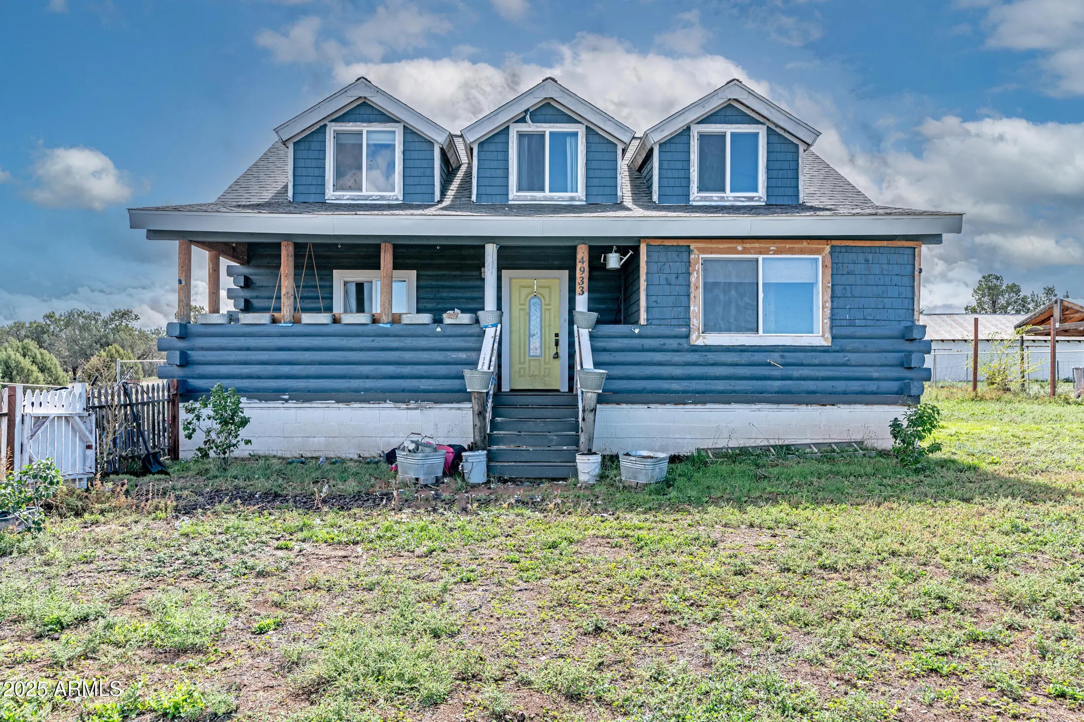 Charming custom log cabin retreat nestled on a serene 2-acre lot offers rustic charm and endless potential. Surrounded by nature's beauty, this property is a dream for those seeking a peaceful retreat with the opportunity to add their personal touch. Enjoy the classic log cabin aesthetic with exposed beams, wood paneling, and a cozy fireplace. This home offers the primary bedroom downstairs with dual sinks, walk in shower & clawfoot soaking tub. At the top of the stairs, you will find a cozy reading loft, a full bath, 3 additional bedrooms- 1 of them is huge! The expansive 2-acre lot offers plenty of room for horses and animals or build the shop of your dreams. Located directly across from the school this is the quiet small-town dream for your family!