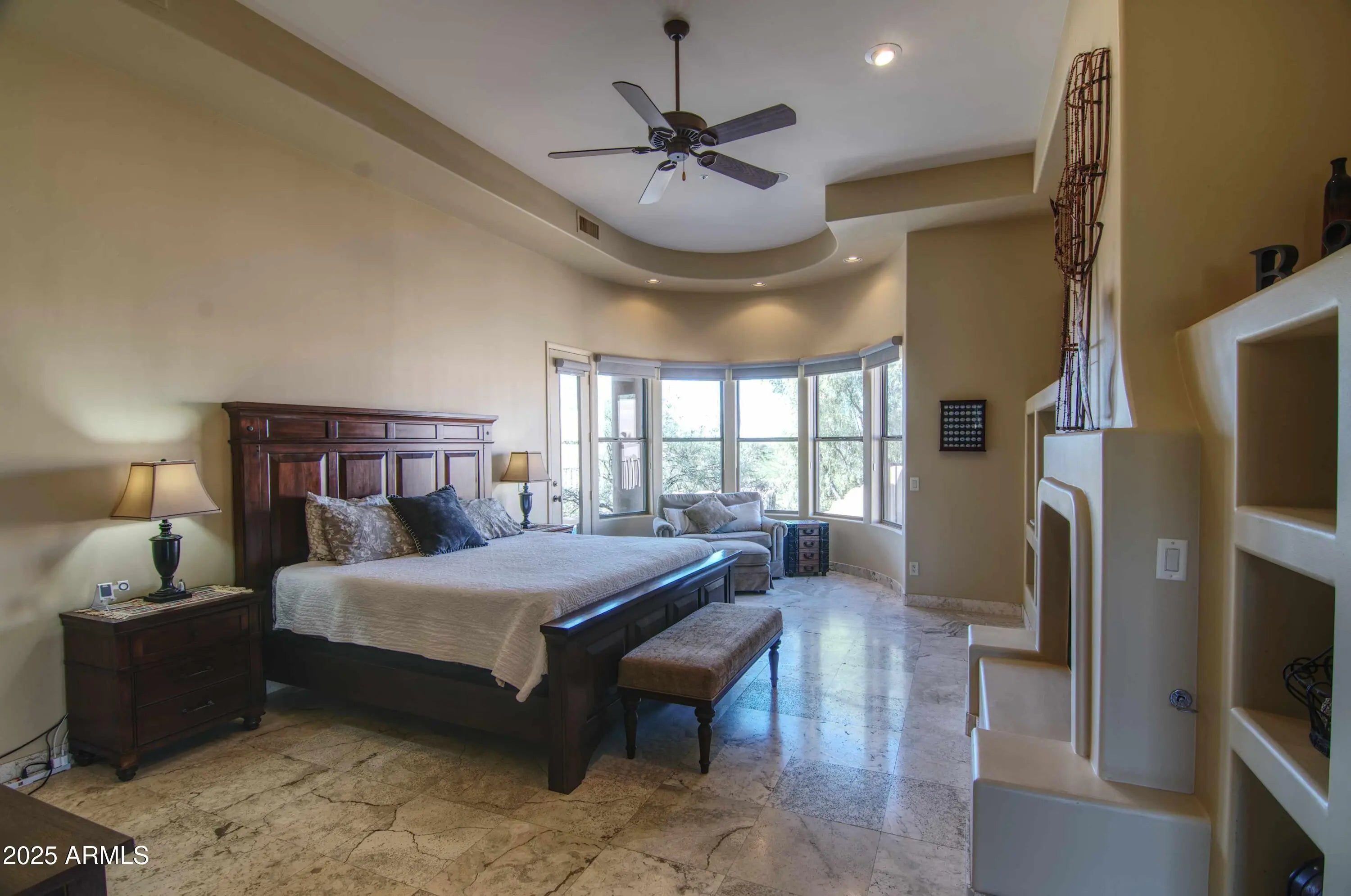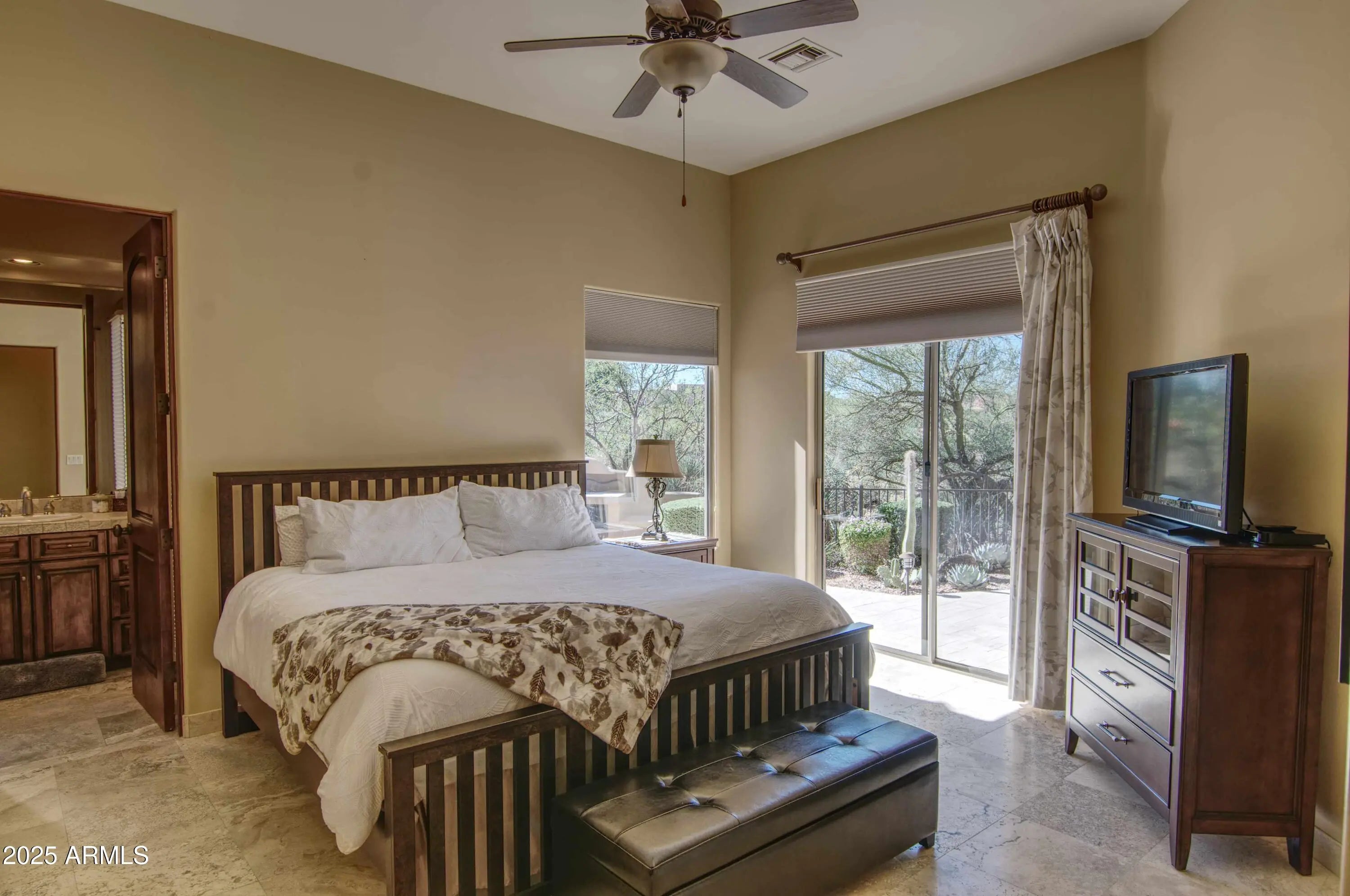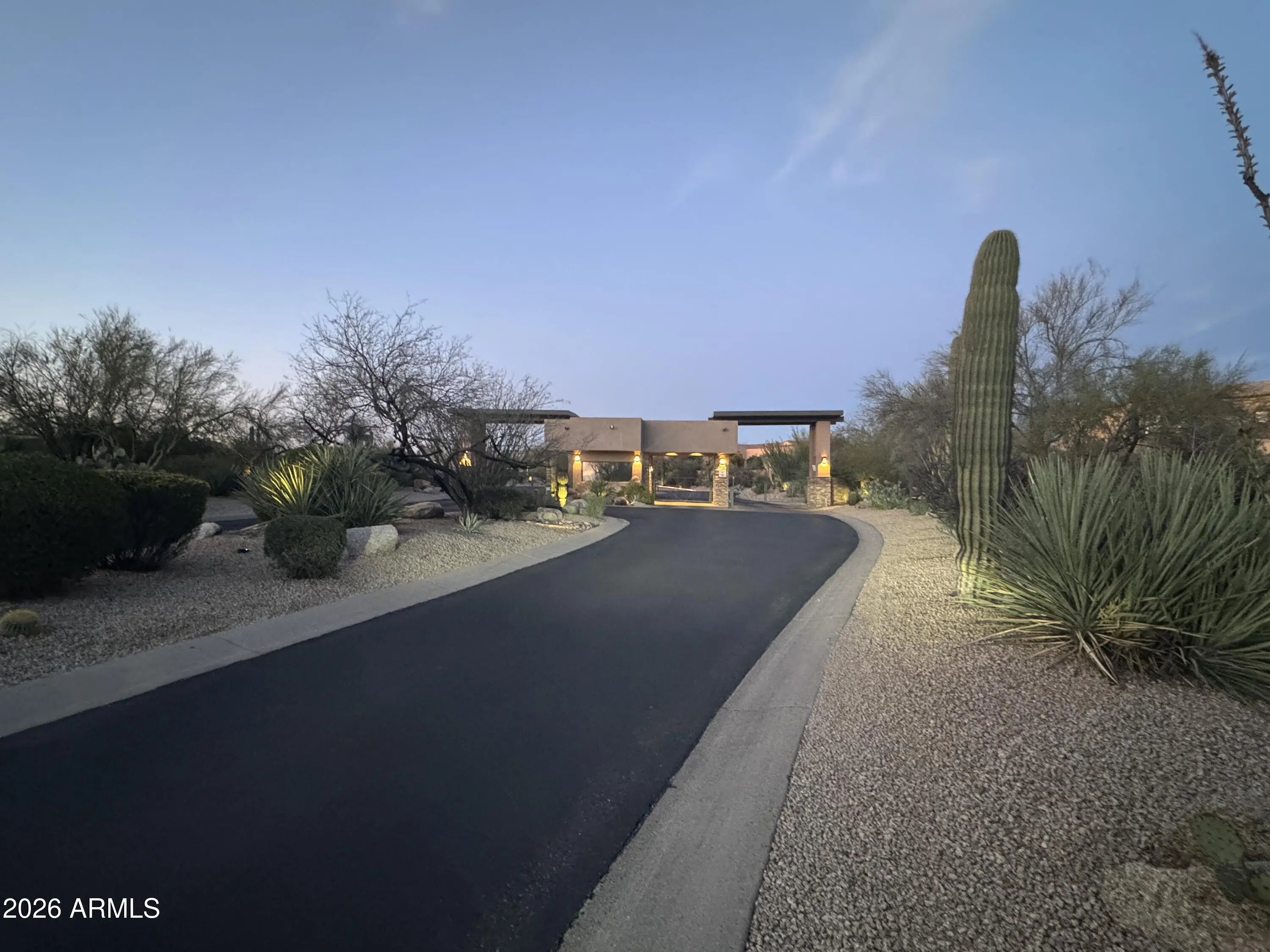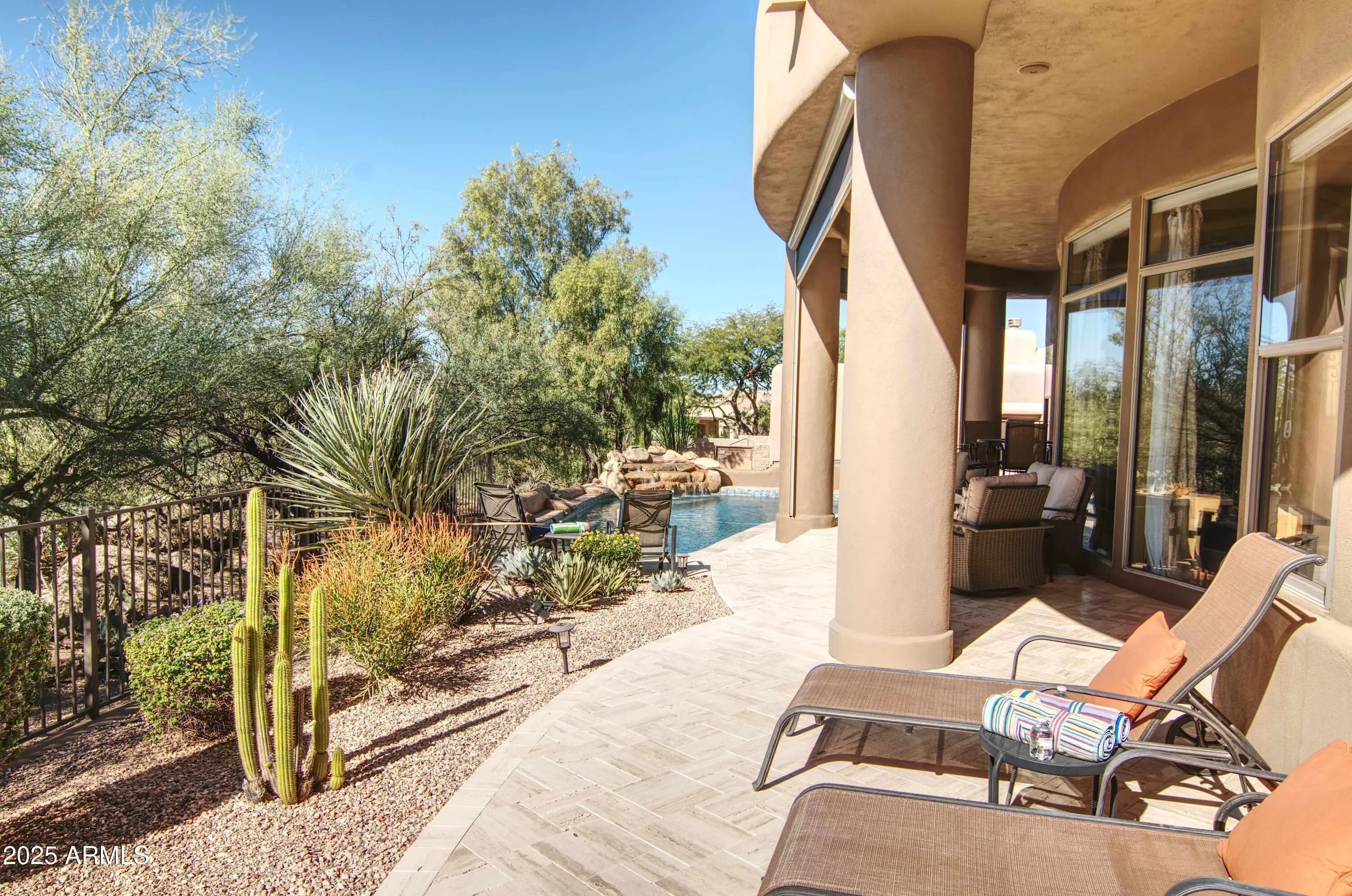 Luxury Troon North Single-level Home with Private Heated Pool and Spa, Views & Golf Community Lifestyle. Welcome to Candlewood Estates, an exclusive gated enclave nestled within Troon North golf community. This beautifully designed single-level, 4BD/3.5BA custom home located on a private cul-de-sac offers the perfect blend of privacy, desert beauty and gorgeous sunset views. Step through the statement iron door and into an elegant open-concept layout featuring travertine floors, soaring ceilings and stunning Canterra stone fireplace anchoring the great room. The spacious chefs kitchen impresses with Thermador gas cooktop and built-in ovens, Sub-Zero refrigerator, stone counters, prep island, dual beverage drawers and abundant cabinetry, ideal for entertaining or casual family gatherings. The split primary suite offers true serenity with a cozy fireplace, dual walk-in closets, and spa-inspired bath with soaking tub and separate walk-in shower. Step from the suite's sitting area directly out to the private heated pool and spa for an early morning dip or sunset soak! Two additional ensuite guest rooms provide comfort and privacy, while a flex fourth bedroom or office adds versatility for remote work or guests. Outdoor living shines here...relax under the covered patio with automated shades, bask in the sun by the heated pool, lounge in the pool's or Baja shelf, soak in the spa...all while enjoying the tranquil water feature and desert views. The built-in grill, Kiva-inspired fireplace, and travertine patio make this backyard a perfect setting for dining, stargazing, or entertaining under Arizona's spectacular desert skies. Surrounded by natural desert landscaping and views, this home offers a true resort lifestyle. Enjoy Troon North amenities, including golf membership options, resident perks and discounts, tennis, pickleball, parks, and miles of nearby hiking and biking trails. Whether you're seeking a year-round haven, winter getaway, or investment opportunity, this North Scottsdale luxury home delivers it all...a must-see to appreciate!