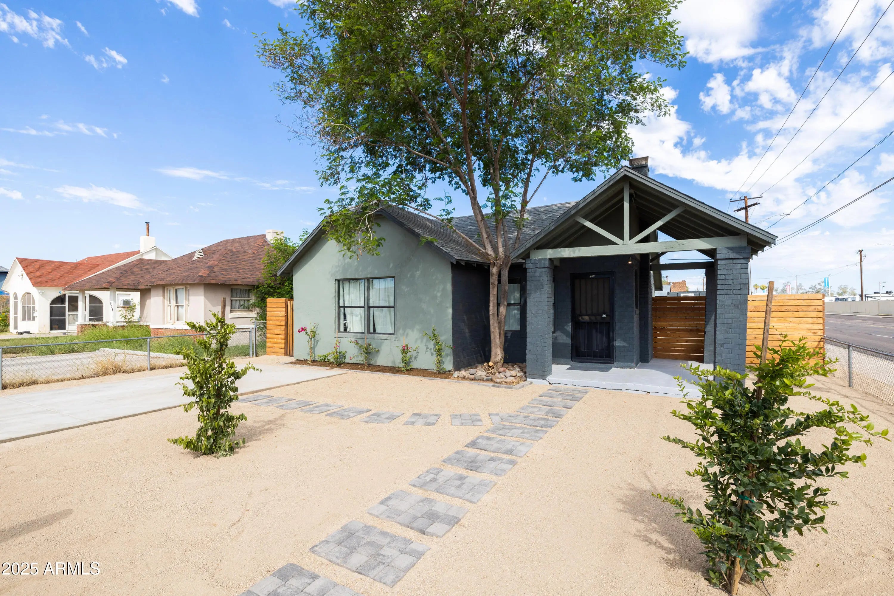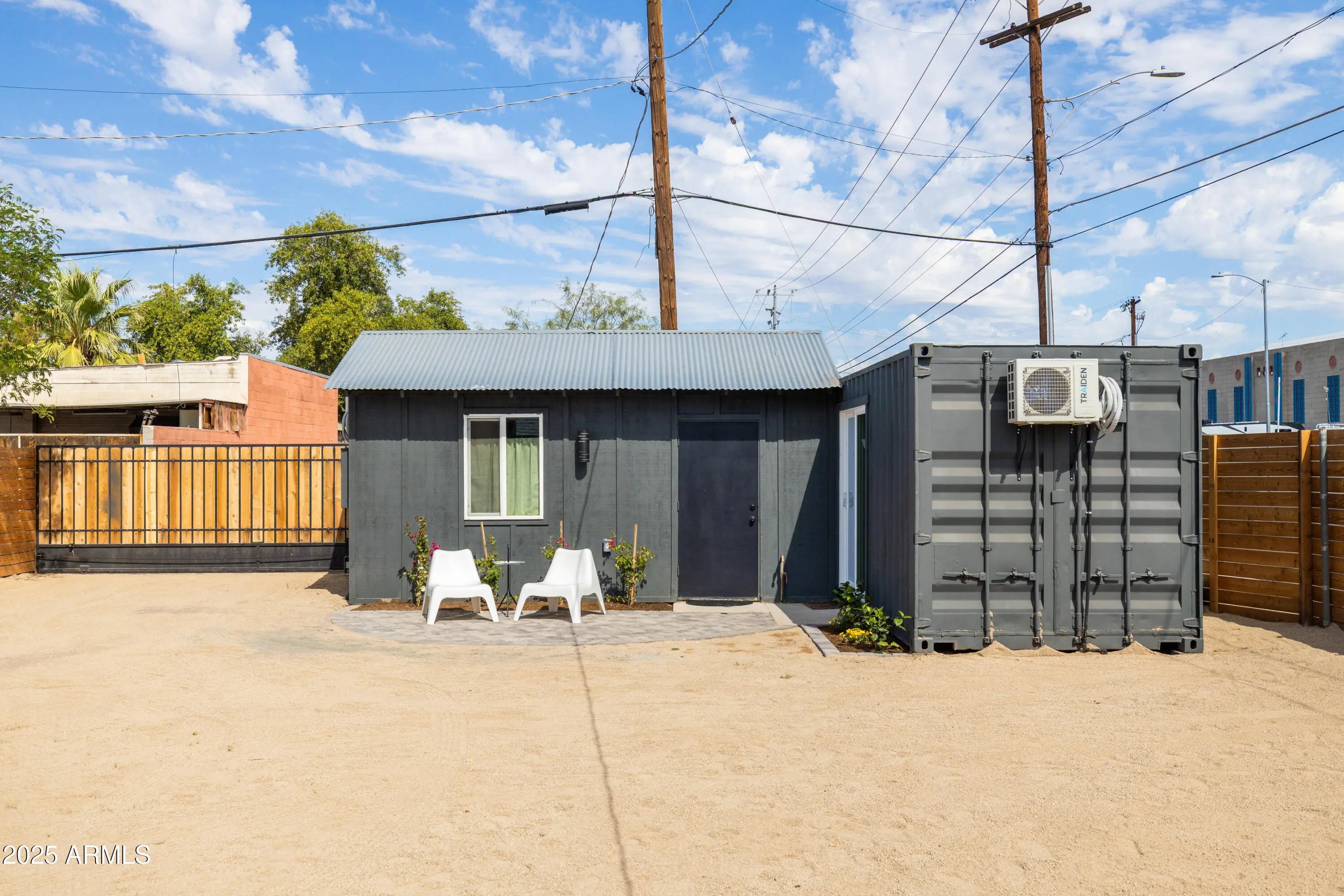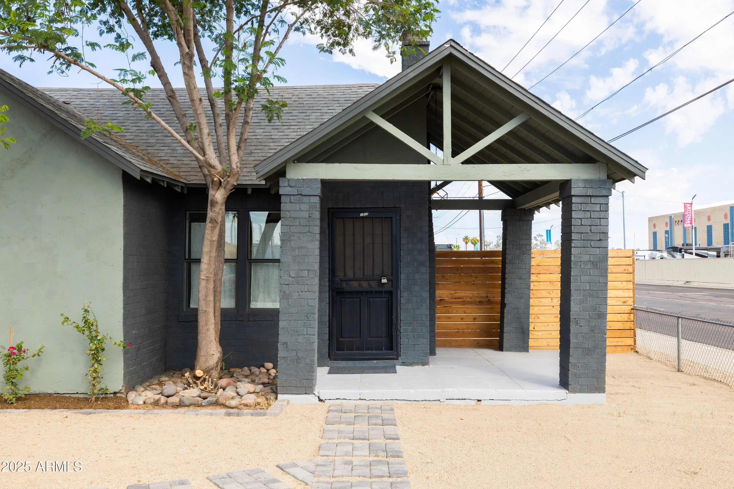 Near the Fairgrounds | Corner Lot | Income Potential: A 1929 Brick Bungalow Reborn!! This stunning historic brick bungalow has been completely remodeled head to toe, transforming a 1929 gem into a thoughtfully reimagined property where vintage character meets modern sophistication in one of Central Phoenix's most dynamic neighborhoods. This 2 BD, 1 BA main residence (716 sq ft) + fully permitted guest house with private bath (198 sq ft) + shipping container flex space with kitchenette (200 sf ft) adds up to a great value! In this remodel every element was carefully considered: sage cabinetry paired with brass fixtures, geometric designer tile that makes a statement, natural light flooding through the kitchen, a cozy brick fireplace for cooler evenings, quartz countertops, black matte hardware, and a charming front porch with exposed beams showcase the quality throughout. The permitted guest house is a fully realized space with its own bath, mini-split HVAC, and private pavered patio. Clean lines, fresh paint, and thoughtful design make it move-in ready for guests or long-term tenants. The converted shipping container serves as a modern flex space with its own kitchenette. Currently set up as an office, it could easily transform into an art studio, workshop, home gym, or even a third income stream. Industrial-chic aesthetic matched with functionality. The outdoor spaces are designed for the Phoenix lifestyle. A secure electronic rear alley access gate with key fob entry opens to reveal ample parking for both the guest house and main house, custom hardscaping, and multiple entertaining areas. The covered front porch invites you in, while the private rear yard offers both functionality and desert charm. Newer systems throughout include HVAC, roof, copper plumbing, upgraded insulation, updated electrical wiring, replaced sewer line. This custom brick historic home retains its 1929 charm while offering all the conveniences of modern living. Located in Central Phoenix in the charming Villa Verde Historic neighborhood (with historic taxes!), walking distance from the fairgrounds, on a corner lot with character in a neighborhood that's experiencing its moment, this little beauty is going to make someone's lifestyle a dream! Don't miss!!