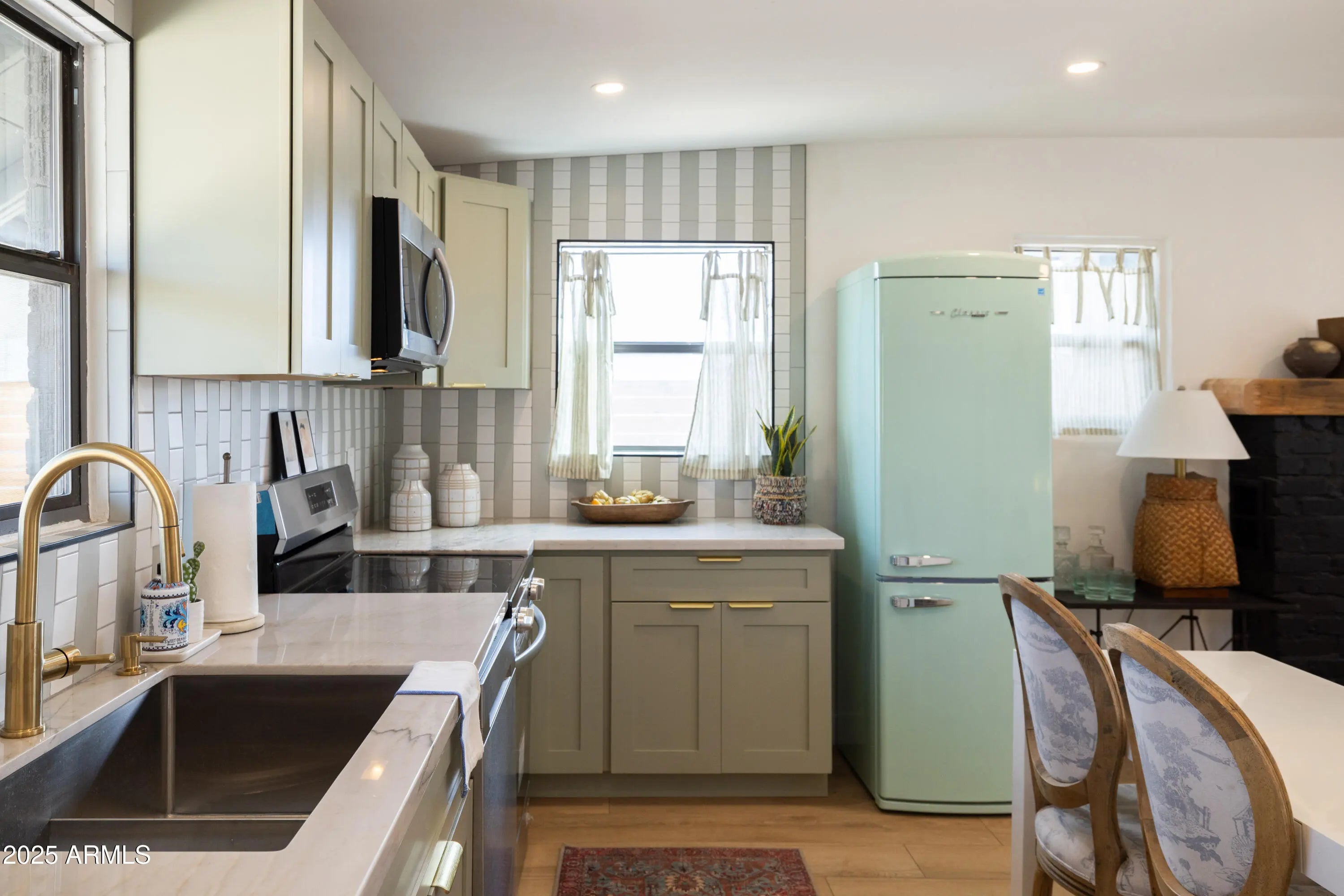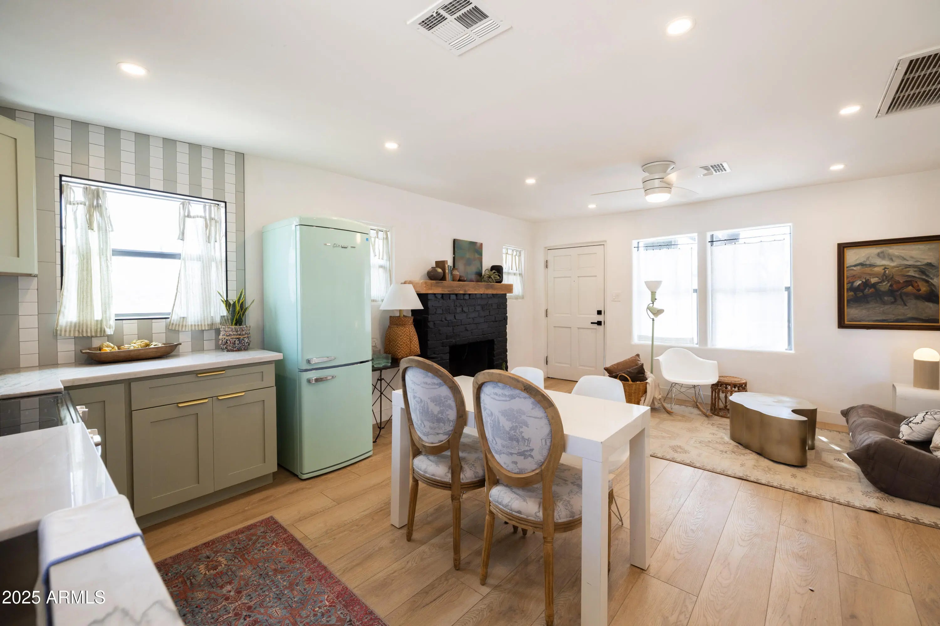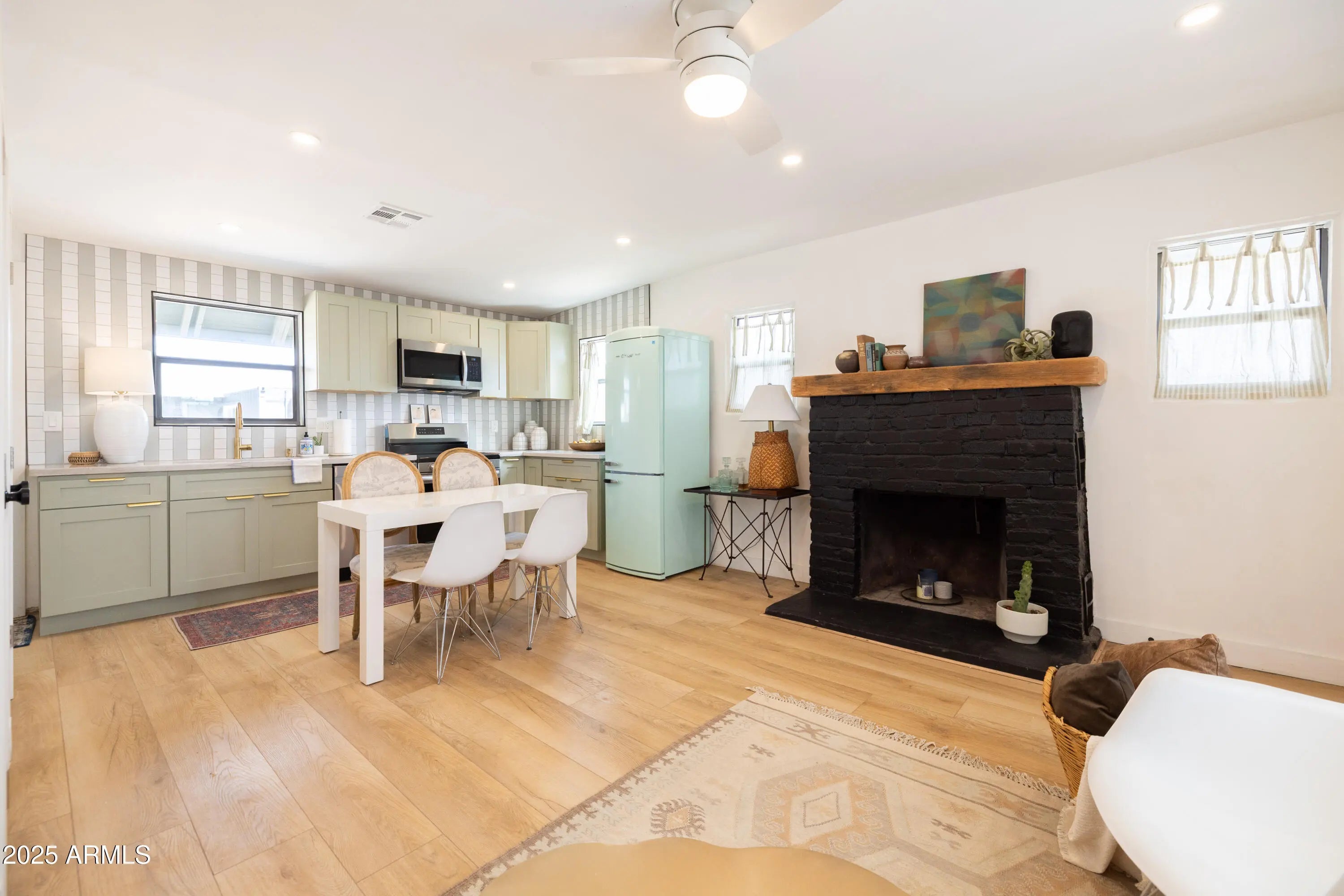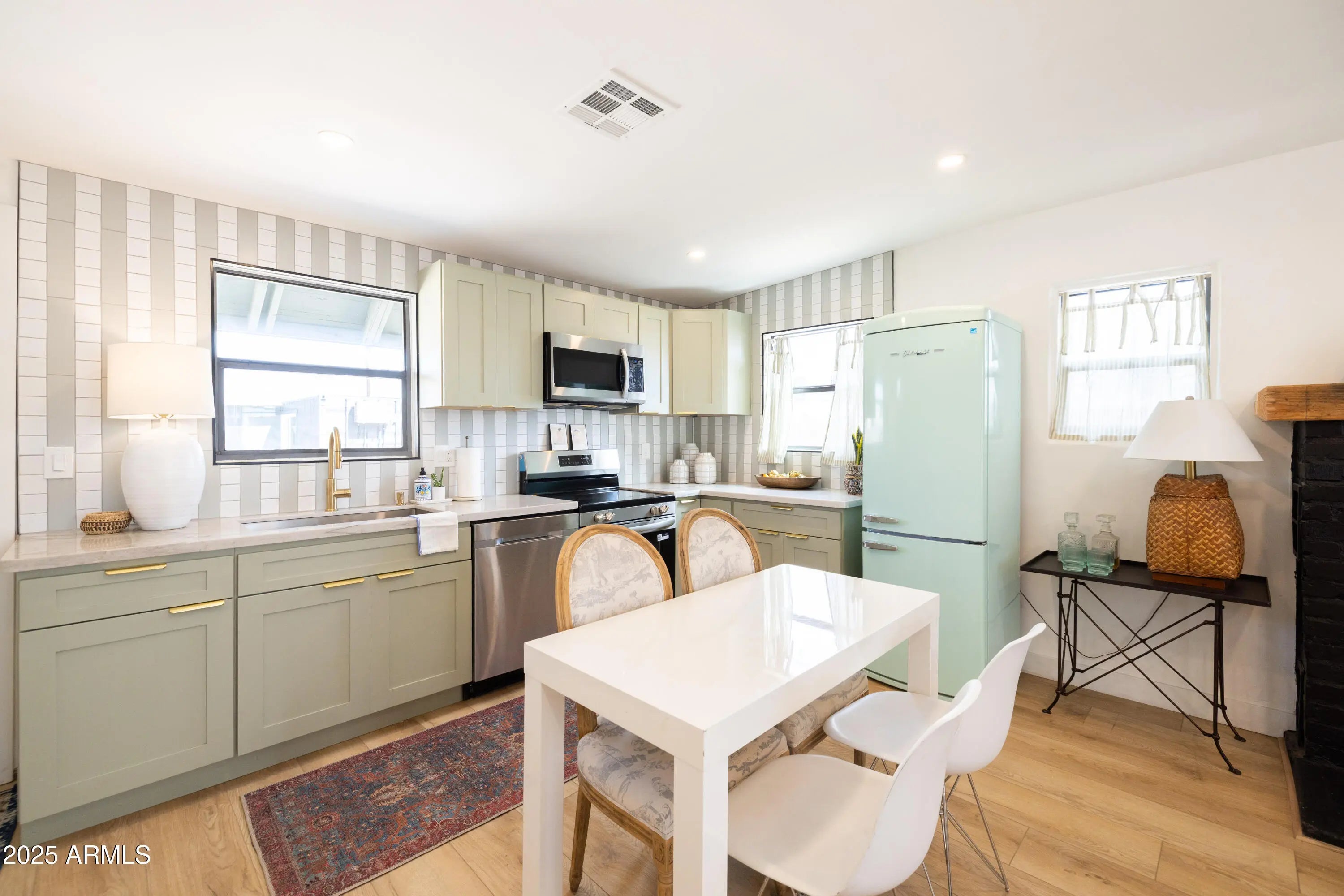 Near the Fairgrounds | Corner Lot | Income Potential: A 1929 Brick Bungalow Reborn!! This stunning historic brick bungalow has been completely remodeled head to toe, transforming a 1929 gem into a thoughtfully reimagined property where vintage character meets modern sophistication in one of Central Phoenix's most dynamic neighborhoods. This 2 BD, 1 BA main residence (716 sq ft) + fully permitted guest house with private bath (198 sq ft) + shipping container flex space with kitchenette (200 sf ft) adds up to a great value! In this remodel every element was carefully considered: sage cabinetry paired with brass fixtures, geometric designer tile that makes a statement, natural light flooding through the kitchen, a cozy brick fireplace for cooler evenings, quartz countertops, black matte hardware, and a charming front porch with exposed beams showcase the quality throughout. The permitted guest house is a fully realized space with its own bath, mini-split HVAC, and private pavered patio. Clean lines, fresh paint, and thoughtful design make it move-in ready for guests or long-term tenants. The converted shipping container serves as a modern flex space with its own kitchenette. Currently set up as an office, it could easily transform into an art studio, workshop, home gym, or even a third income stream. Industrial-chic aesthetic matched with functionality. The outdoor spaces are designed for the Phoenix lifestyle. A secure electronic rear alley access gate with key fob entry opens to reveal ample parking for both the guest house and main house, custom hardscaping, and multiple entertaining areas. The covered front porch invites you in, while the private rear yard offers both functionality and desert charm. Newer systems throughout include HVAC, roof, copper plumbing, upgraded insulation, updated electrical wiring, replaced sewer line. This custom brick historic home retains its 1929 charm while offering all the conveniences of modern living. Located in Central Phoenix in the charming Villa Verde Historic neighborhood (with historic taxes!), walking distance from the fairgrounds, on a corner lot with character in a neighborhood that's experiencing its moment, this little beauty is going to make someone's lifestyle a dream! Don't miss!!