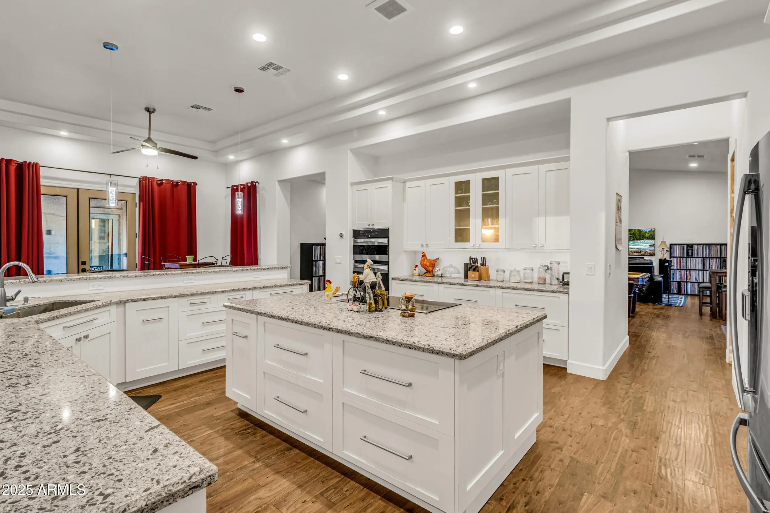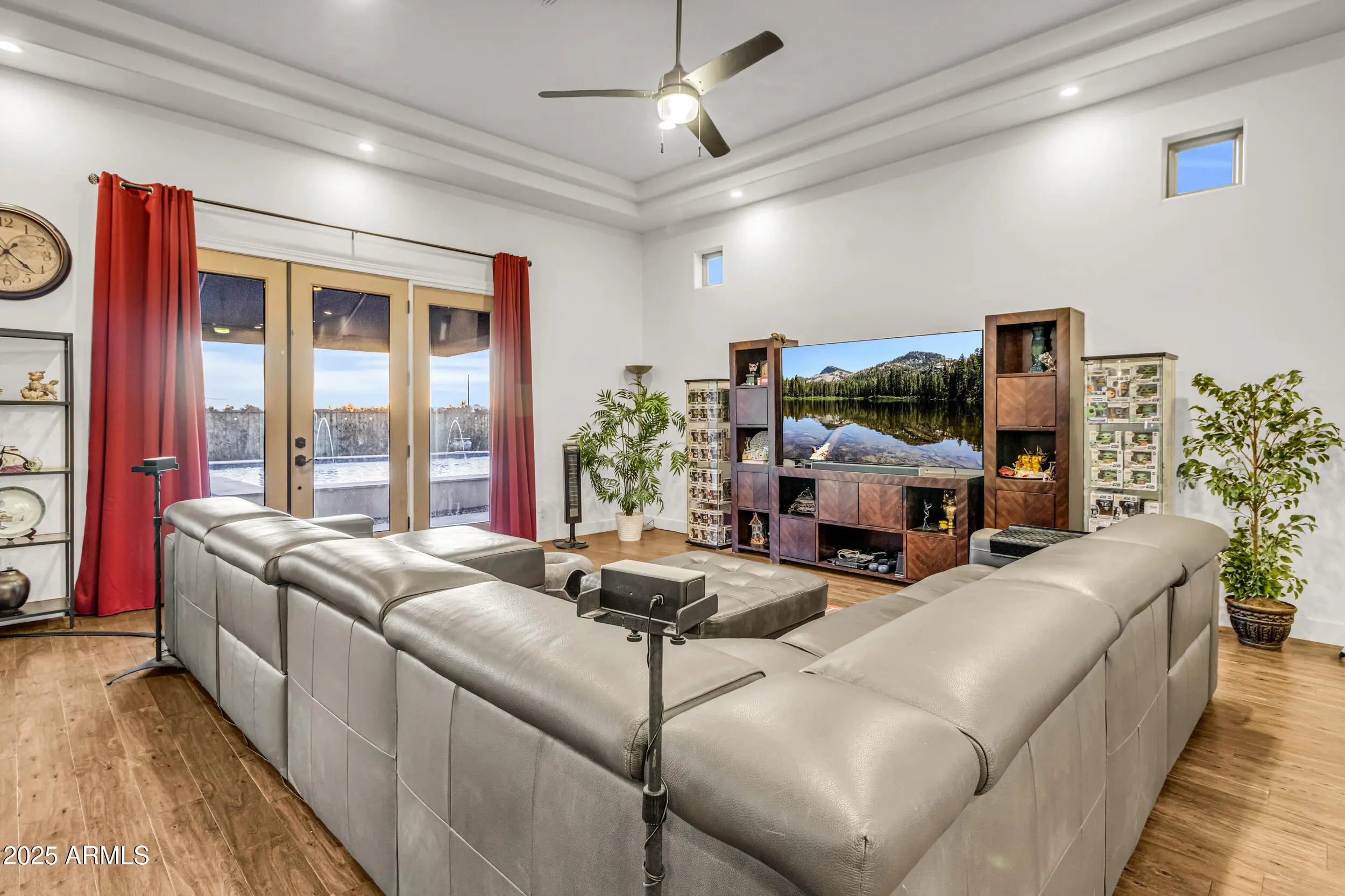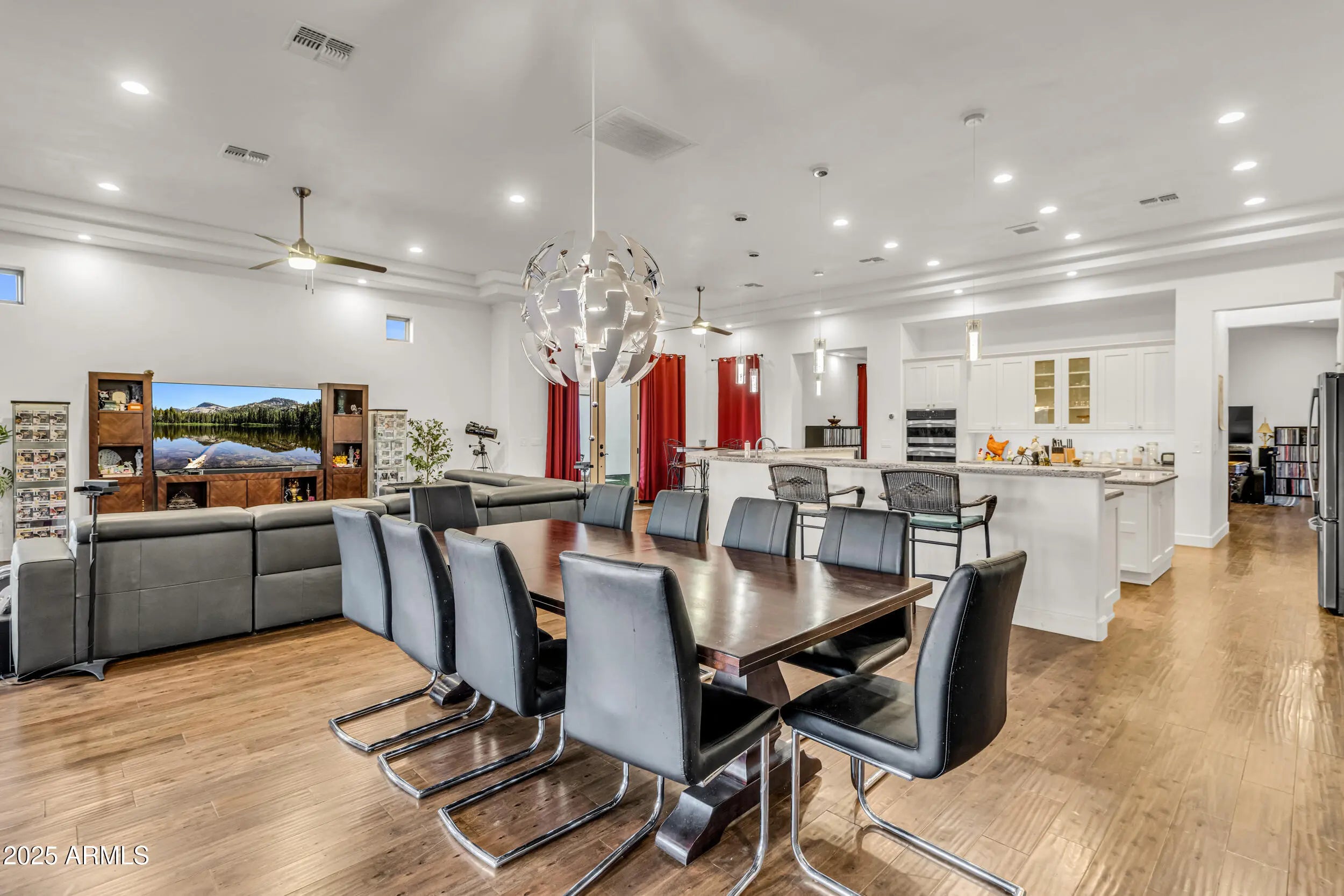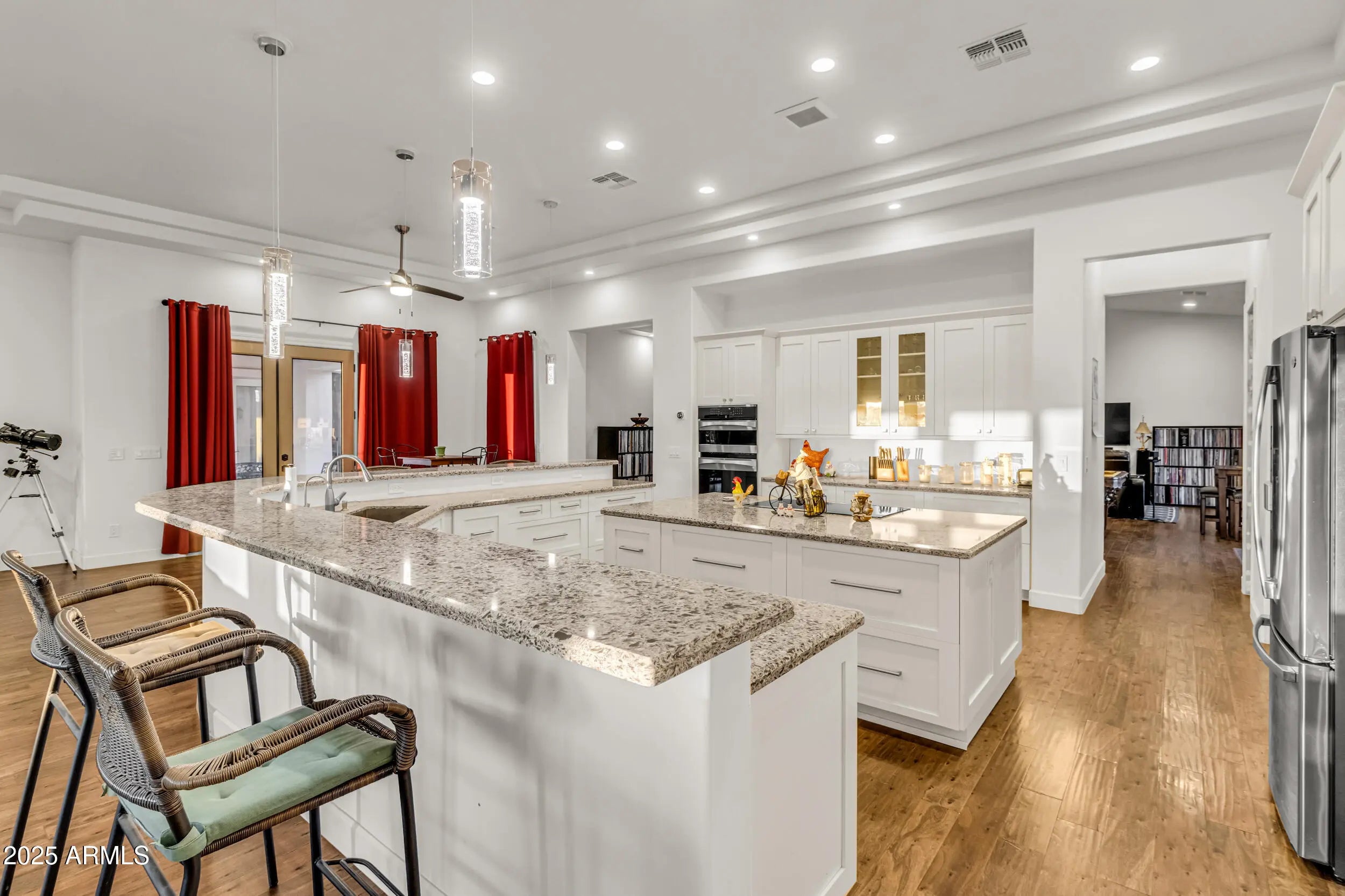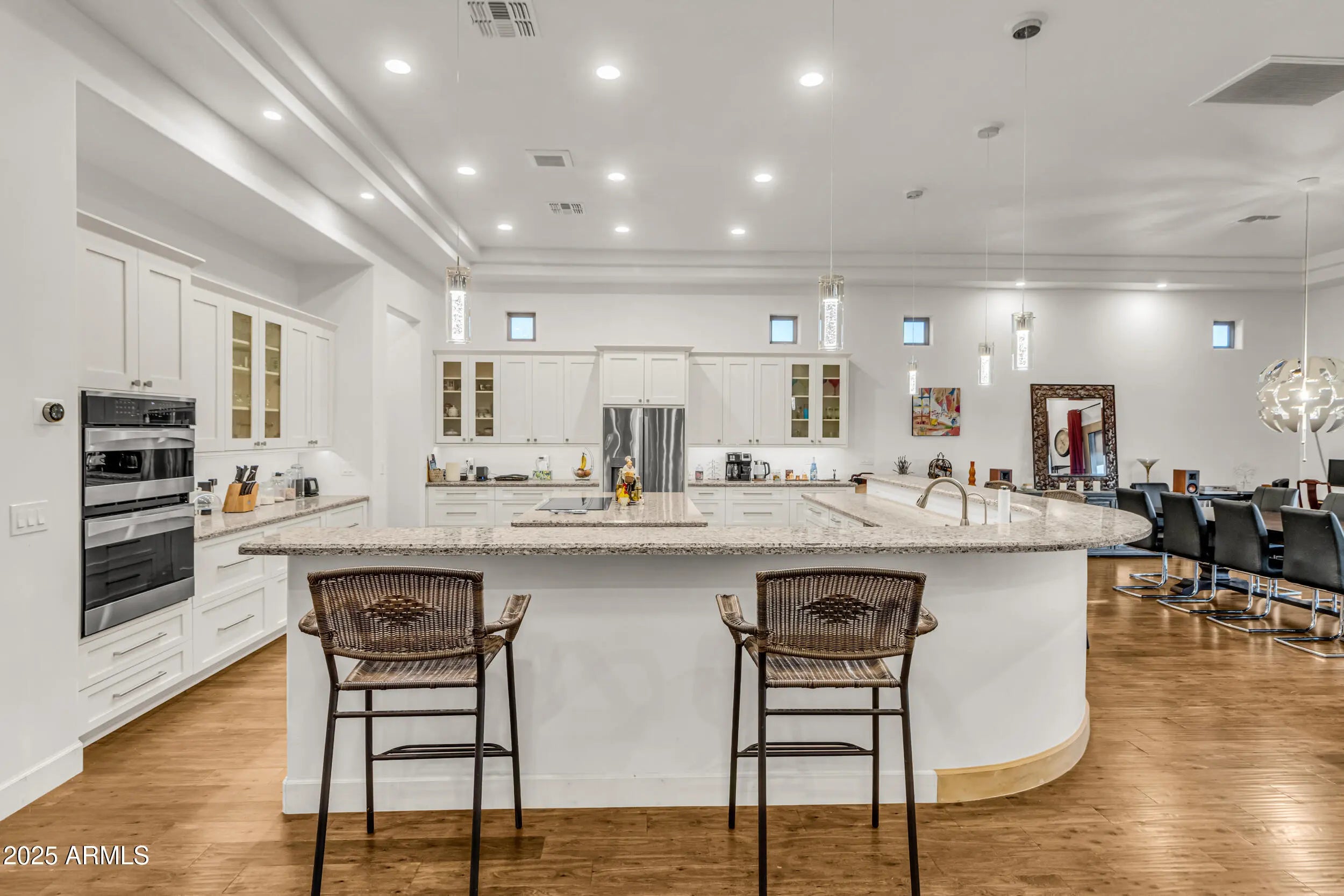 A Rare Private Estate — Luxury, Privacy & Thoughtful Design...This is the kind of home that rarely comes on the market!! A nearly 6,000 sq ft private compound on over 2.5 acres with mature trees, lush landscape, a private well, and every detail thoughtfully curated. You have plenty of room for horses, chickens, and storage for even the largest of hobbies. This gated entrance leads to a private driveway, beautifully landscaped entrance and 4-car garage, setting the tone for inside. At the heart of the home, a central courtyard with turf and rooftop terrace offers panoramic views in every direction. The resort-style backyard features a massive hotel-sized pool with 4 water features, a full size hot tub, travertine tile, turf, and multiple access points to the interior Inside, you're welcomed by 22 foot foyer entrance, 12 foot tray ceilings, striking chandeliers, and luxury engineered wood plank floors. Your oversized laundry room has with plenty of storage. The chef's kitchen includes quartz countertops, double wall ovens, a large island with storage and a breakfast bar that seats 12! -- perfect for entertaining even the largest crowds. Each of the 4 bedrooms HAS IT'S OWN EN SUITE BATHROOM, while the primary suite is a private sanctuary with a full size sitting area, large walk-in closet, a spa-like bath, dual vanities and a shower the size of a bedroom. This home offers a rare blend of space, elegance, and privacy - a true one-of-a-kind retreat.