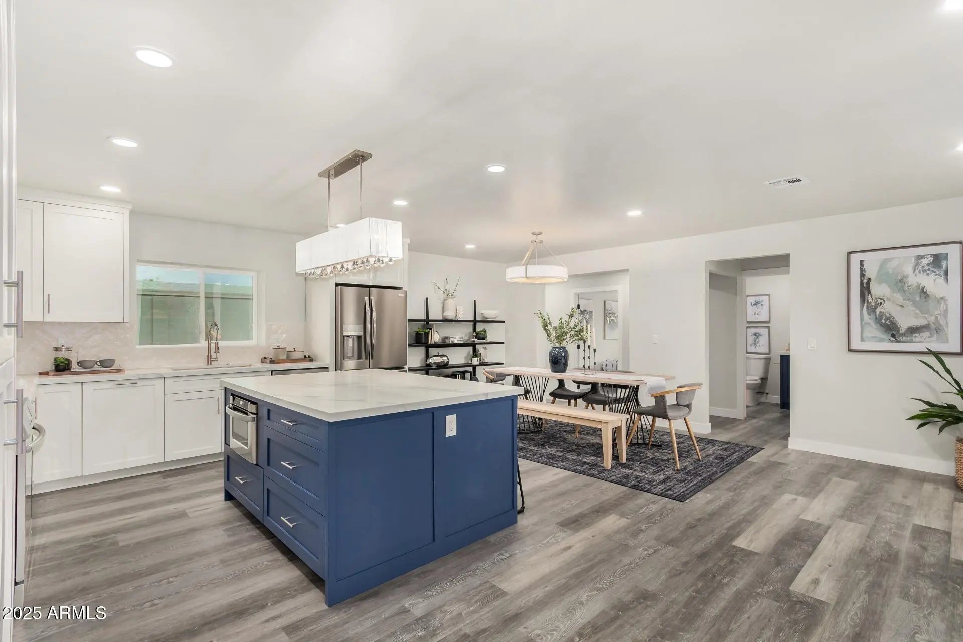Located in HOA Free Norma Estates this Custom Remodeled Home has 4 bedrooms & 2.5 baths with a N/S exposure. Beautiful curb appeal with all paver driveway and zero scaped landscaping w/artificial turf. Inside you'll discover stylish wood-look flooring, neutral palette and an open kitchen equipped w/shaker cabinetry, tile backsplash, SS appliances, induction range and a large breakfast bar island. The spacious livingroom has a fireplace with multiple settings and conveniently right off the living areas is a flex space, perfect as an office/den or bedroom. Relax in the primary bedroom with a walk-in closet and a private bath w/a sliding barn door. The entertainers backyard has a sparkling blue pool and is the perfect place for spending quality time with family/friends or just to unwind