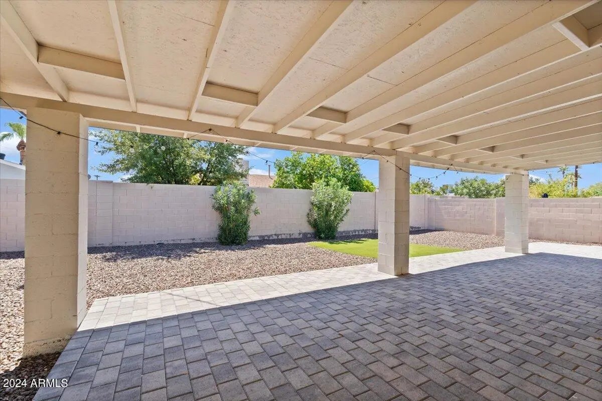 Charming, single level home in Park Scottsdale, With 3 beds & 3 FULL baths. New roof (2016) and all-new plumbing (2019). In 2023, a huge new patio cover, pavers and fresh exterior paint further elevated the home's curb appeal. Extended driveway and 1-car garage, which includes a spacious workshop/storage area. Inside, the open floor plan is flooded with natural light, creating an inviting flow throughout the home. The entertainer's kitchen has custom chocolate maple cabinets, stainless steel appliances, granite slab countertops, and a breakfast bar with built-in wine storage, perfect for entertaining. Two master suites both with walk in closets & en-suite bathrooms. Flooring is either large tile or wood.