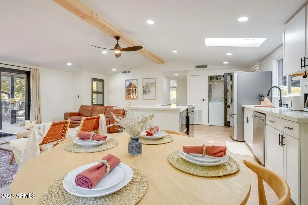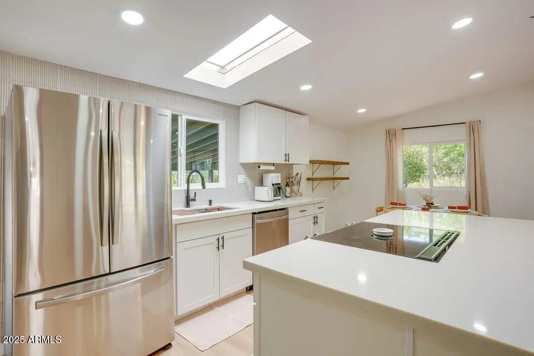Everything is brand new in this welcoming, peaceful home tucked in the quiet hills of West Sedona. Move right in and relax, or host your guests immediately. This tastefully finished 3 bedroom, 2 bath retreat has been fully renovated in the past two years, creating a rare, ''like- new'' experience - with a calming and soft vibe. Take in the breathtaking views of Thunder Mountain from your private back deck. Hike your favorite trails and enjoy Sedona's best amenities only minutes away. What's new? Roof, central air, drywall, flooring, kitchen cabinets, countertops, sinks, refrigerator, microwave, dishwasher, baseboards, lighting, fan, electrical outlet, bathrooms (floor, tile, counters, fixtures), windows, doors, decks, sliding, retractable patio door, exterior doors,and paint. wonderful getaway is currently a successful STR, sold furnished, and financials are available. Home is often rented.