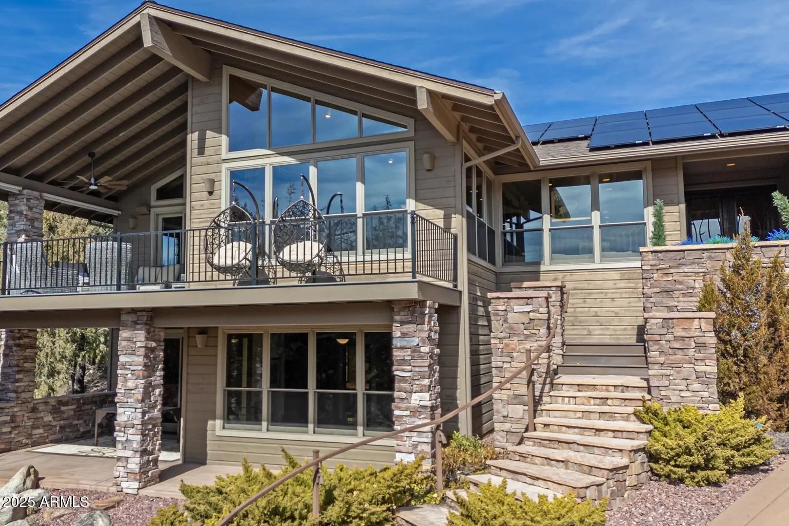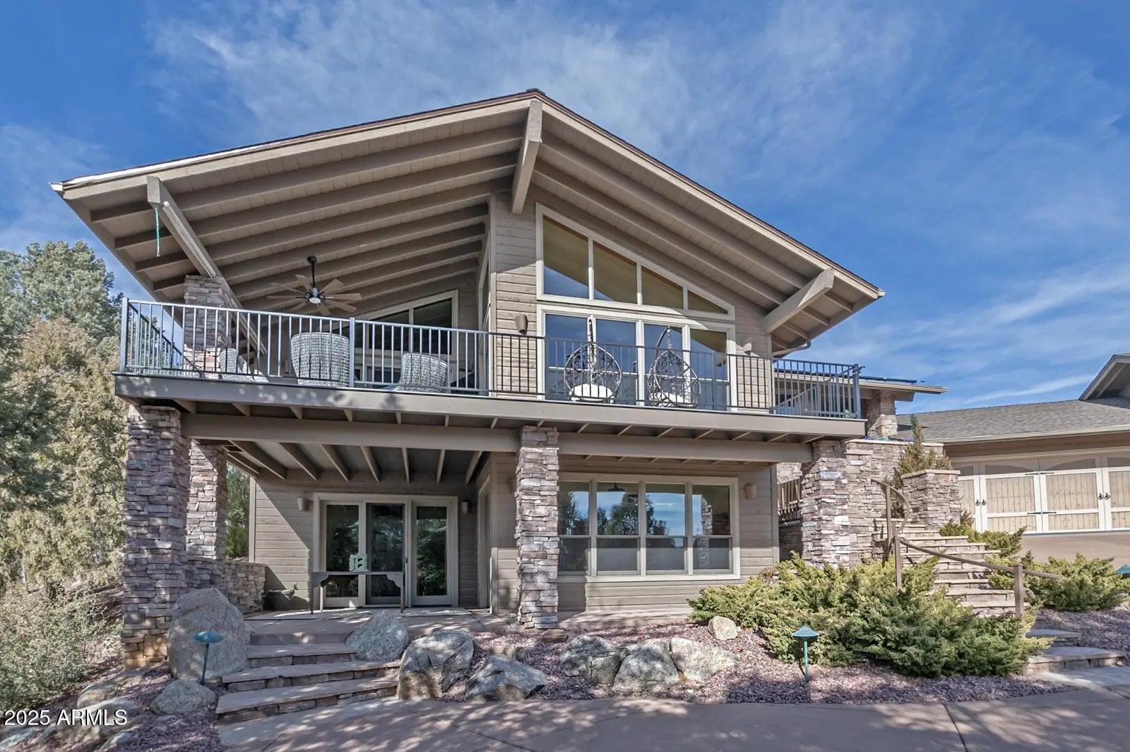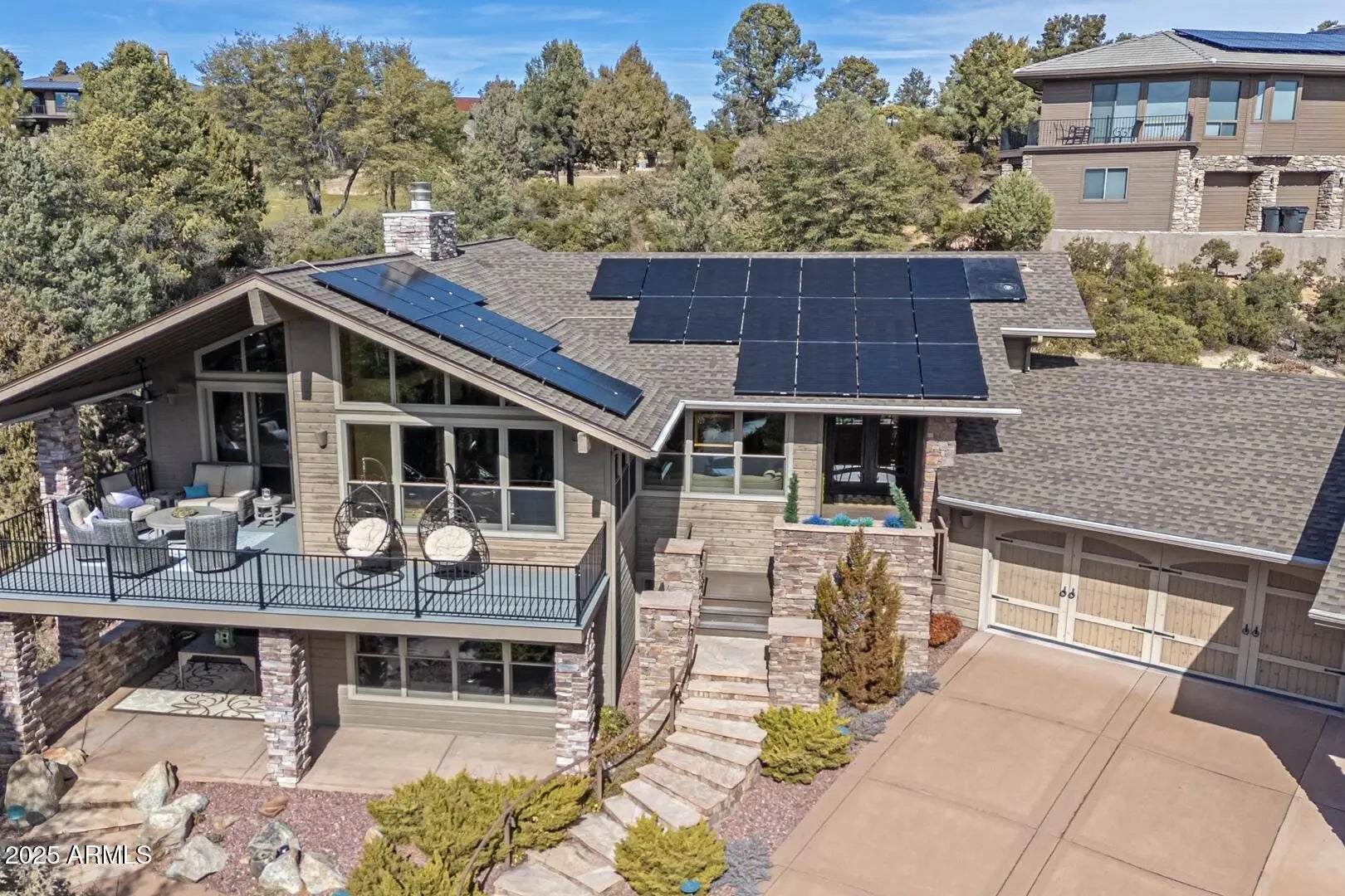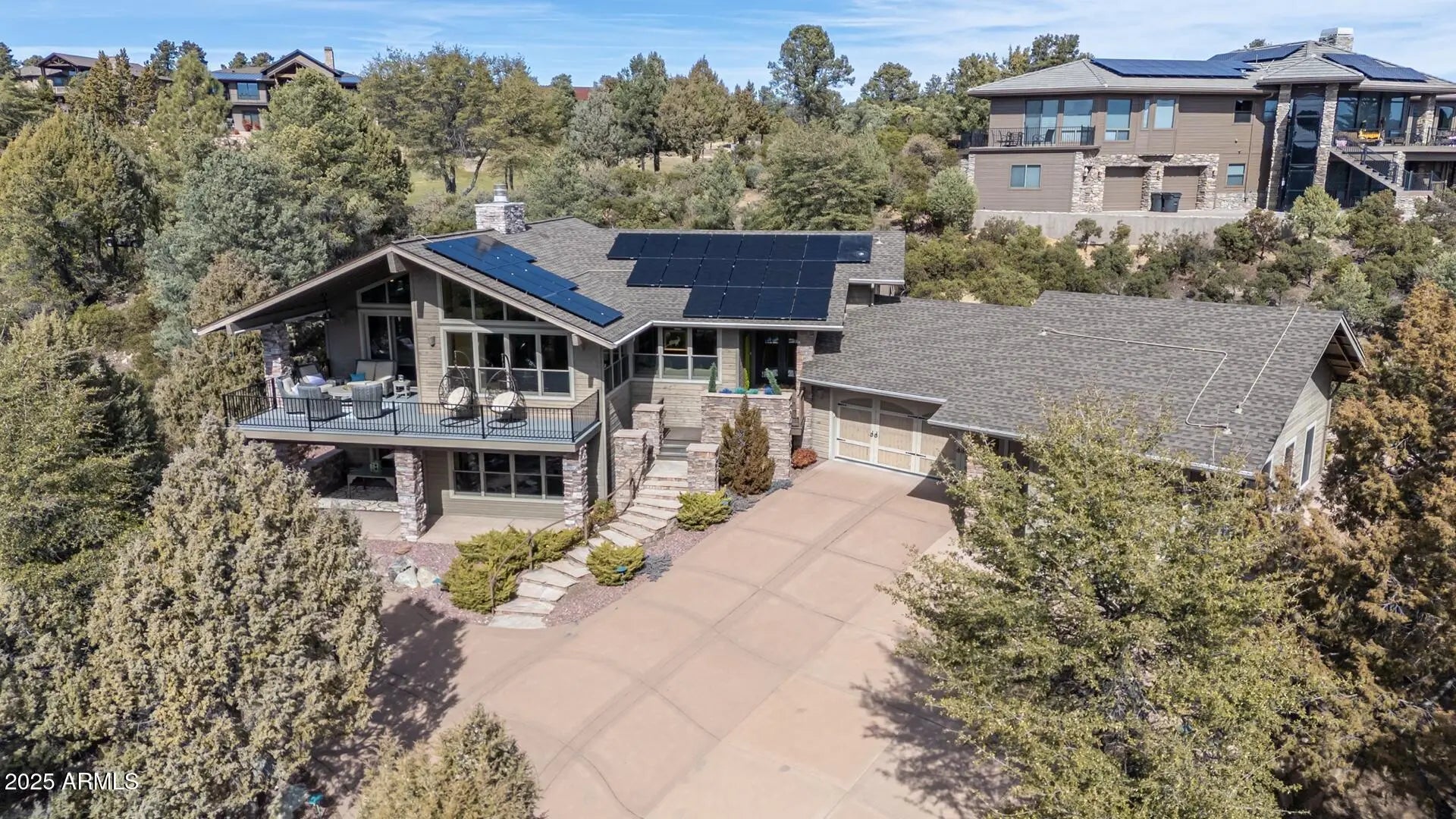 Welcome to your private mountain oasis — a luxurious three-bedroom, four-bathroom custom home designed for comfort, relaxation, and refined living. Perfectly positioned on 0.66 acres along the third fairway of the award-winning Chaparral Pines Golf Club, this residence offers both tranquility and breathtaking views of the Granite Dells. Step inside to an inviting open floor plan where the main level showcases a chef's kitchen with stainless steel appliances, custom cabinetry, copper accents, a beverage refrigerator, and elegant countertops. The spacious living area centers around a cozy fireplace and large windows that frame the natural beauty outside. The primary suite is a true private spa retreat. Indulge in the custom-built ensuite featuring a gas fireplace, a soothing Welcome to your private mountain oasis a luxurious three-bedroom, four-bathroom custom home designed for comfort, relaxation, and refined living. Perfectly positioned on 0.66 acres along the third fairway of the award-winning Chaparral Pines Golf Club, this residence offers both tranquility and breathtaking views of the Granite Dells. Step inside to an inviting open floor plan where the main level showcases a chef's kitchen with stainless steel appliances, custom cabinetry, copper accents, a beverage refrigerator, and elegant countertops. The spacious living area centers around a cozy fireplace and large windows that frame the natural beauty outside. The primary suite is a true private spa retreat. Indulge in the custom-built ensuite featuring a gas fireplace, a soothing waterfall that flows directly into a luxurious jacuzzi, an open walk-in shower, dual sinks, heated bathroom floor, and a large custom walk-in closet. French doors open to your secluded patio complete with another waterfall feature and fire pit creating the ultimate indoor-outdoor sanctuary. The walk-out lower level includes two additional master suites, a comfortable living area, steam shower, and a wine cellar, all with their own private patio and entrance ideal for guests. Additional highlights include a 3.5-car garage with epoxy flooring and a lift for a fourth vehicle, dual-pane Pella windows, a brand-new roof (2025), new exterior paint (2025), owned solar panels, NUVO DUO saltless water softener (2025), remote opening/closing bathroom skylights, a custom front door, and an oversized driveway. Tucked away in a quiet cul-de-sac within the gated, guarded community of Chaparral Pines, this home offers peace, privacy, and security. Membership to the Chaparral Trailhead is required and provides access to world-class amenities at both Chaparral Pines and The Rim Club, including fitness centers, pools, dining, pickleball and tennis courts, and more. Golf membership is optional. This exceptional property is a true must-see a serene escape that perfectly blends luxury, nature, and lifestyle.