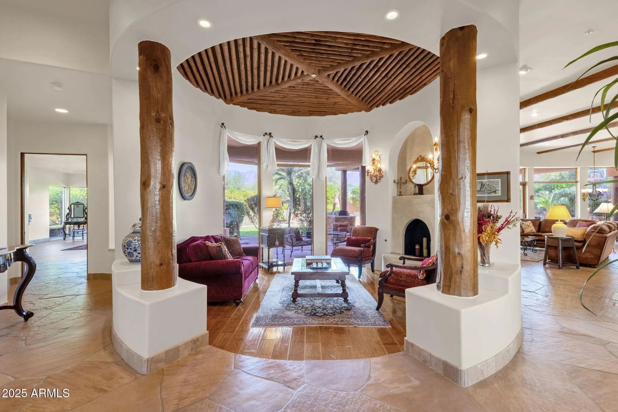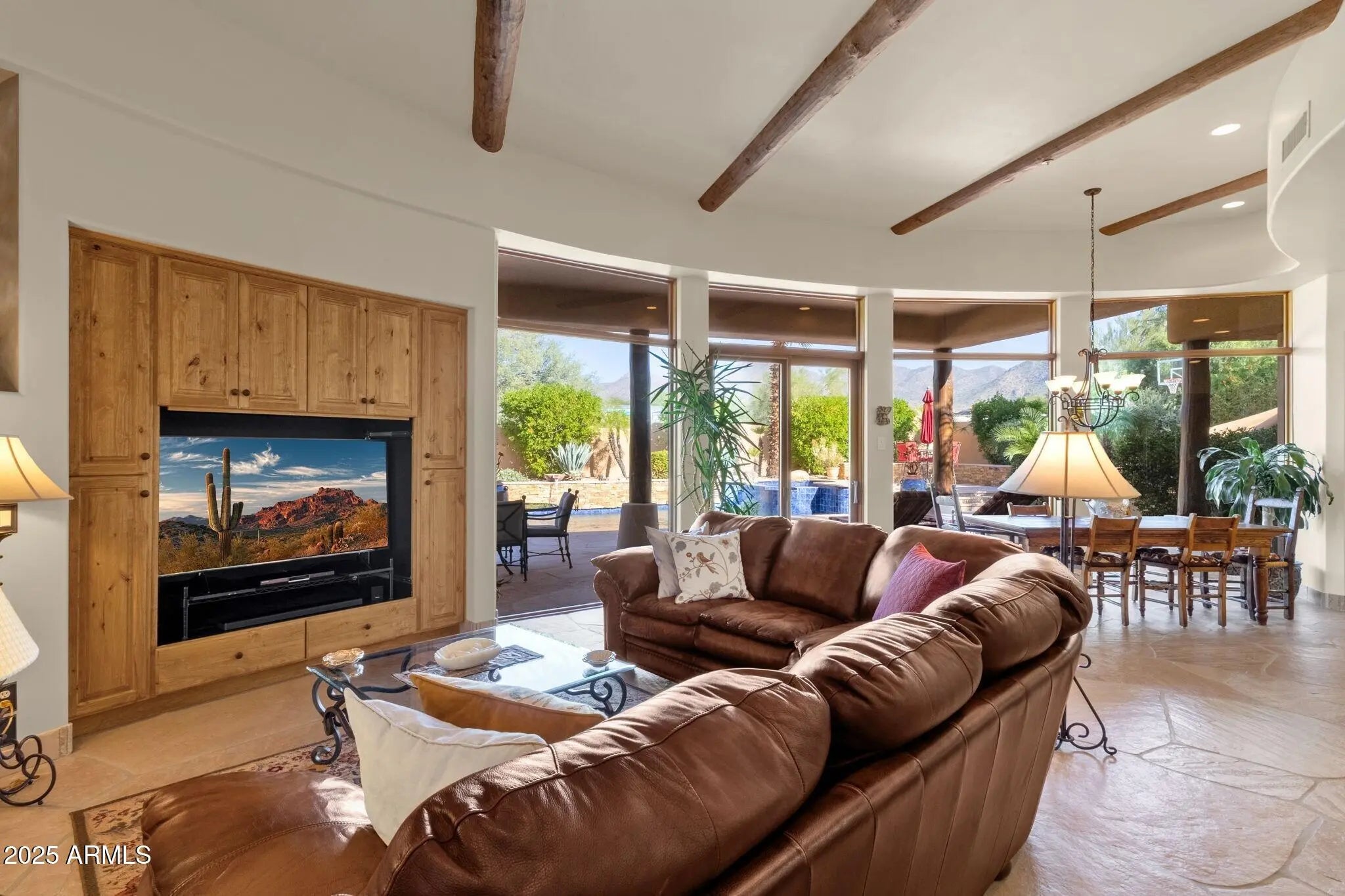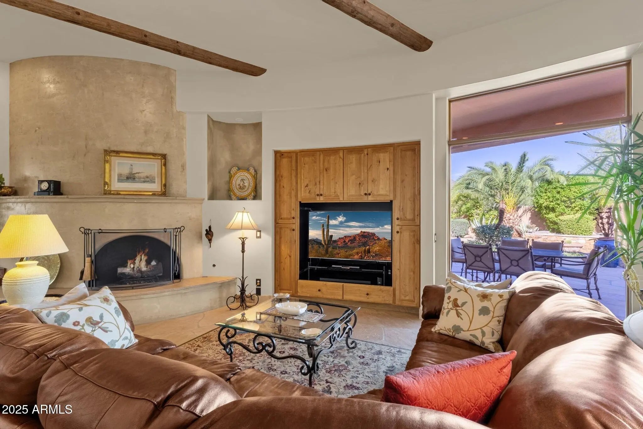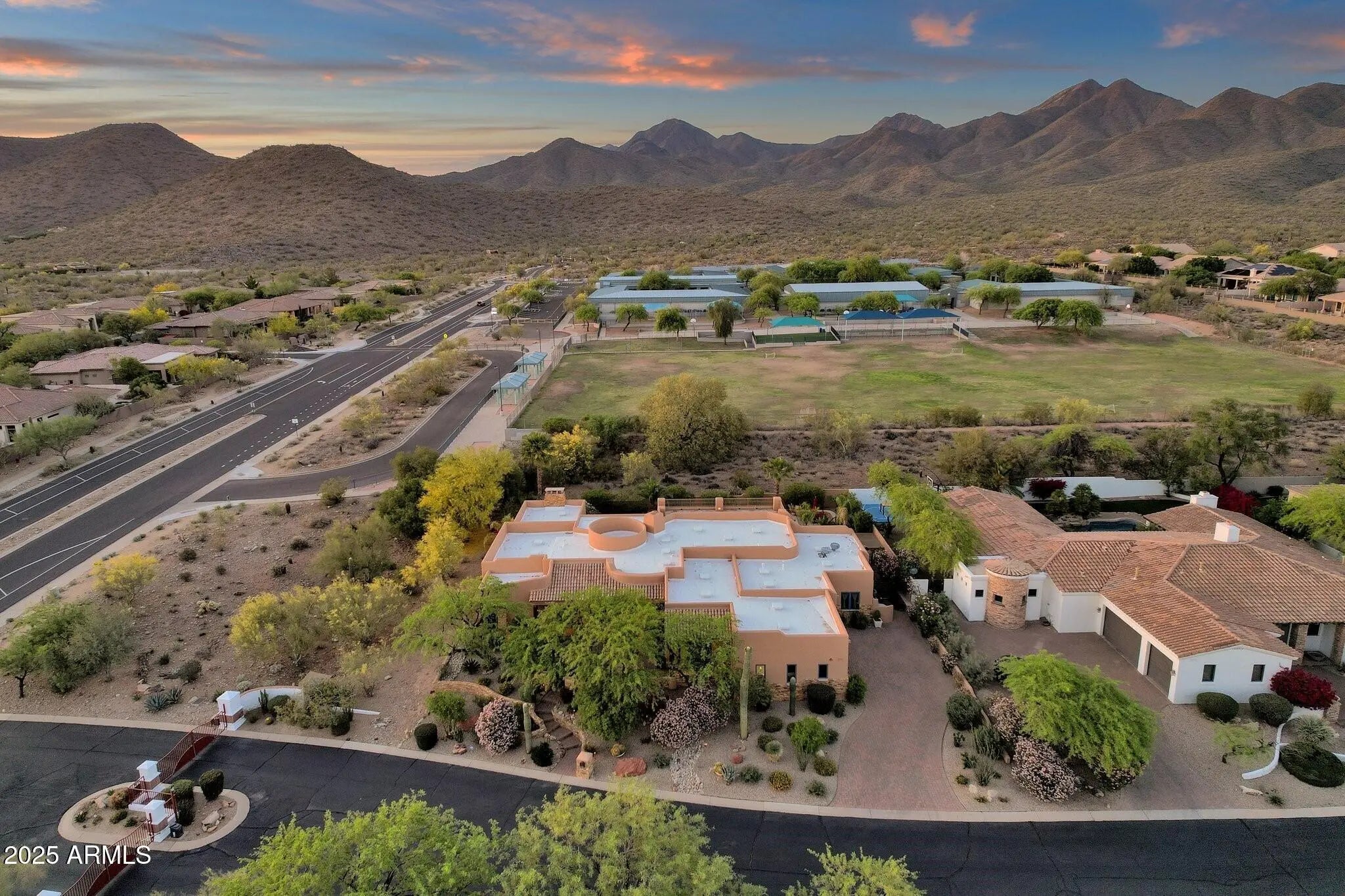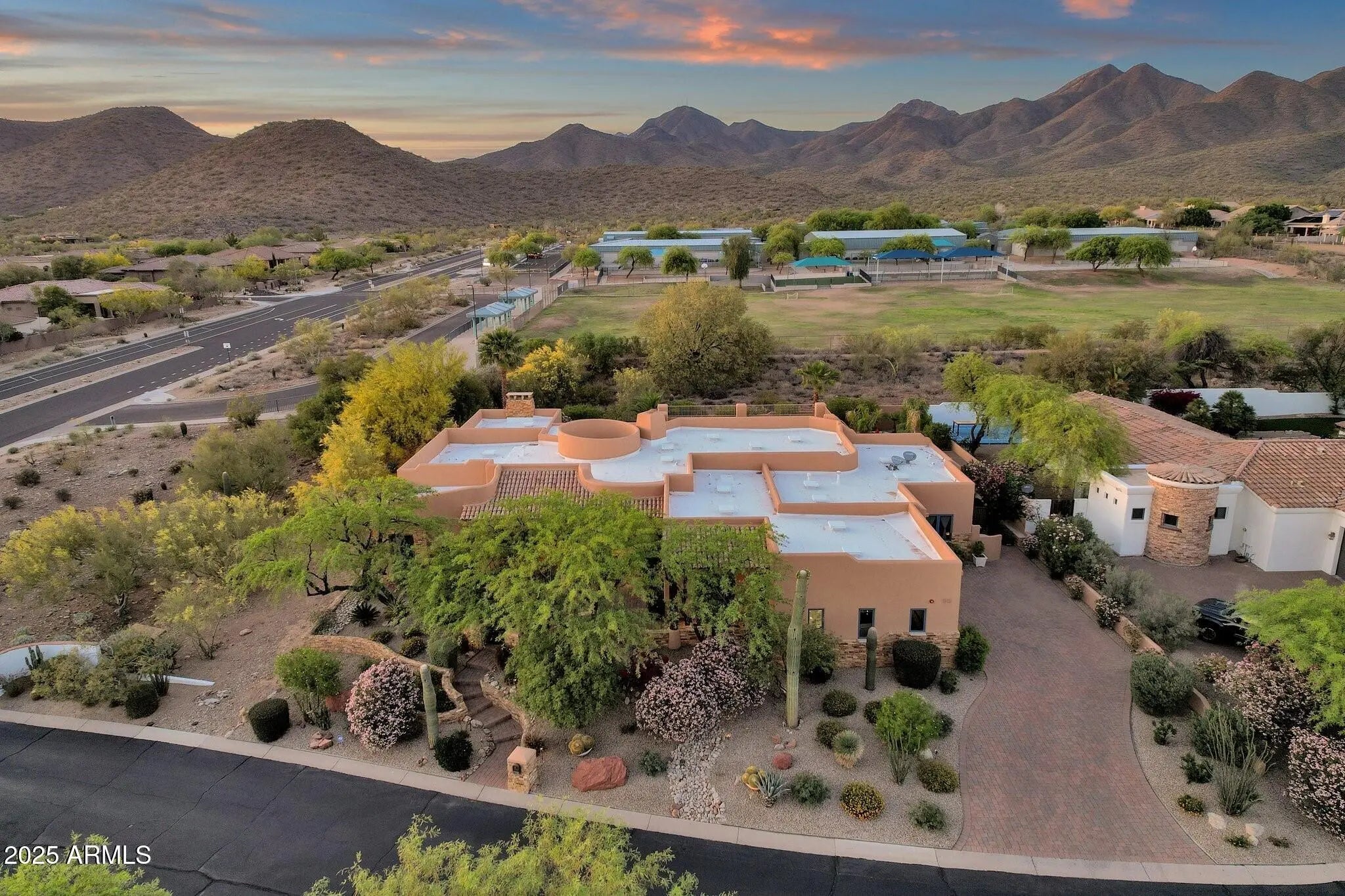 Sophisticated Single-Level Estate with Unrivaled Style and Serenity ~ Nestled within the exclusive gated enclave of Sombras Montaña, home to just seven residences, this impeccably maintained custom estate embodies timeless elegance and modern livability. Thoughtfully designed on a single level, the 5-bedroom, 4.5-bath floor plan spans over 4,100 square feet of refined living space. Every room captures sweeping McDowell Mountain views through dual-pane Pella windows and showcases meticulous craftsmanship with travertine and Marazzi tile floors, custom cabinetry, and architectural ceiling details... See more. The gourmet kitchen delights with Sub-Zero refrigeration, Dacor double ovens, gas cooktop, granite counters, and an expansive island overlooking the great roomcomplete with a wet bar and one of three gas fireplaces. The split primary suite offers a serene retreat with a spa-inspired bath featuring a jetted tub, dual vanities, and a walk-in shower. Outside, discover a true resort oasis featuring a heated pool and spa with a variable-speed pump, misting system, built-in BBQ, and lush grass landscapingall perfectly positioned to capture the beauty of Arizona sunsets. The rooftop deck delivers 360° panoramic mountain and city-light views. Notable improvements include a completely new HVAC system (October 2025) and fresh interior and exterior paint (2025), enhancing both comfort and curb appeal. Additional highlights include smart-home technology, an owned water softener, central vacuum, fire sprinkler system, and an oversized three-car garage with built-in cabinetry. Experience exceptional privacy, sophisticated design, and breathtaking views in one of Scottsdale's most intimate gated communities.
