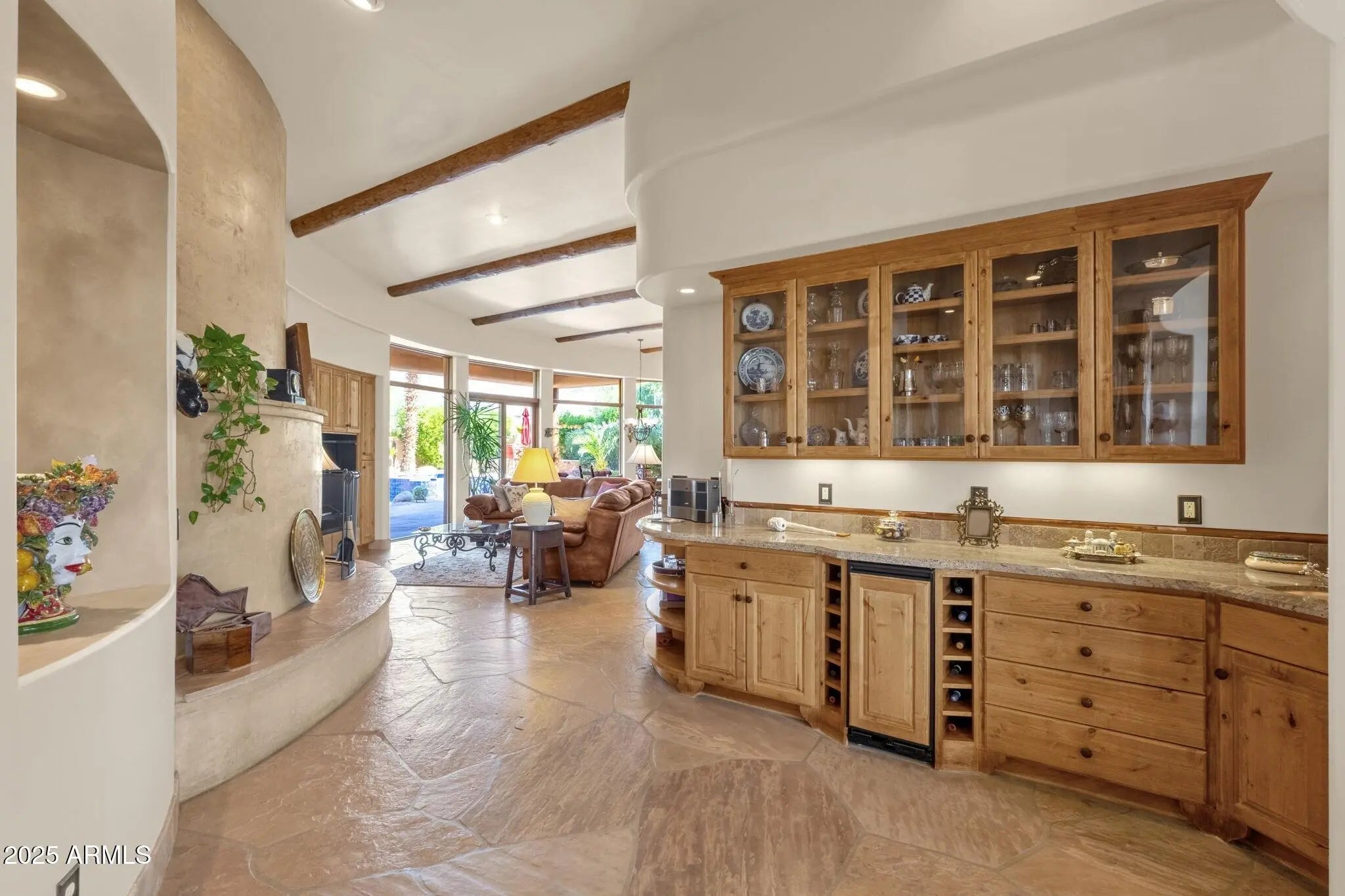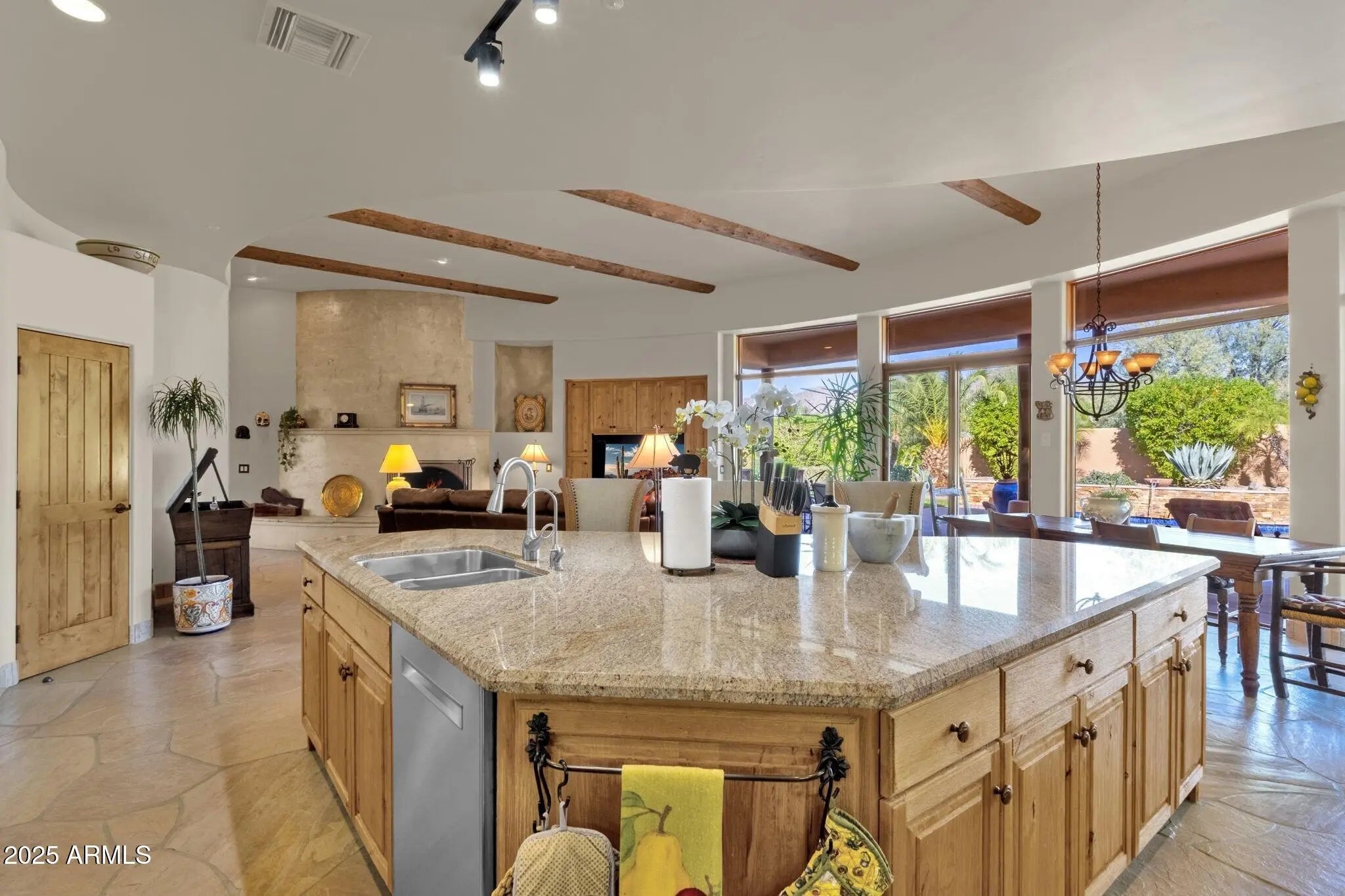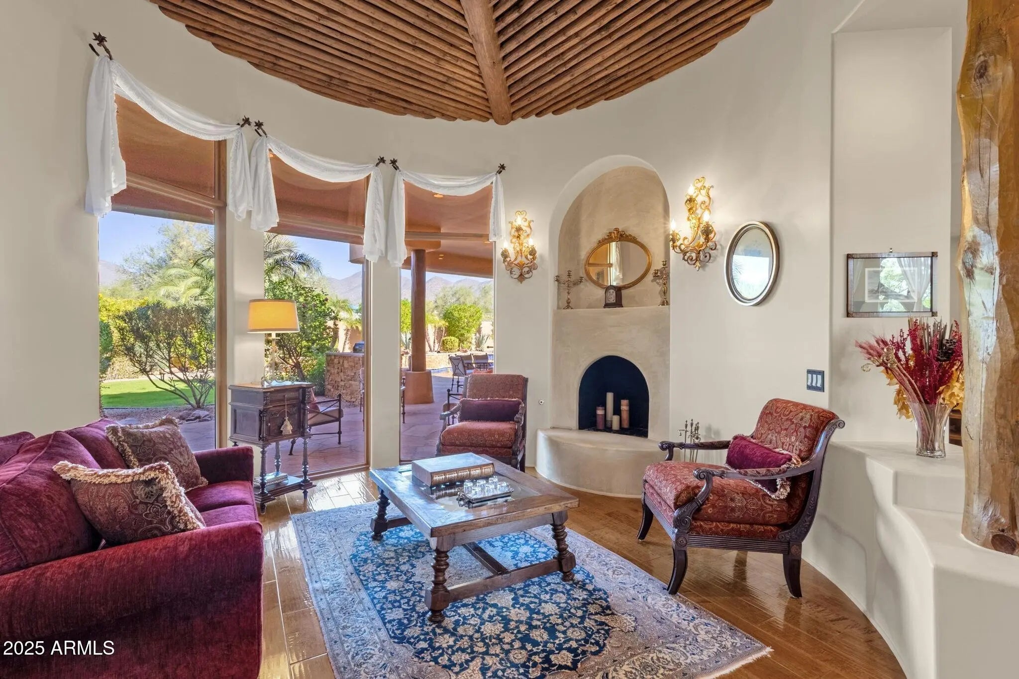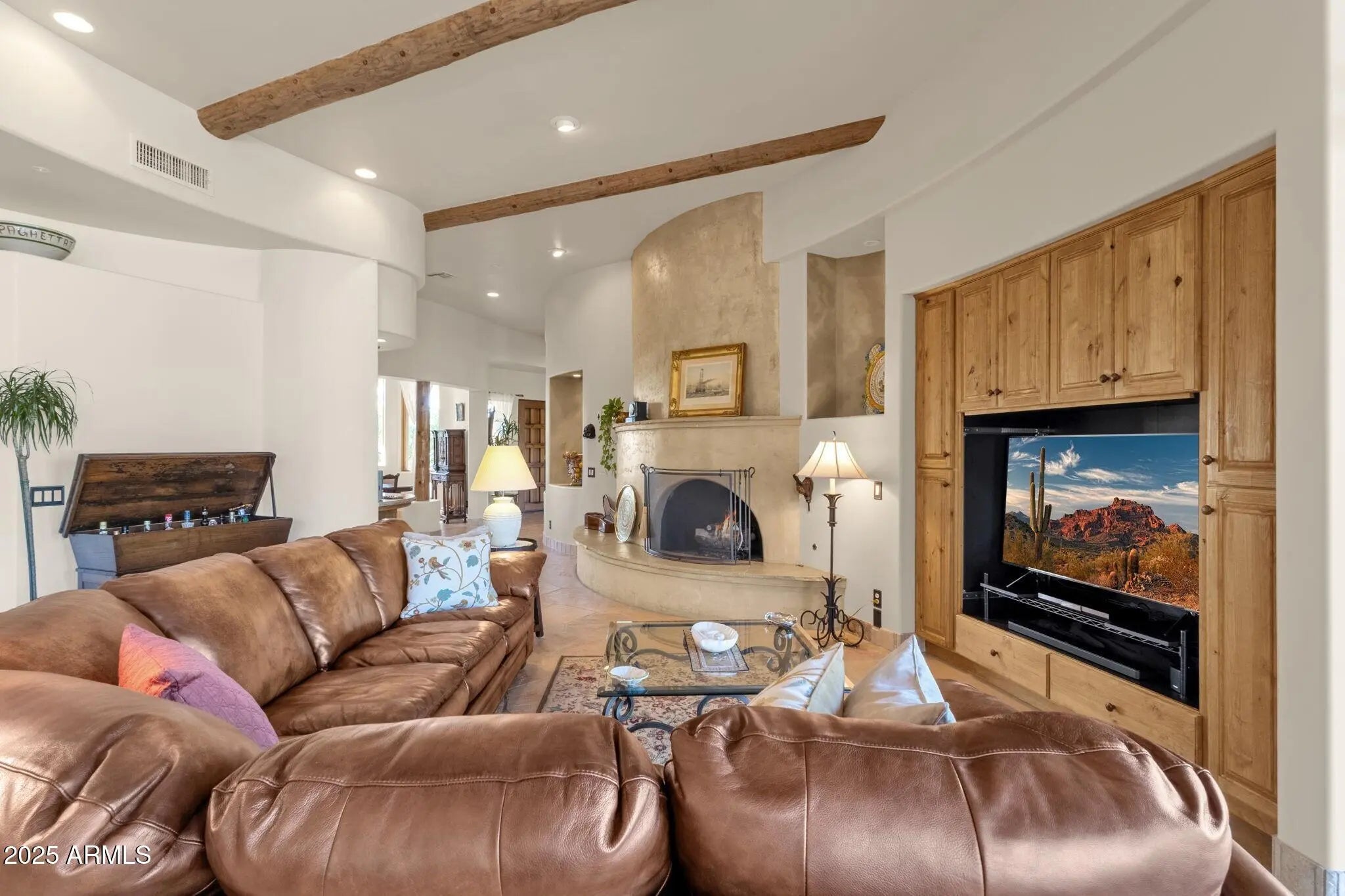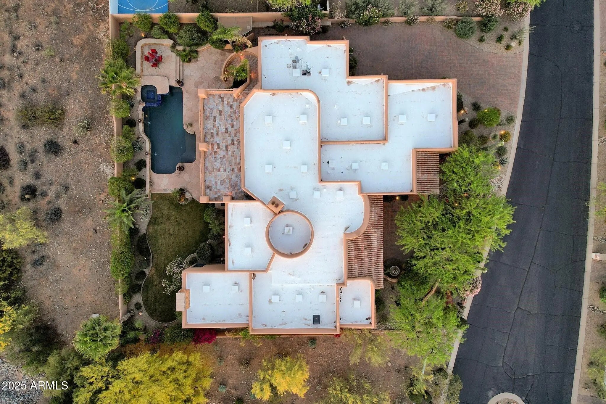 Sophisticated Single-Level Estate with Unrivaled Style and Serenity ~ Nestled within the exclusive gated enclave of Sombras Montaña, home to just seven residences, this impeccably maintained custom estate embodies timeless elegance and modern livability. Thoughtfully designed on a single level, the 5-bedroom, 4.5-bath floor plan spans over 4,100 square feet of refined living space. Every room captures sweeping McDowell Mountain views through dual-pane Pella windows and showcases meticulous craftsmanship with travertine and Marazzi tile floors, custom cabinetry, and architectural ceiling details... See more. The gourmet kitchen delights with Sub-Zero refrigeration, Dacor double ovens, gas cooktop, granite counters, and an expansive island overlooking the great roomcomplete with a wet bar and one of three gas fireplaces. The split primary suite offers a serene retreat with a spa-inspired bath featuring a jetted tub, dual vanities, and a walk-in shower. Outside, discover a true resort oasis featuring a heated pool and spa with a variable-speed pump, misting system, built-in BBQ, and lush grass landscapingall perfectly positioned to capture the beauty of Arizona sunsets. The rooftop deck delivers 360° panoramic mountain and city-light views. Notable improvements include a completely new HVAC system (October 2025) and fresh interior and exterior paint (2025), enhancing both comfort and curb appeal. Additional highlights include smart-home technology, an owned water softener, central vacuum, fire sprinkler system, and an oversized three-car garage with built-in cabinetry. Experience exceptional privacy, sophisticated design, and breathtaking views in one of Scottsdale's most intimate gated communities.