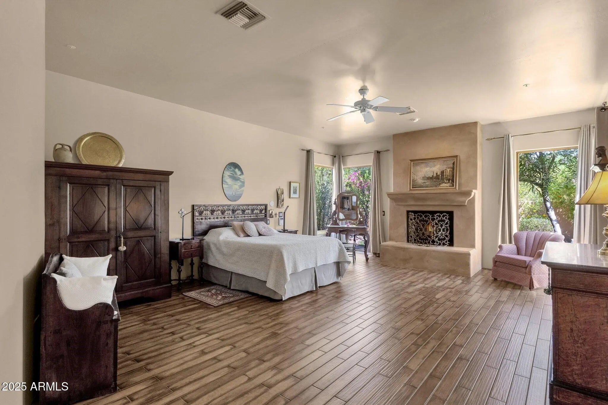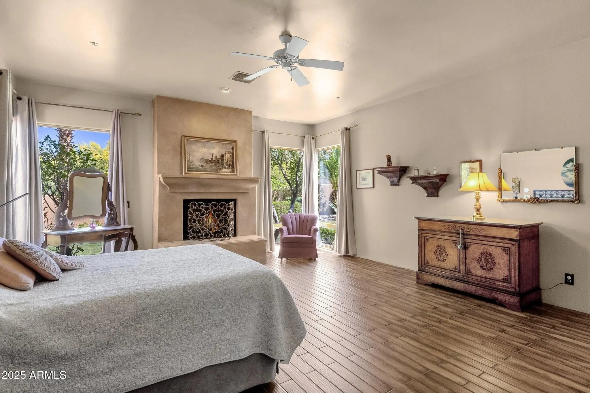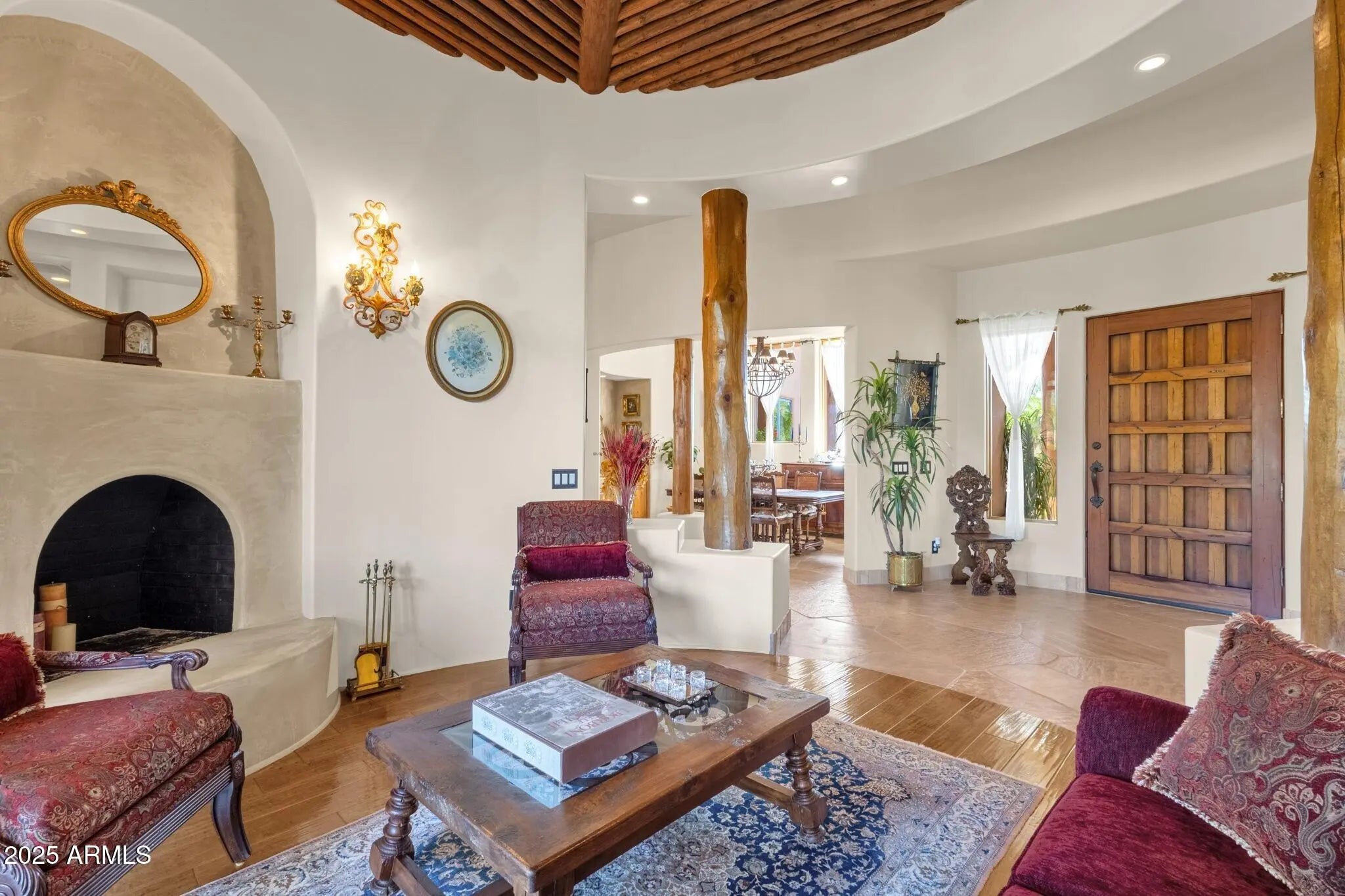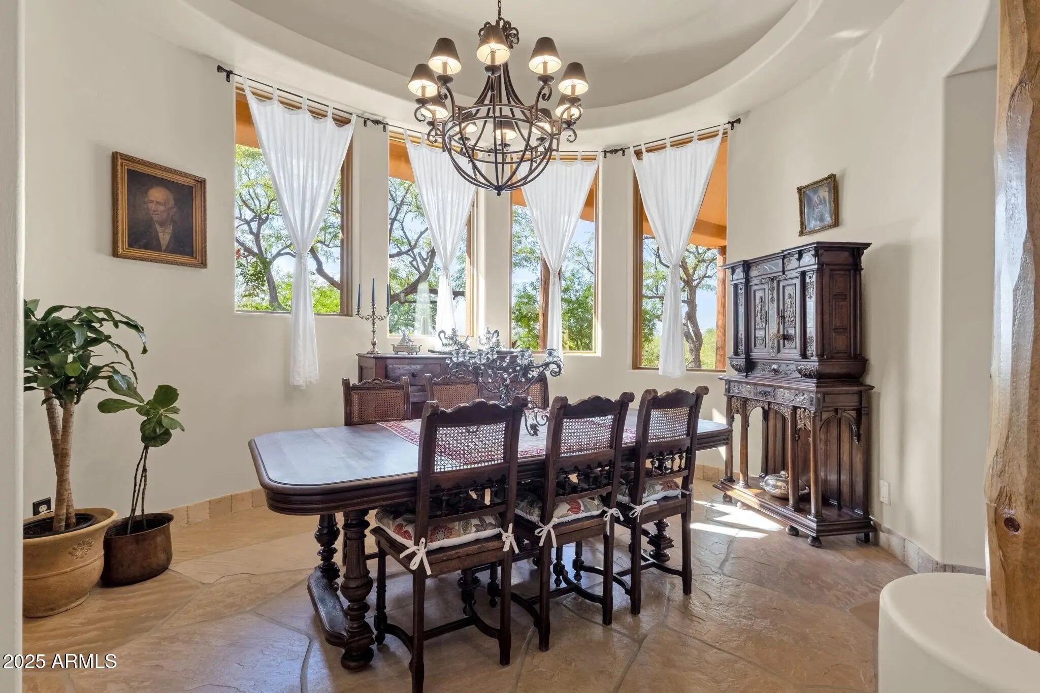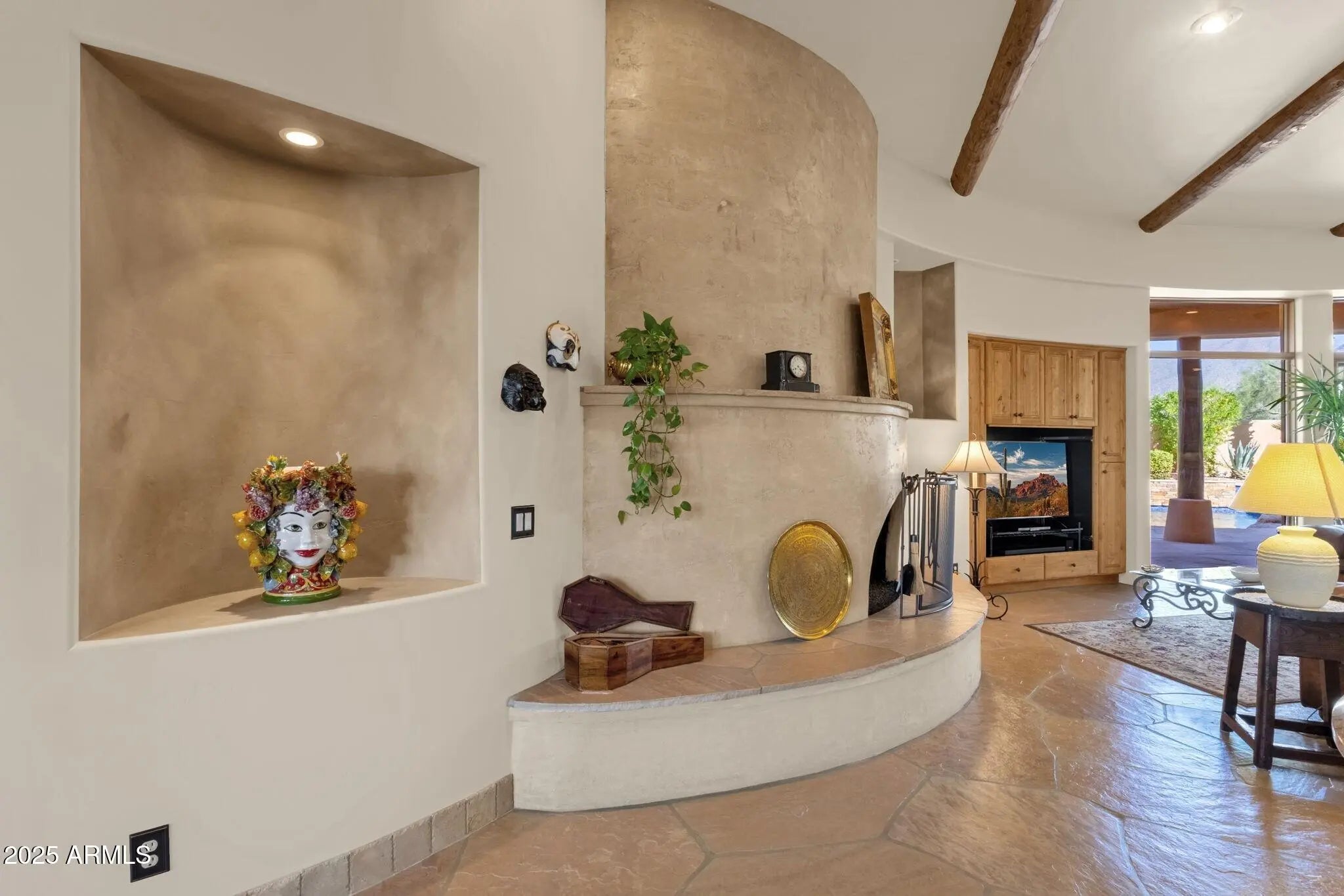 Sophisticated Single-Level Estate with Unrivaled Style and Serenity ~ Nestled within the exclusive gated enclave of Sombras Montaña, home to just seven residences, this impeccably maintained custom estate embodies timeless elegance and modern livability. Thoughtfully designed on a single level, the 5-bedroom, 4.5-bath floor plan spans over 4,100 square feet of refined living space. Every room captures sweeping McDowell Mountain views through dual-pane Pella windows and showcases meticulous craftsmanship with travertine and Marazzi tile floors, custom cabinetry, and architectural ceiling details... See more. The gourmet kitchen delights with Sub-Zero refrigeration, Dacor double ovens, gas cooktop, granite counters, and an expansive island overlooking the great roomcomplete with a wet bar and one of three gas fireplaces. The split primary suite offers a serene retreat with a spa-inspired bath featuring a jetted tub, dual vanities, and a walk-in shower. Outside, discover a true resort oasis featuring a heated pool and spa with a variable-speed pump, misting system, built-in BBQ, and lush grass landscapingall perfectly positioned to capture the beauty of Arizona sunsets. The rooftop deck delivers 360° panoramic mountain and city-light views. Notable improvements include a completely new HVAC system (October 2025) and fresh interior and exterior paint (2025), enhancing both comfort and curb appeal. Additional highlights include smart-home technology, an owned water softener, central vacuum, fire sprinkler system, and an oversized three-car garage with built-in cabinetry. Experience exceptional privacy, sophisticated design, and breathtaking views in one of Scottsdale's most intimate gated communities.