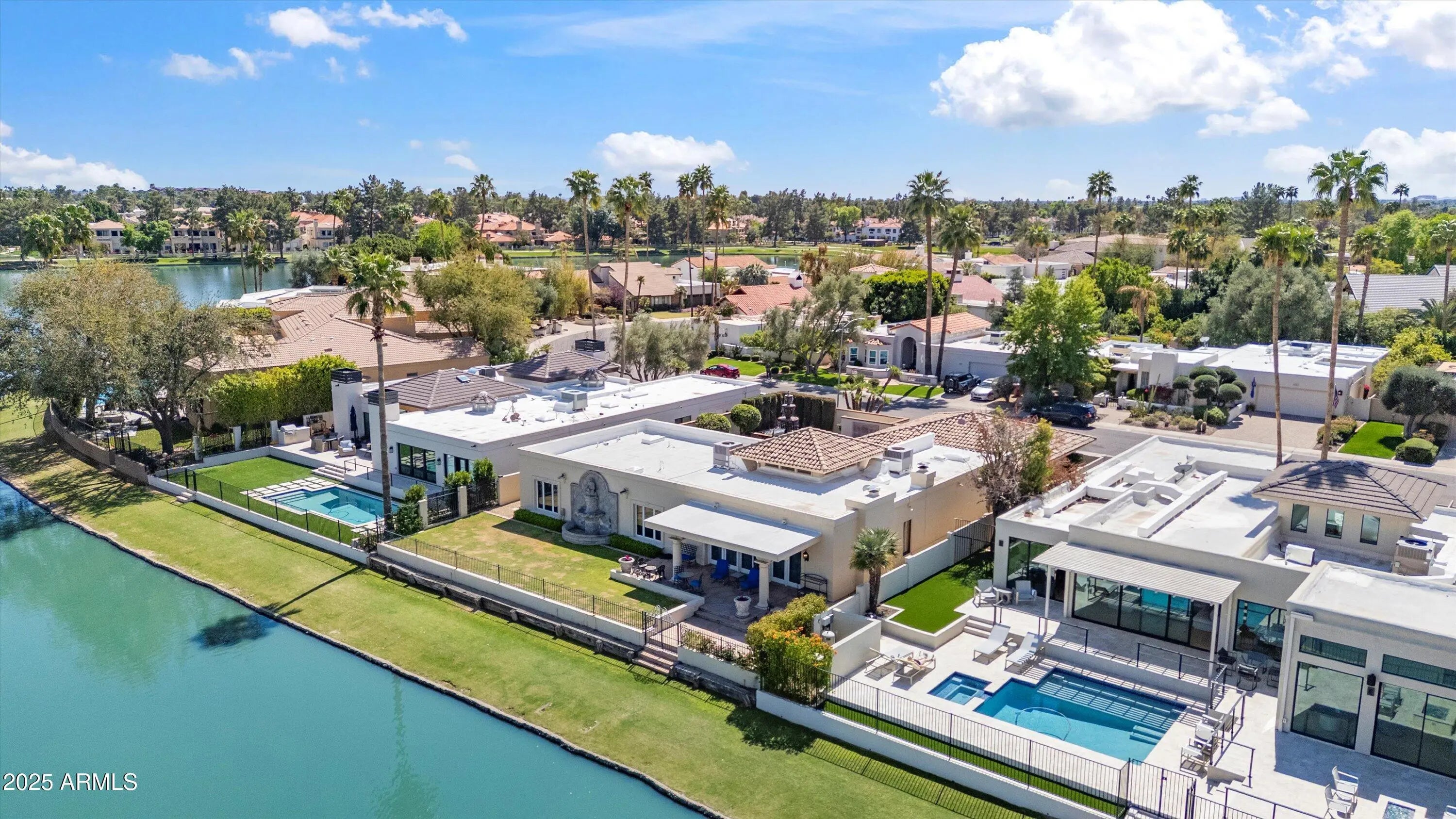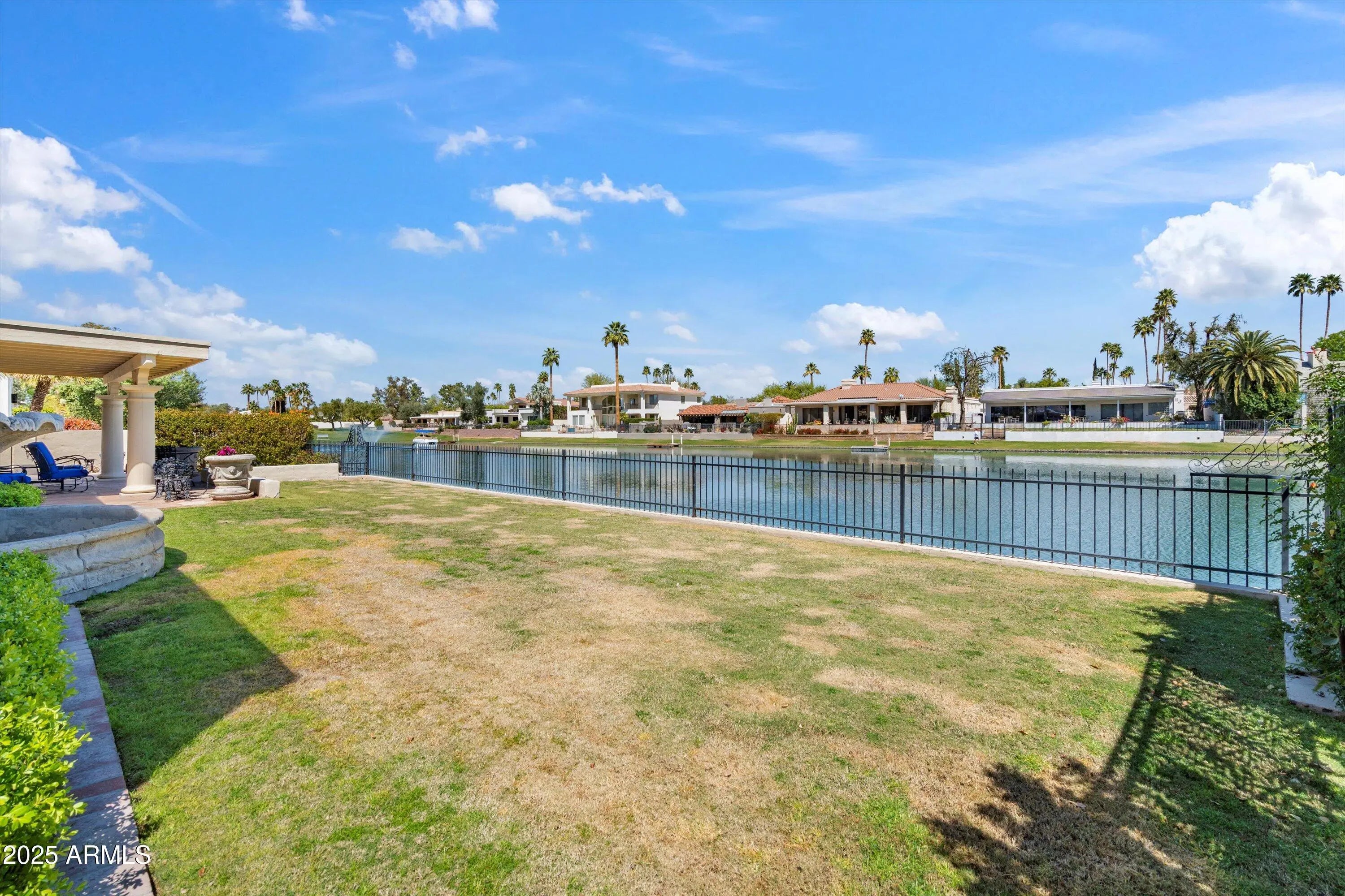 Discover a rare opportunity to own a charming lakefront home in the highly sought-after McCormick Ranch community. This beautifully maintained and well-loved home offers breathtaking waterfront views, serene surroundings, and the perfect blend of privacy and convenience. Enter through the resort like courtyard with a sparkling blue pool and a towering water fountain. Once you step inside you will find a spacious and light-filled interior featuring soaring entryway ceilings with an enormous chandelier, large windows and doors that frame the courtyard and the stunning lake views out the back of the home, and two fireplaces. Boasting two bedrooms + a den that can easily be converted back to a third bedroom, 2.5 bathrooms, and 2,853 square feet of living space, this home offers plenty of room for relaxation and entertaining. Enjoy seamless indoor-outdoor living with a spacious covered patio with direct access to Marguerite Lake perfect for morning coffee or sunset gatherings, and lushly landscaped backyard. The chef's kitchen features blue Bahia granite countertops, stainless steel appliances including a Sub-Zero refrigerator, and custom Cherrywood cabinetry; while the primary suite offers a peaceful retreat with views to the courtyard, a spa-like ensuite bath, and a custom California Closets walk-in closet. Situated in the heart of McCormick Ranch in the highly coveted "Del" streets, this home provides easy access to the greenbelt, walking and biking trails, top-rated schools, premier golf courses, shopping, dining, and entertainment. This property has been lovingly cared for and is ready for its next chapter. Don't miss out on this rare lakefront gem!