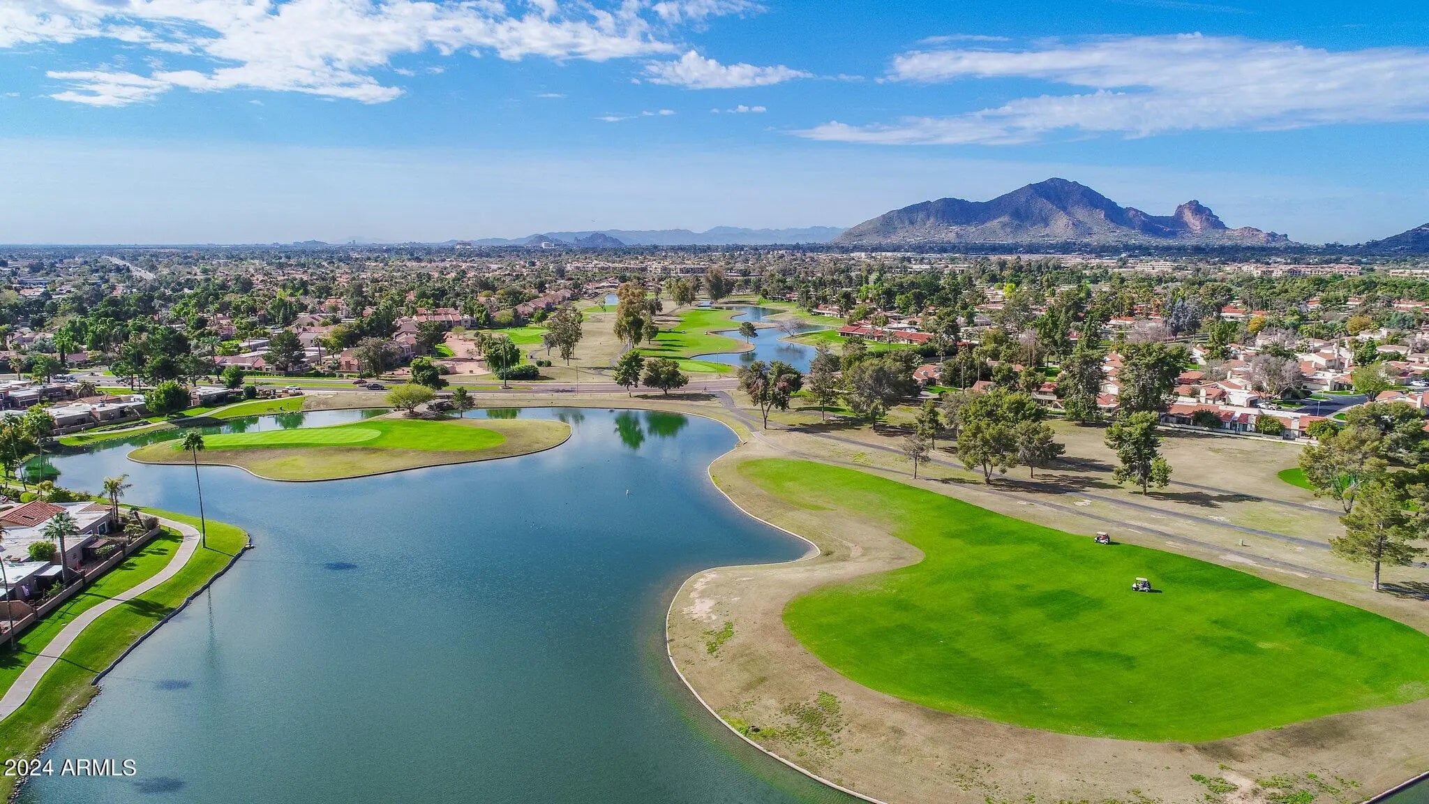 A few steps from club house, workout room, and community pool, which has water views, golf course and Camelback Mountain views. Updated 2 bed 2 bath with all tile floors. Walkable to dining and drug stores. Single month and split months have a premium. 90 day or longer occupancy agreements have a discount. Weekly rates are available.