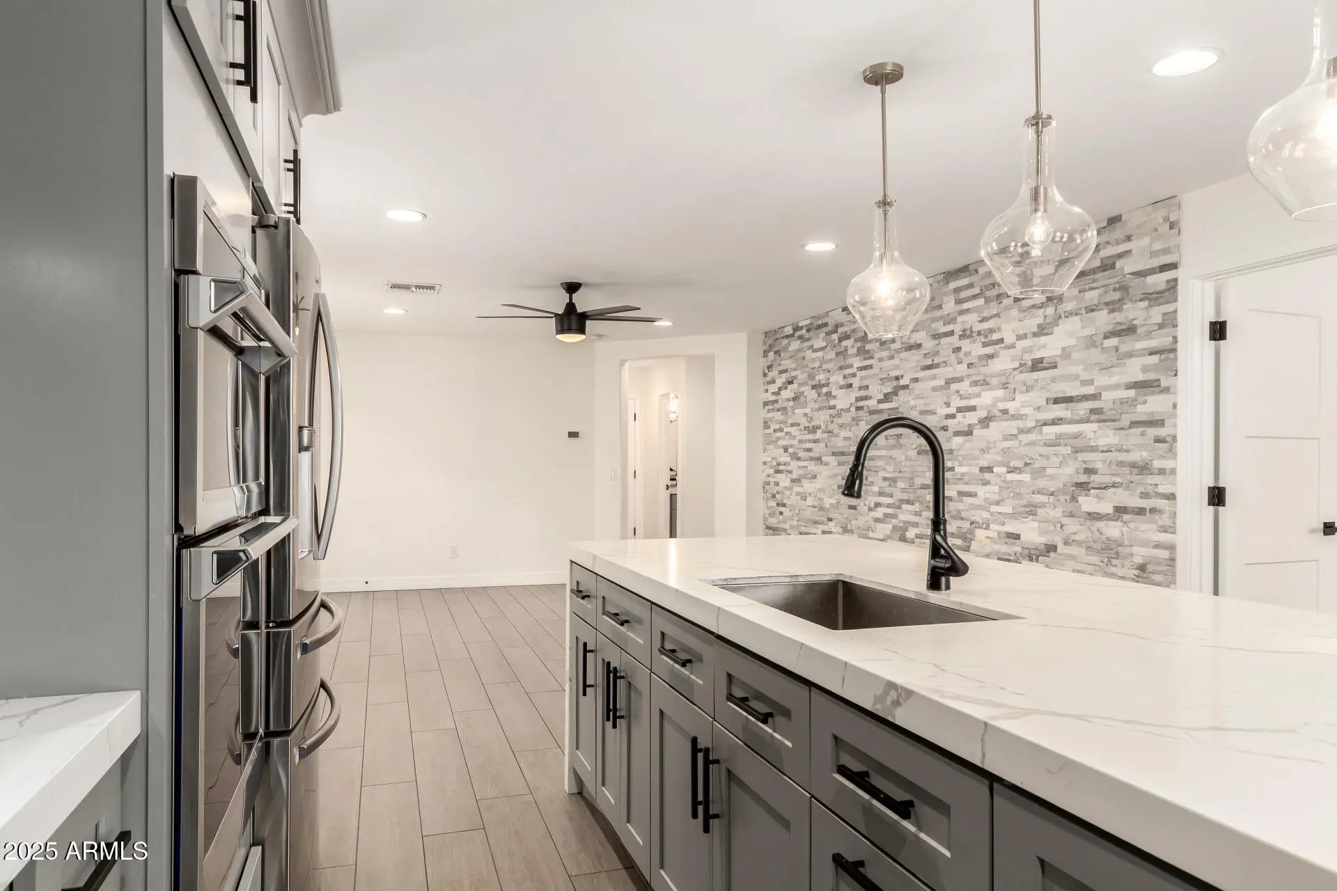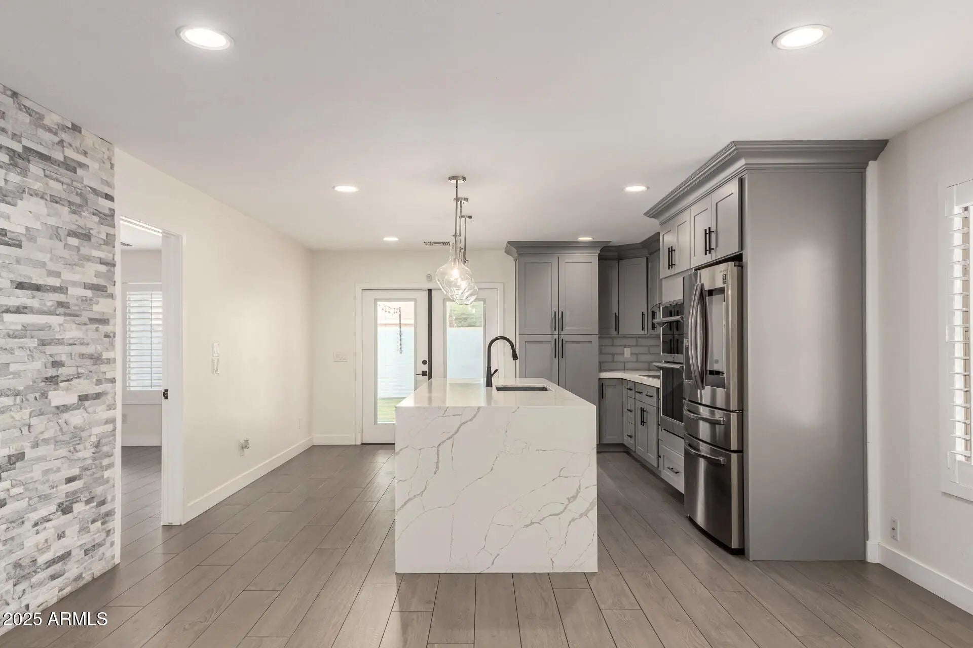 Welcome to this beautifully renovated 3-bedroom, 2-bath home! Renovated in 2021, this stunning home offers a stylish kitchen with custom cabinets, quartz countertops, a spacious island, and stainless steel appliances. Bathrooms feature designer tile and modern finishes, while elegant tile flooring flows throughout. Enjoy accent stone walls in the living room, bathroom, and back porch. The backyard is perfect for entertaining with a large covered patio, travertine tile, and synthetic grass. With a newer HVAC system and fresh interior paint, this move-in-ready home offers comfort, style, and peace of mind. Don't miss it!