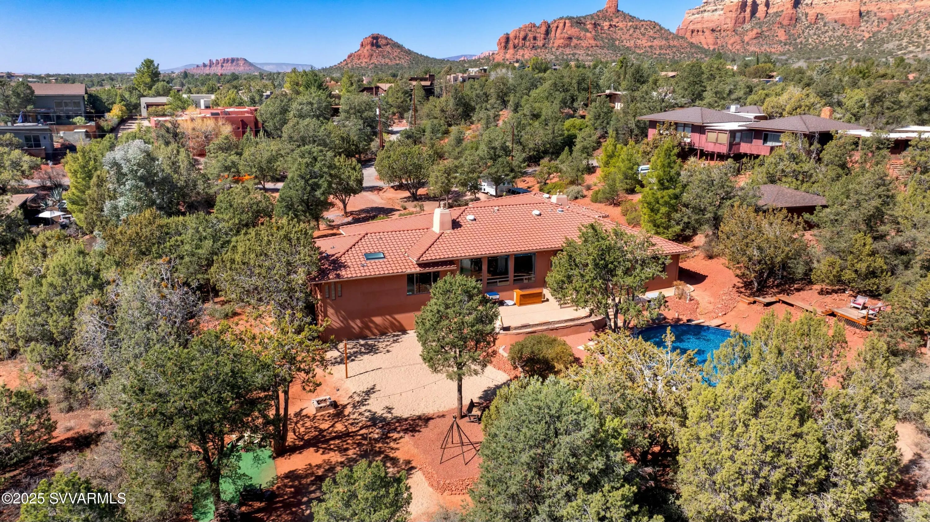 Rare Sedona Retreat - Luxury, Privacy & Prime Location! Discover a truly unique opportunity in the heart of West Sedona! This stunning 3,257 sq. ft. estate features 3 bedrooms, 3 baths, plus a 1-bedroom in-law suite with a separate kitchen and living room, currently set up as a private movie theater. Surrounded by lush, mature trees, this home offers the perfect balance of seclusion and sophistication. Just a short stroll to Sedona's finest shops and restaurants, this property places you in the center of it all while maintaining a serene, resort-like ambiance. Enjoy top-tier amenities, including a sauna, a sparkling pool, and a sand volleyball court—all designed for ultimate relaxation and entertainment. Don't miss out on this rare Sedona gem—schedule your private showing today Experience Sedona like never before - it's not just a home, it's a dream.This exceptional home also offers fantastic potential as an Airbnb, making it a perfect investment opportunity, this one-of -a-kind property offers endless possibilities, but truly a home to fall in love with.. Whether you're seeking a peaceful retreat or a place to share with others, this home is where memories are made and dreams come true !.