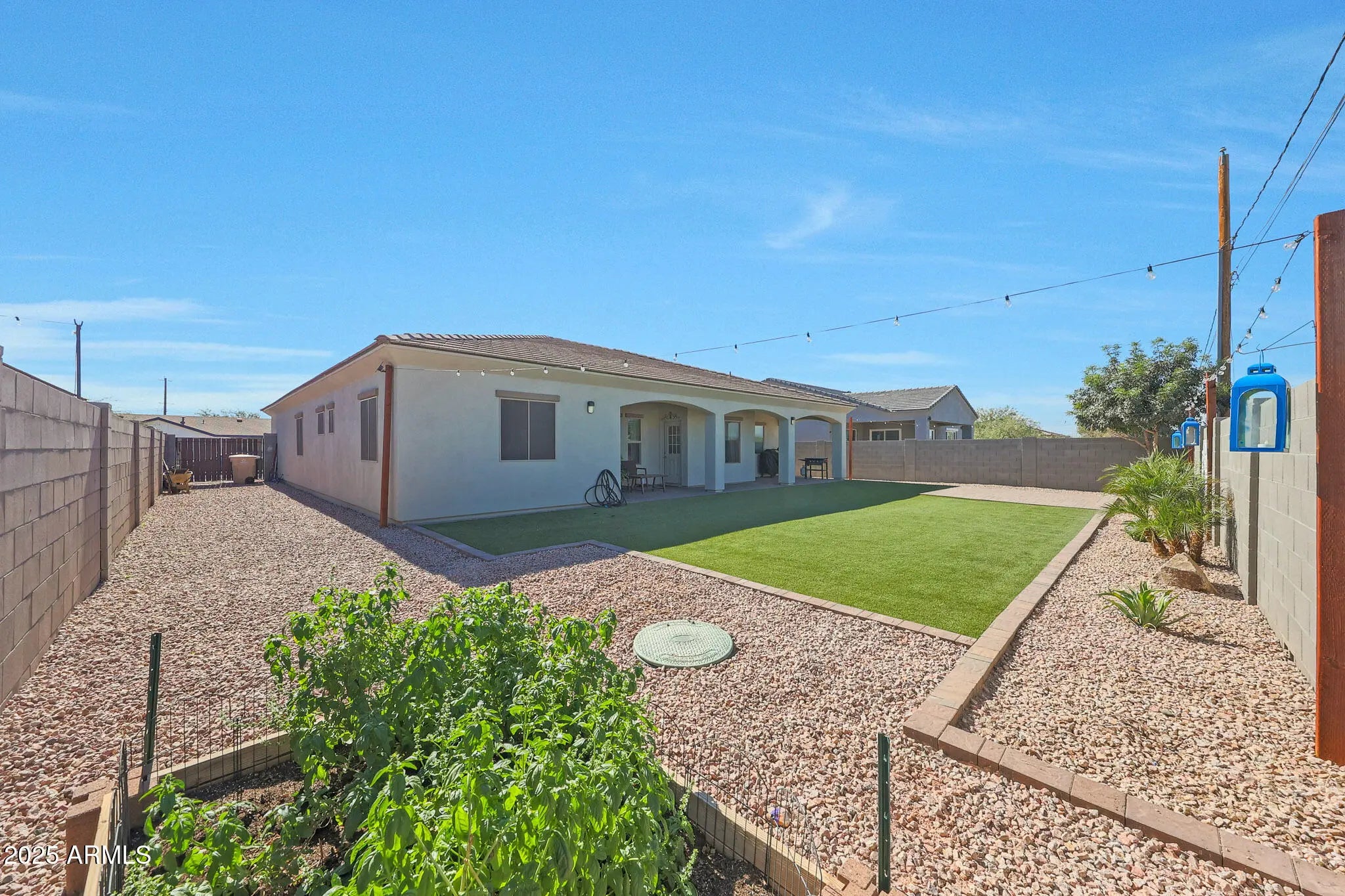 Nearly New Home where style and craftsmanship converge in an exceptional single-level custom home built for comfortable living and gracious entertaining. Step inside to discover an inviting layout enhanced by striking accent walls. The open-concept kitchen is a true showstopper, featuring stunning quartz countertops with an island that inspires culinary creativity and serves as a gathering spot for friends and family. Large Owner Suite with Soaking Tub. 2 BRs connected with Jack N Jill Bath. Plus 3rd bedroom. Experience continues on the large landscaped lot, blending low-maintenance turf with tastefully designed pavers on the patio. Imagine outdoor dinners under the stars, children playing safely on soft green turf, or quiet mornings sipping coffee on the shaded patio. No Homes behind.,