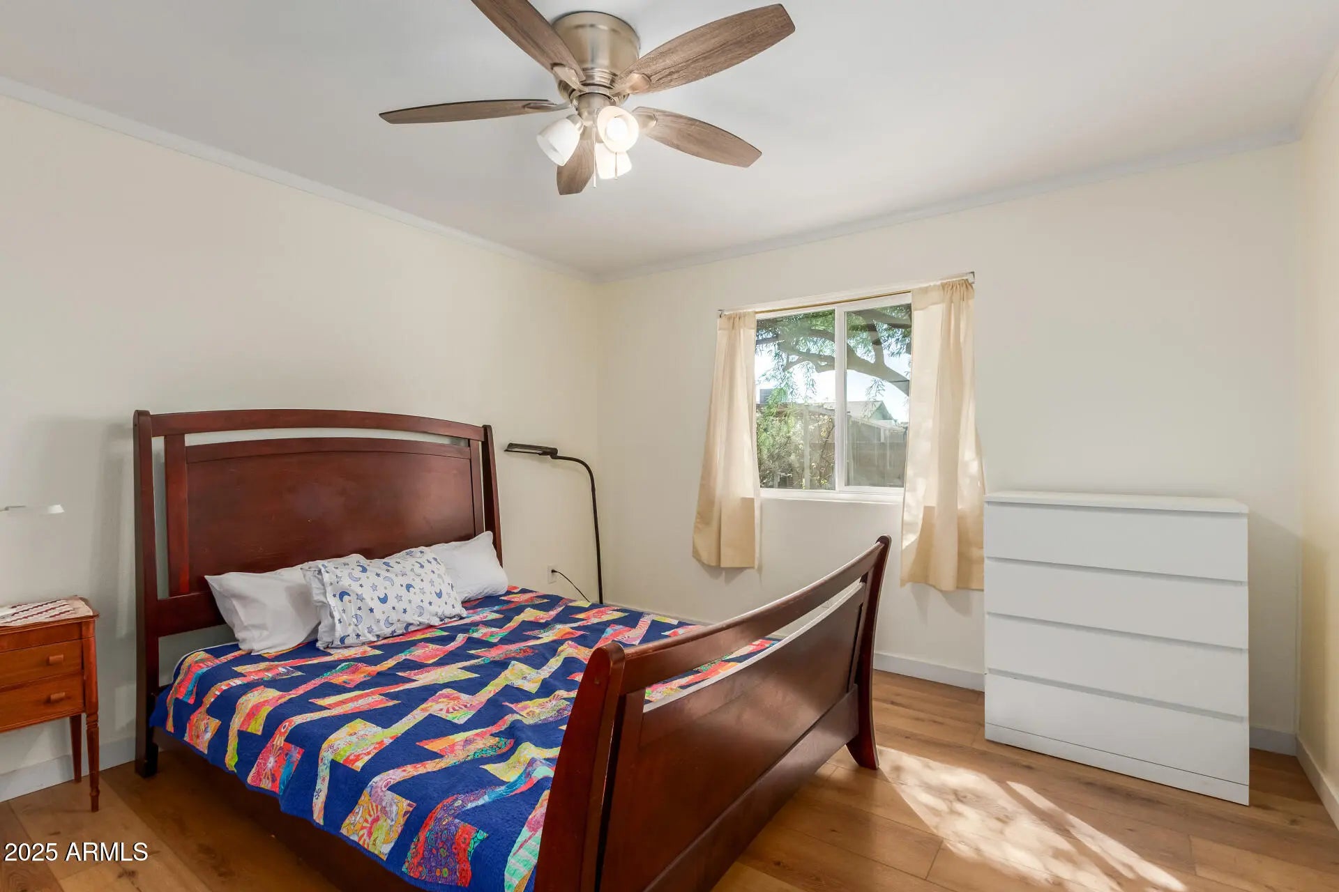 Adorable 3 Bedroom, 2 Bath home in Colonia Coronita! Curb Appeal abounds w/ manicured landscaping and 2-car garage that invite you to take a look inside. Fall in love with the spacious and bright layout, featuring wood-look flooring, arched passageways, and NEW fresh paint throughout! The homey Kitchen boasts recessed lighting, spacious Cabinetry that is freshly painted, ample counter space, and built-in appliances for a seamless cooking experience. Enjoy the Main Bedroom, complete w/closet and private ensuite and Two more Bedrooms for family w/an additional full Bath. The Backyard includes a cozy Covered Patio perfect for weekend BBQ, lush lawn, and plenty of space to gather together. Roof is less than one year old. All of this in the heart of Chandler, close to everything! See it today
