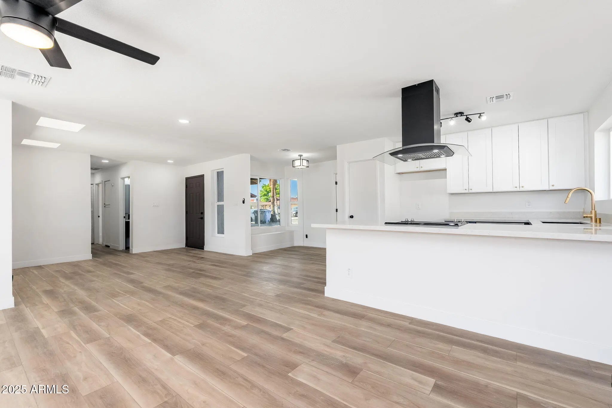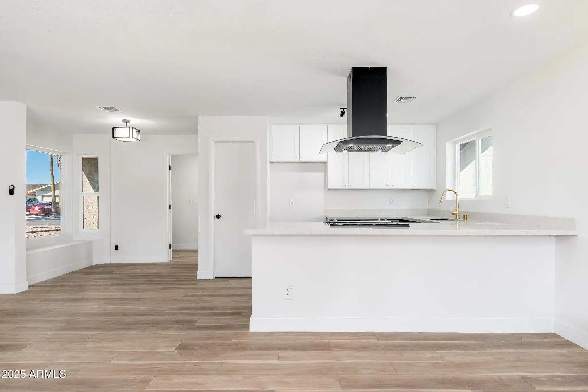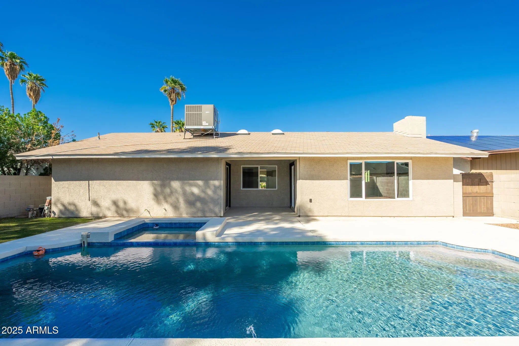 Beautifully remodeled single-story home showcasing high-end finishes, contemporary design, and a sparkling pool and spa for the perfect blend of style and relaxation. This home features BRAND NEW APPLIANCES, CABINETS, FLOORING AND WINDOWS for a truly move-in-ready experience. The kitchen offers stainless steel appliances, shaker cabinets, quartz countertops, and a breakfast bar. Enjoy vinyl wood flooring and upgraded carpet that create a bright, open flow throughout the home. The bathrooms highlight elegant upgrades including high-end shower systems, custom vanities, framed mirrors, and designer tile niches. Step outside to a covered patio that overlooks the sparkling pool and spa—perfect for relaxing or entertaining.