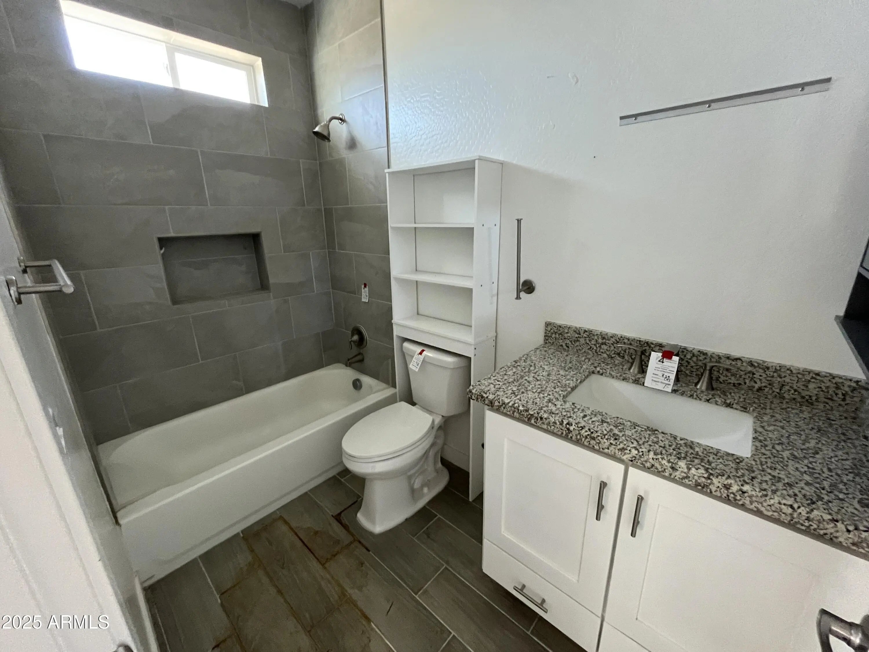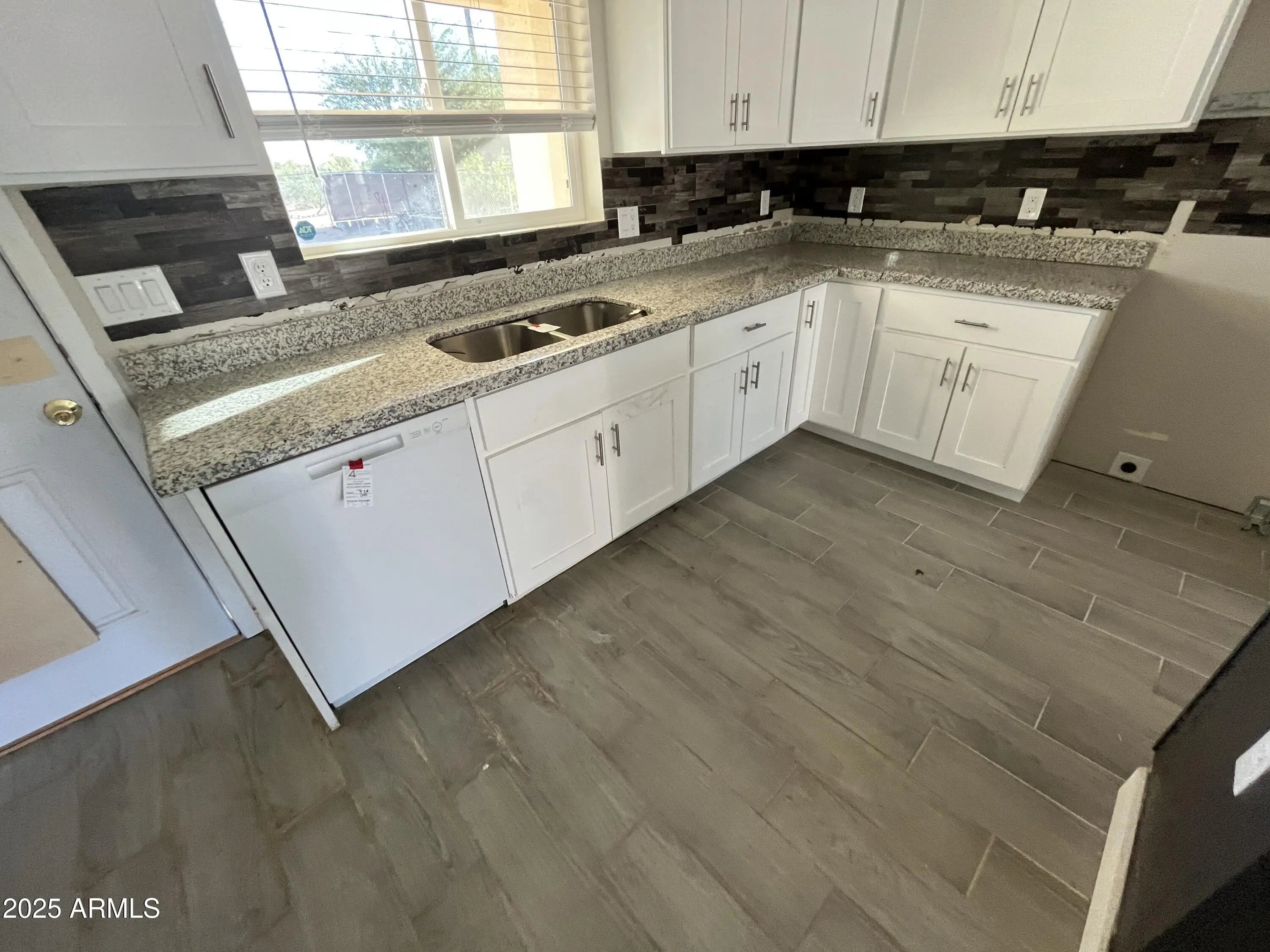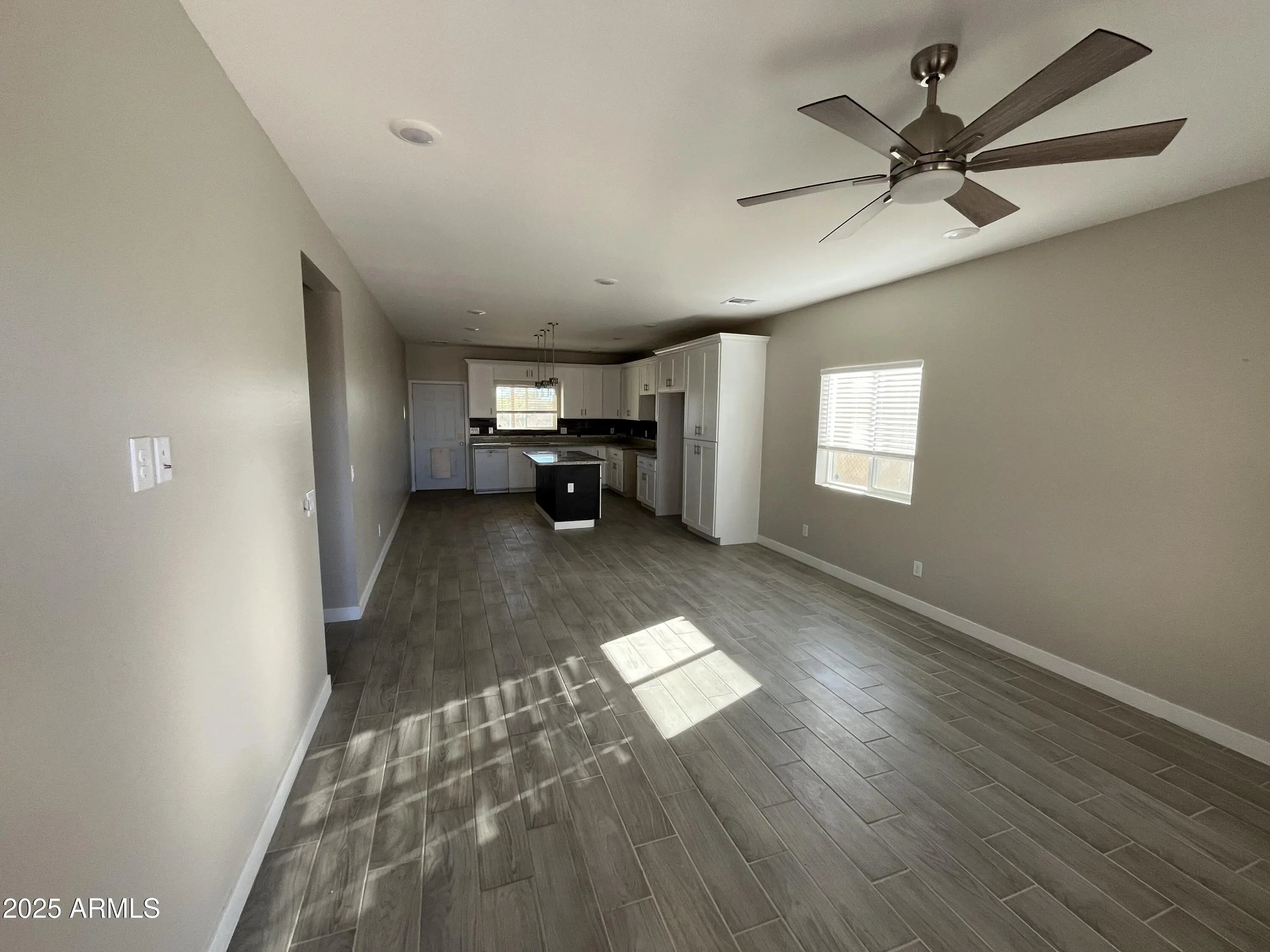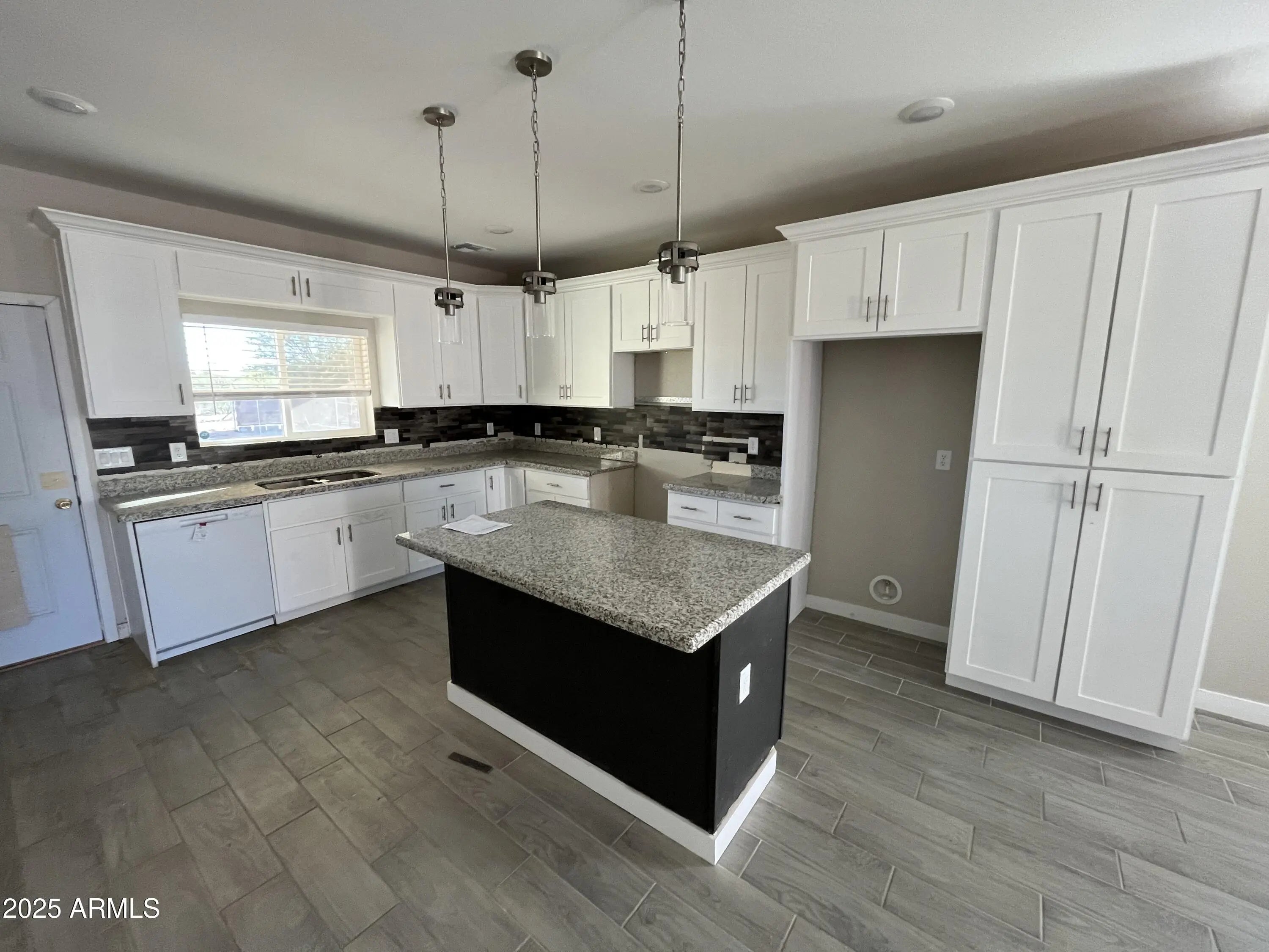 3 bedroom 2 bath home featuring tile plank wood flooring throughout living room, kitchen, hallways , bedroom, and bathrooms. Kitchen has granite counter tops, white cabinets with kitchen island. Two tone interior paint. 2 car garage.