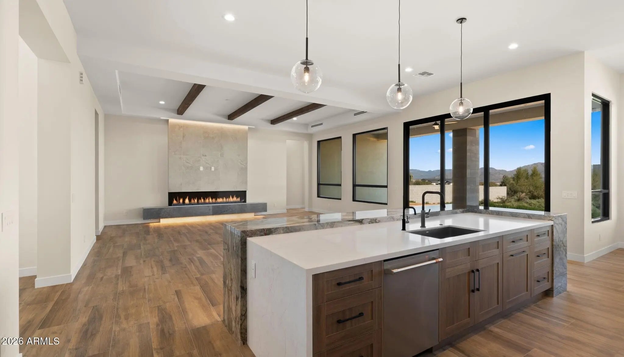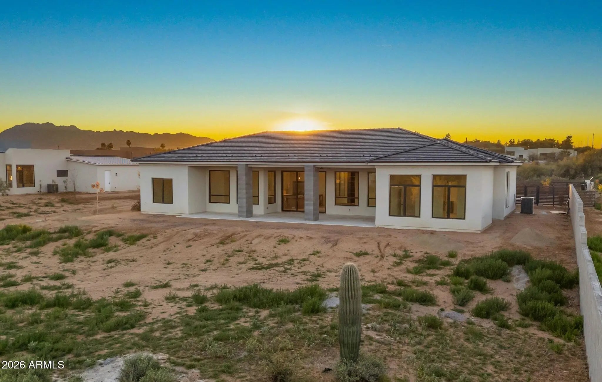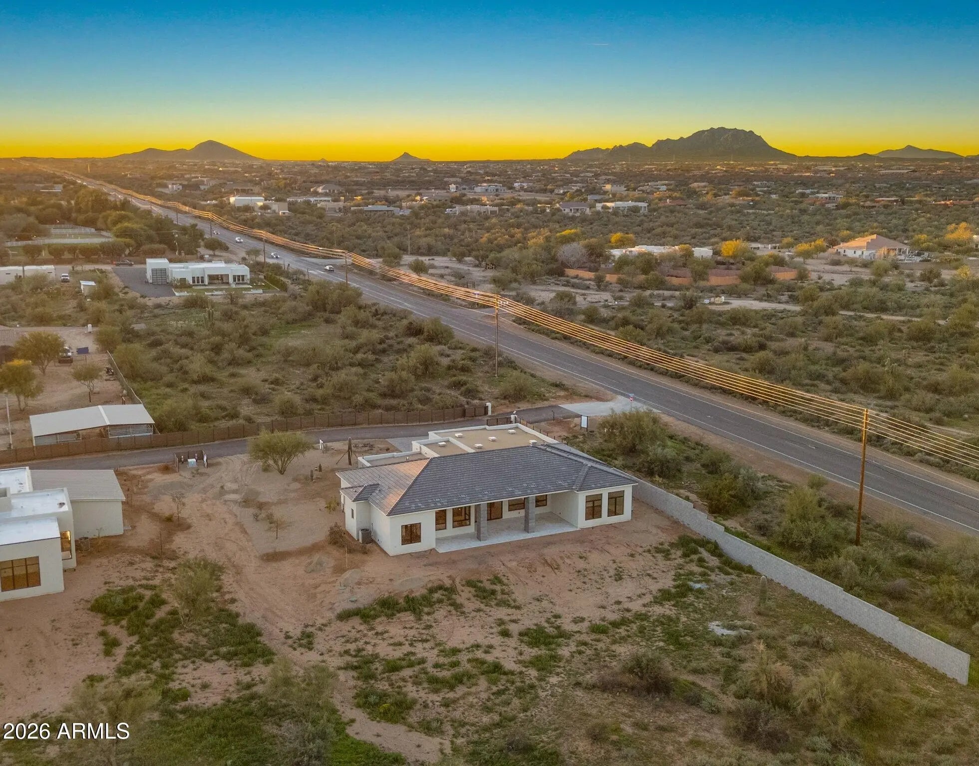 This brand-new modern home sits on 1.28+ acres, offering the perfect blend of luxury and comfort. Step into a light-filled great room with a wall of windows overlooking panoramic mountain views. The chefs kitchen is a showstopper with a huge island, stainless steel appliances, and a separate butlers kitchen for prep and storage. The open layout flows effortlessly, ideal for entertaining or relaxing in comfort. The modern floor to ceiling fireplace feature, centers the great room making the space feel grand and open. The primary suit is private retreat with a spa-like bathroom with large walk-in shower, two closets, and large soaking tub. Every detail has been carefully picked, bringing clean lines and soft finishes together for a timeless look. This property also features a variable speed AC system. Located on a paved road, shared well, with plenty of room to build the backyard of your dreams. Located near Tonto National Forest, Scottsdale Preserve, and McDowell Mountain Regional Park, youll have hiking, biking, and exploring just minutes away. Plus, Needle Rock recreation area, golf courses, and dining spots are all close by. Other floorplans available.