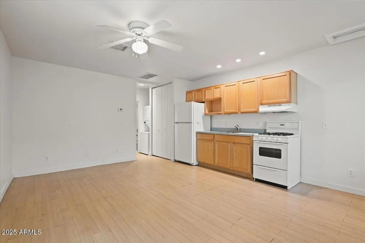 Charming Duplex with private yard for rent in the historic Garfield Neighborhood. This duplex is the perfect blend of modern meets historic. Hardwood Floors, retro countertops and an abundance of natural lighting. The bathroom has been completely remodeled with subway tiling and modern appliances. Hallway features a huge built in shelving unit and stackable washer/dryer. Bedroom has an attached private yard. Location is great! 5 Minutes from the first Friday art walk and Roosevelt Row. Close to Garfield Community Garden, Gallo Blanco, Cheeba Hut, Sidewinder, Welcome Diner, A Flour Shop, Rito's Mexican, and Buena Vida Bodega.