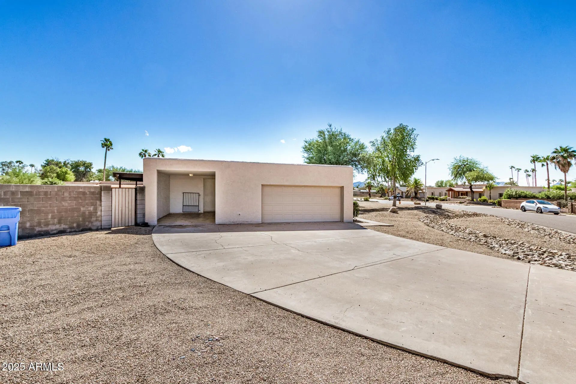 Gorgeous home on over a half acre lot in desireable North Scottsdale! Fireplace in family room, granite counter tops in kitchen, new stove, new carpet in hallway and bedrooms, tile and vinyl plank elsewhere. Beautiful primary bath featuring a huge walk in tiled shower with dual shower heads/controls and large amounts of storage, new quartz counters, cabinets. Guest bath has new tile shower, cabinets, quartz counters, lighting and mirrors. Primary bedroom features double closets, sitting area. 2 car garage and separate-attached extra tall carport and a large covered back patio, and large exterior storage room provide tons of outdoor space. New block wall, huge lot now has gravel front and back, Easy access to 101 and 51 freeway, Westworld, Scottsdale Airport, Scottsdale Quarter, etc