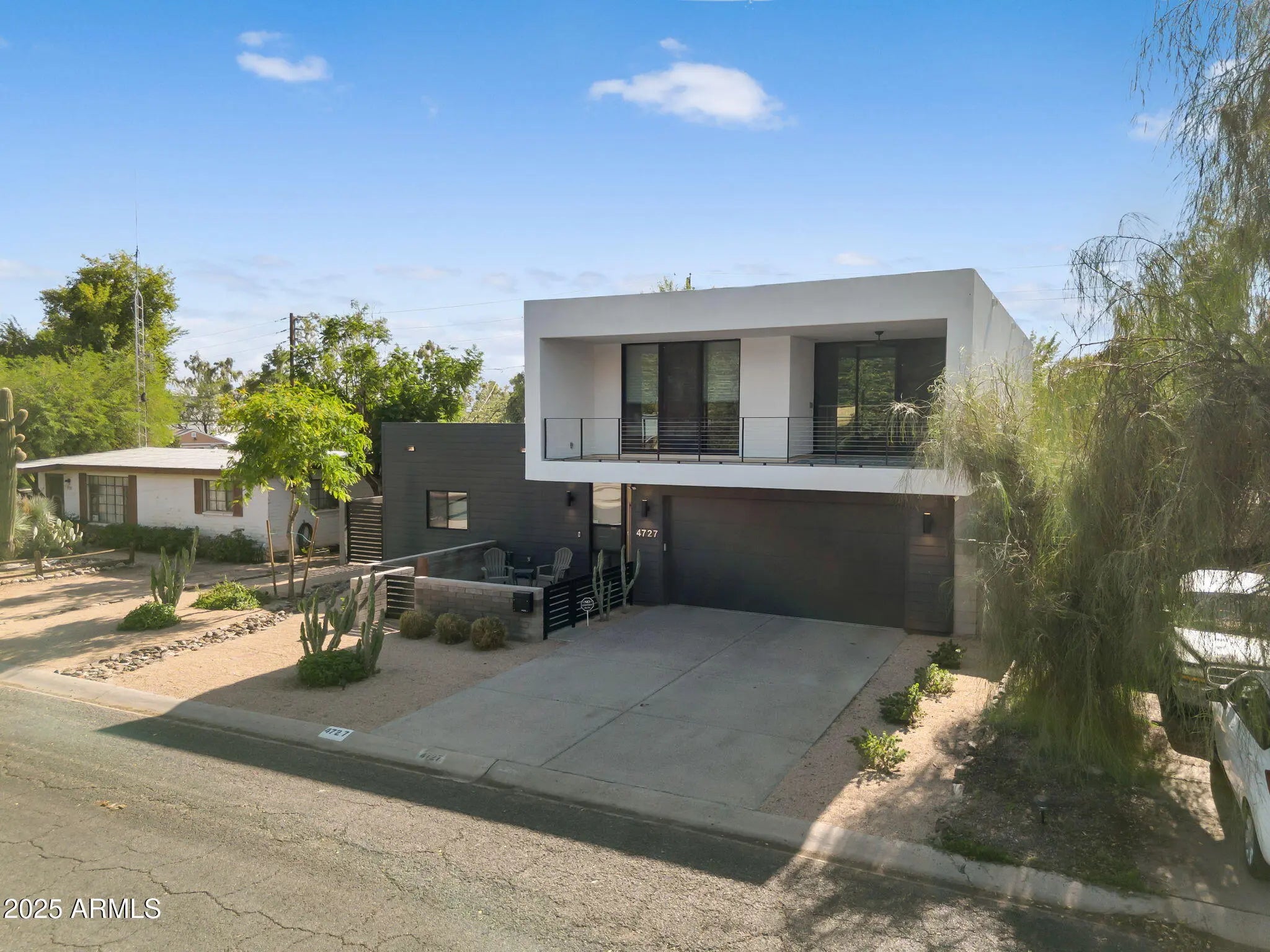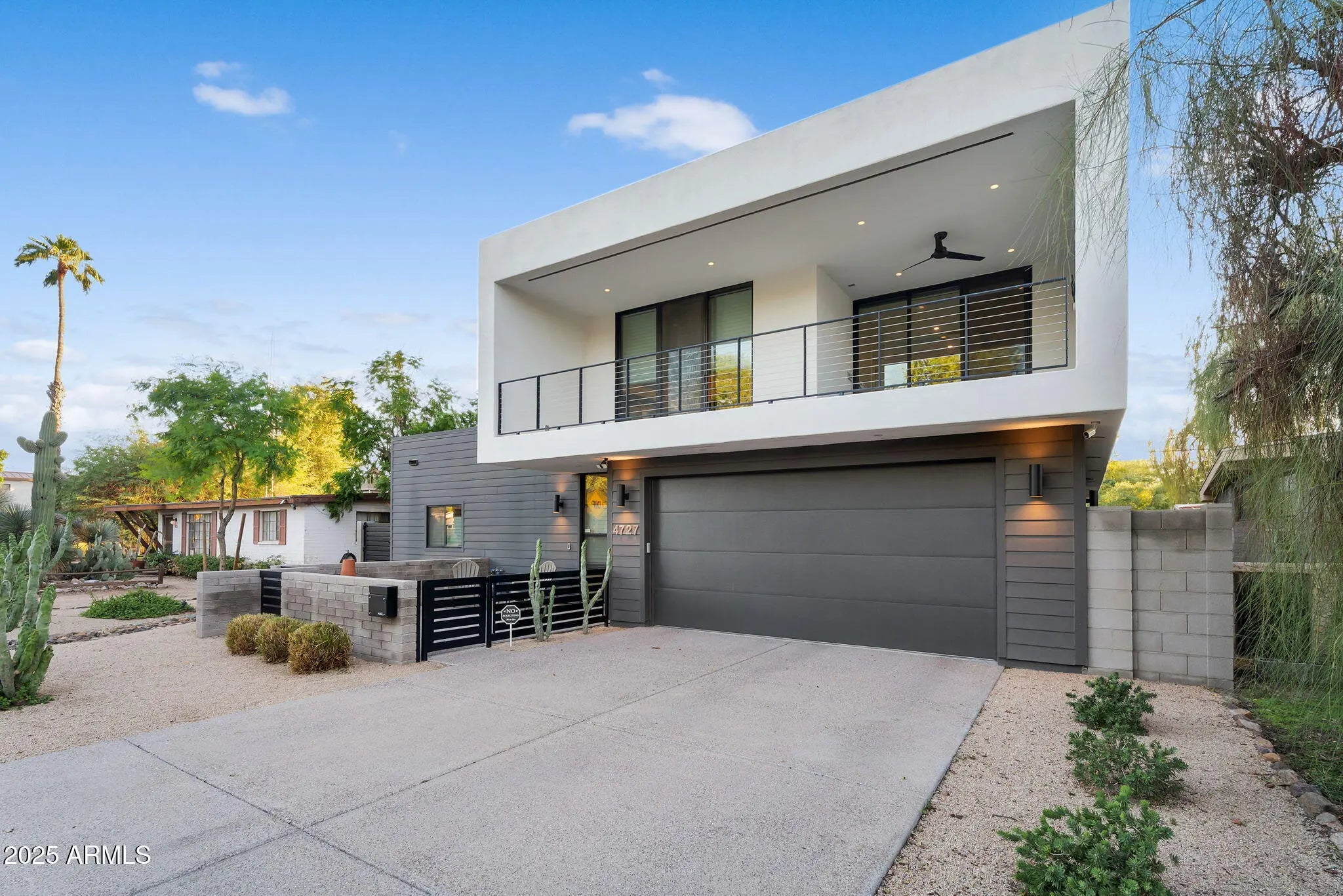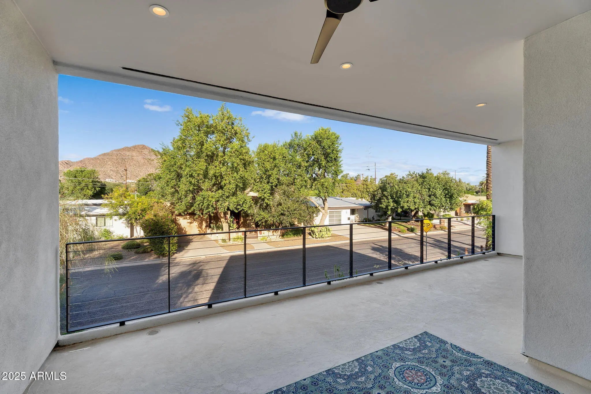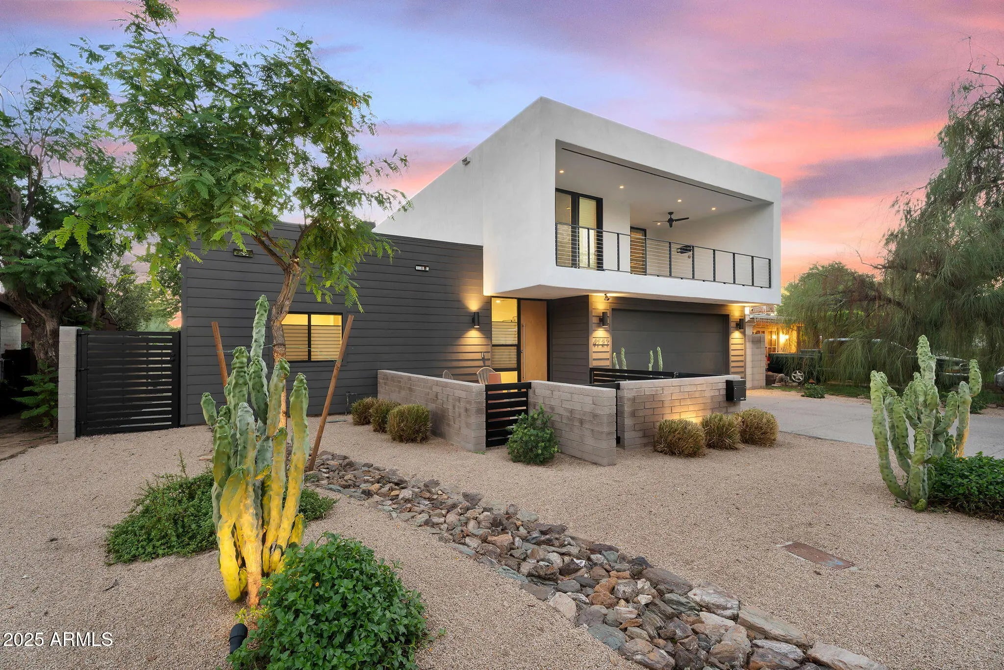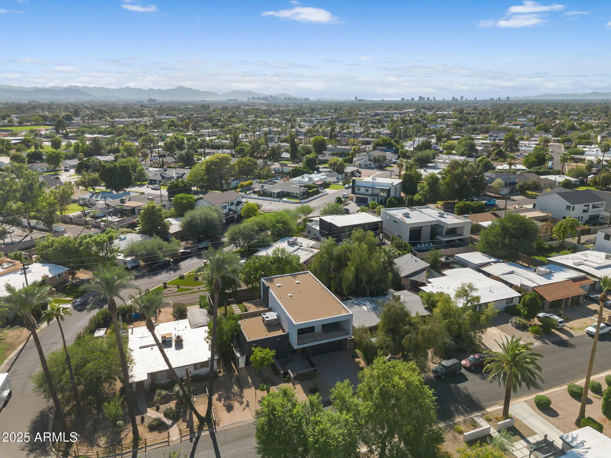 Stunning and rare view of Camelback from full-length front balcony of this state-of-the-art tech forward 2021 Arcadia rebuild. Aesthetic + Function + Comfort. Custom architecture utilizes the orientation of the lot to create maximum shade in the outdoor spaces, & design elements like multiple skylights to provide ample natural light inside. Every detail was meticulously chosen to suit the space and support energy efficiency. Soaring ceilings, custom staircase, gourmet kitchen with Bosch smart appliances, motorized blinds, tankless gas water heater, Caesarstone counters, soaking tub, stackable sliding glass doors, abundant lighting, canal adjacent. This home showcases quality construction, top of the line products, and optimal use of space to offer a unique luxury Arcadia living experience " 2,326 sq ft / 6,000 sq ft lot fully rebuilt in 2021 " 3 bedrooms / 2 bathrooms with split floor plan " Custom wood-block staircase, vaulted ceilings, exposed brick accents, and skylights in great room and primary bath " Gourmet quartz kitchen with Bosch smart appliances, oversized island, and custom cabinetry (incl. roll-up "garage-door" cabinet) Upstairs loft + primary suite open to full-length balcony with Camelback Mountain views " Primary suite features two walk-in closets and spa-style bath with quartz counters, walk-in shower, dual vanities, and bidet toilet " Downstairs: two bedrooms + oversized soaking tub bath; one bedroom with private patio access " Outdoor living: covered patio with gas fireplace, multiple shaded patios, private backyard with lawn, trees, and 6' privacy wall Smart features: recessed dimmable lighting, motorized blinds, Wi-Fi fans, Ring alarm + wiring for cameras, Ethernet/TV jacks in every room, centralized fiber hub " Dual industrial HVAC, tankless water heater, whole-home filtration " 2-car attached garage with smart opener, and Ethernet port Arcadia location walkable to restaurants, shops, grocery; minutes to Scottsdale, Phoenix, Camelback Mountain trails, and Arcadia High / SUSD schools