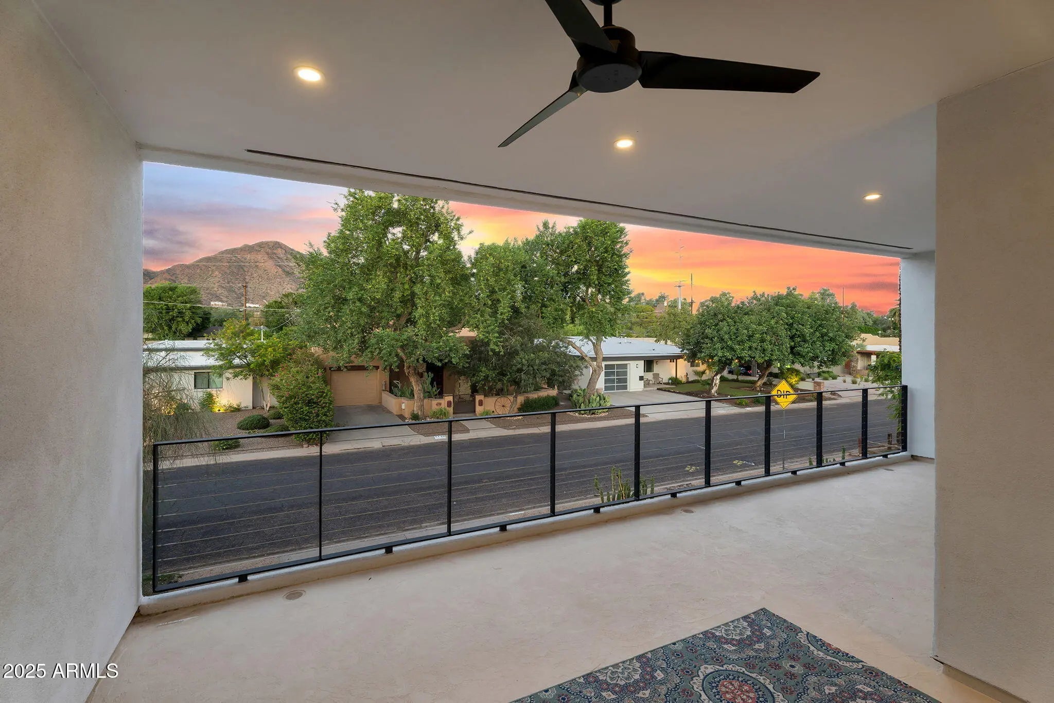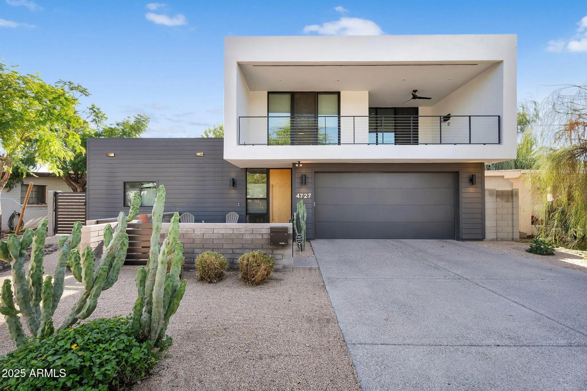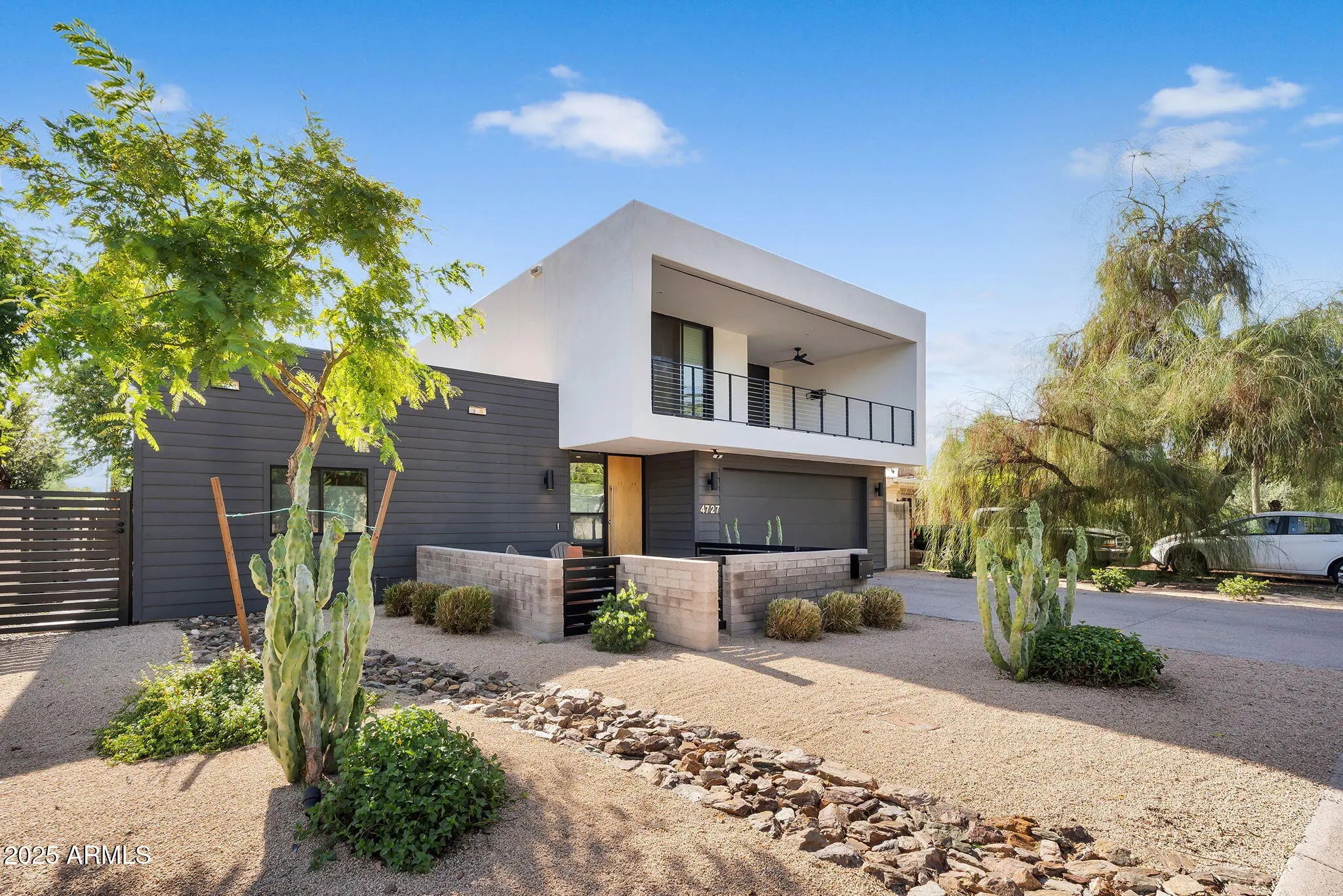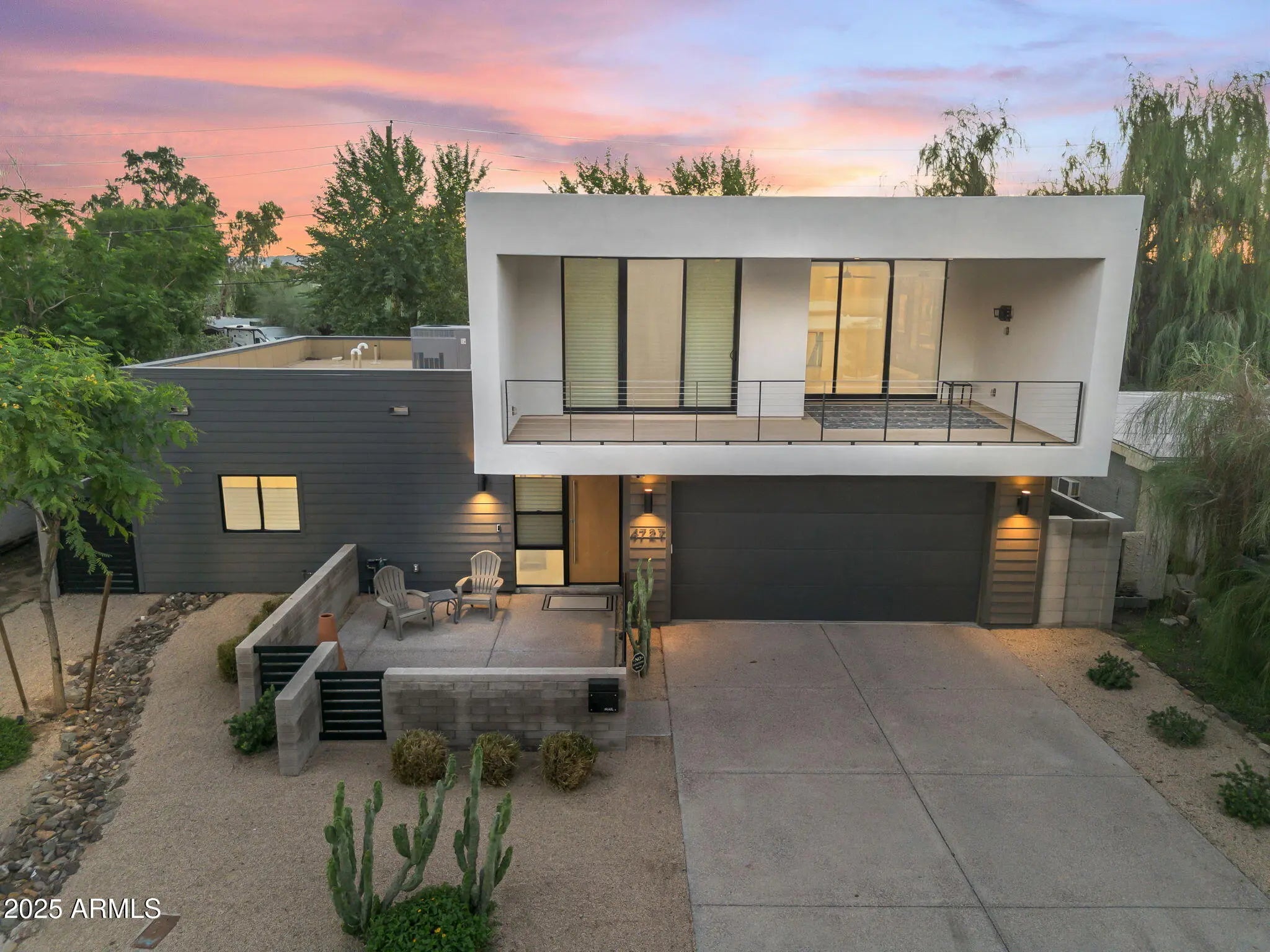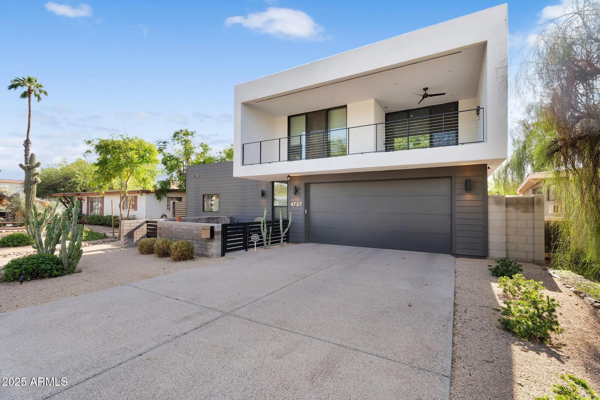 Stunning and rare view of Camelback from full-length front balcony of this state-of-the-art tech forward 2021 Arcadia rebuild. Aesthetic + Function + Comfort. Custom architecture utilizes the orientation of the lot to create maximum shade in the outdoor spaces, & design elements like multiple skylights to provide ample natural light inside. Every detail was meticulously chosen to suit the space and support energy efficiency. Soaring ceilings, custom staircase, gourmet kitchen with Bosch smart appliances, motorized blinds, tankless gas water heater, Caesarstone counters, soaking tub, stackable sliding glass doors, abundant lighting, canal adjacent. This home showcases quality construction, top of the line products, and optimal use of space to offer a unique luxury Arcadia living experience " 2,326 sq ft / 6,000 sq ft lot fully rebuilt in 2021 " 3 bedrooms / 2 bathrooms with split floor plan " Custom wood-block staircase, vaulted ceilings, exposed brick accents, and skylights in great room and primary bath " Gourmet quartz kitchen with Bosch smart appliances, oversized island, and custom cabinetry (incl. roll-up "garage-door" cabinet) Upstairs loft + primary suite open to full-length balcony with Camelback Mountain views " Primary suite features two walk-in closets and spa-style bath with quartz counters, walk-in shower, dual vanities, and bidet toilet " Downstairs: two bedrooms + oversized soaking tub bath; one bedroom with private patio access " Outdoor living: covered patio with gas fireplace, multiple shaded patios, private backyard with lawn, trees, and 6' privacy wall Smart features: recessed dimmable lighting, motorized blinds, Wi-Fi fans, Ring alarm + wiring for cameras, Ethernet/TV jacks in every room, centralized fiber hub " Dual industrial HVAC, tankless water heater, whole-home filtration " 2-car attached garage with smart opener, and Ethernet port Arcadia location walkable to restaurants, shops, grocery; minutes to Scottsdale, Phoenix, Camelback Mountain trails, and Arcadia High / SUSD schools