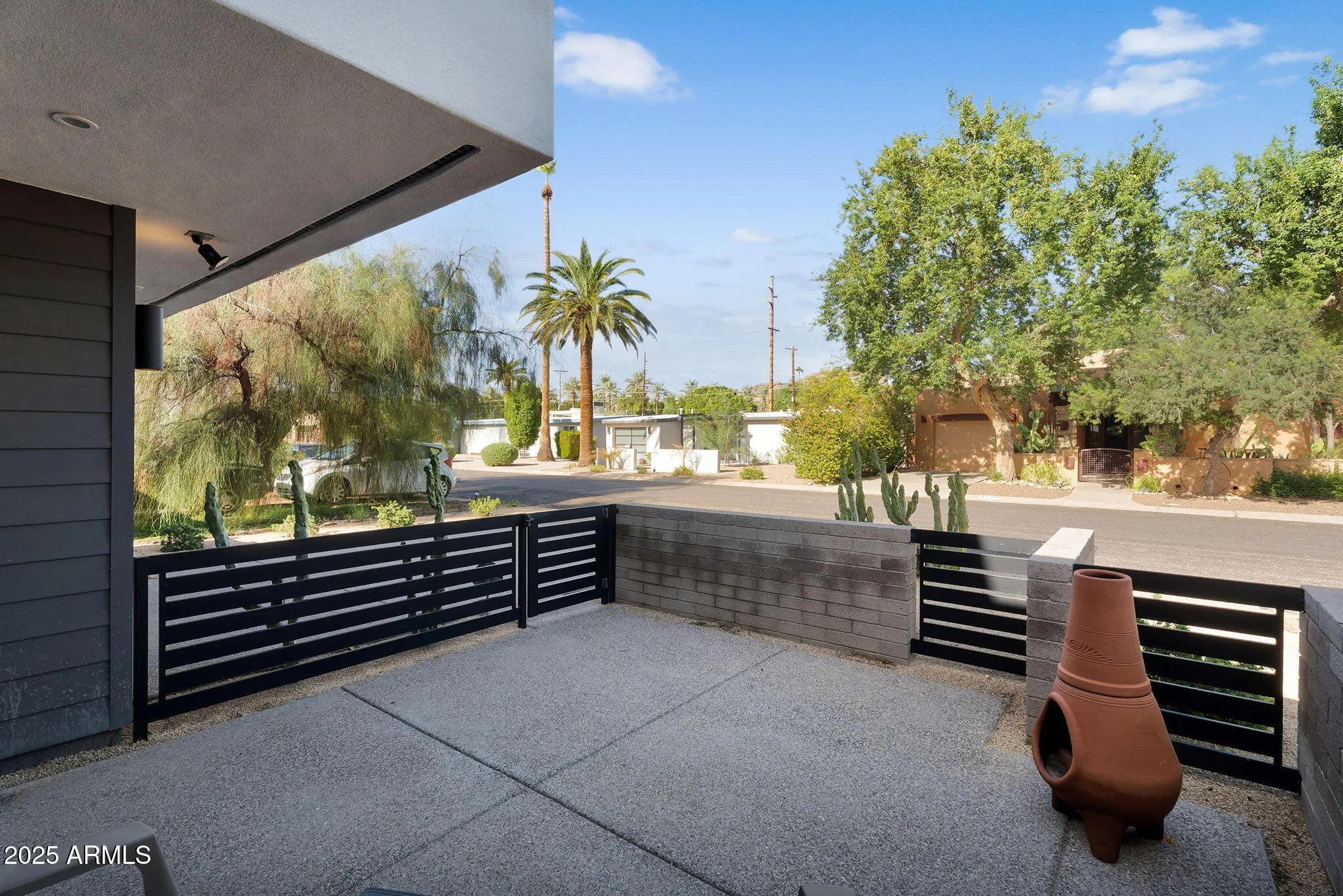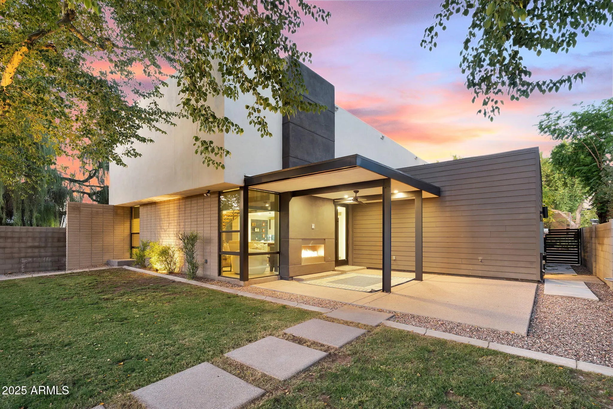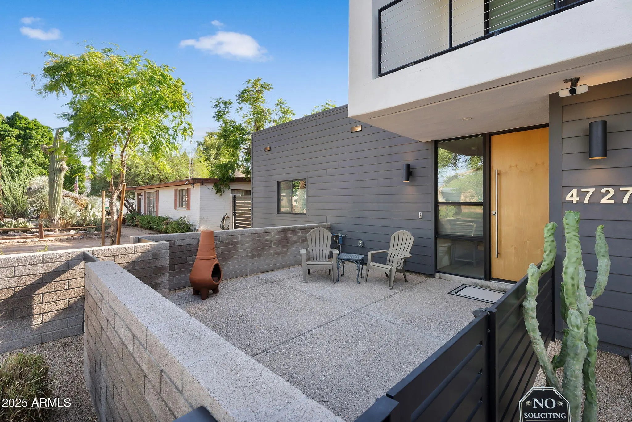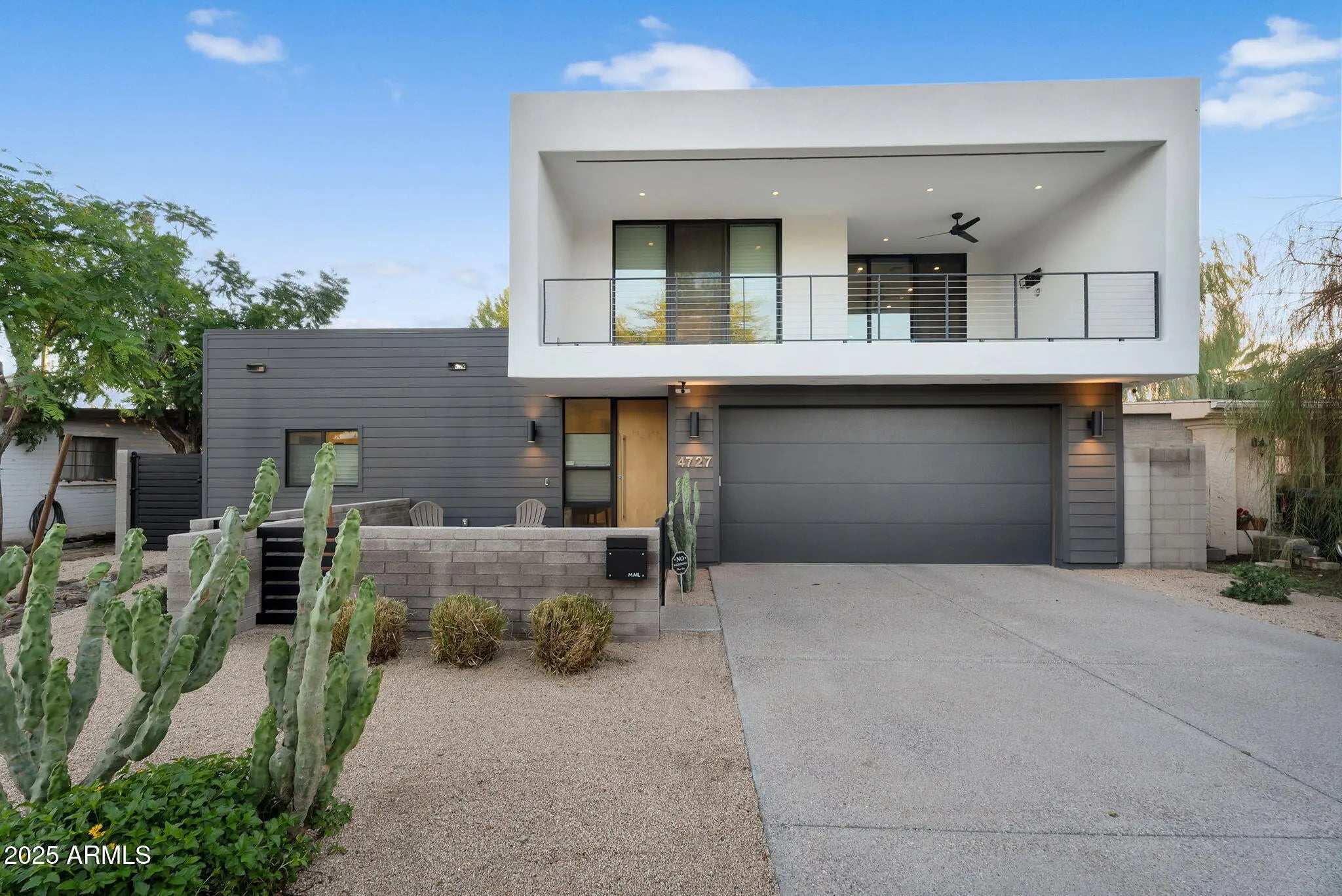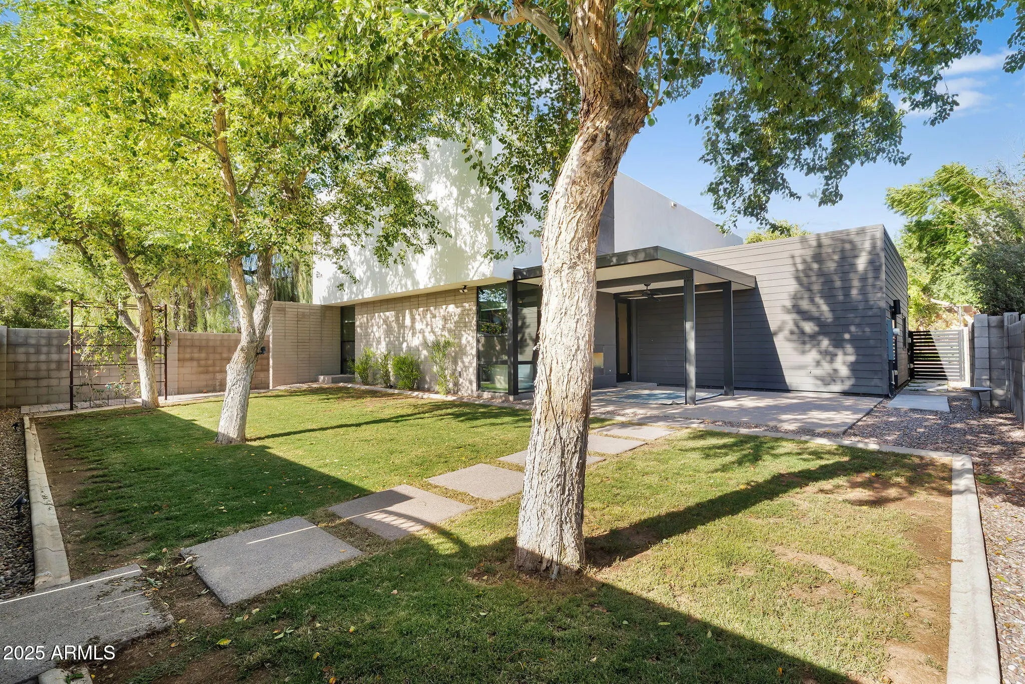 Stunning and rare view of Camelback from full-length front balcony of this state-of-the-art tech forward 2021 Arcadia rebuild. Aesthetic + Function + Comfort. Custom architecture utilizes the orientation of the lot to create maximum shade in the outdoor spaces, & design elements like multiple skylights to provide ample natural light inside. Every detail was meticulously chosen to suit the space and support energy efficiency. Soaring ceilings, custom staircase, gourmet kitchen with Bosch smart appliances, motorized blinds, tankless gas water heater, Caesarstone counters, soaking tub, stackable sliding glass doors, abundant lighting, canal adjacent. This home showcases quality construction, top of the line products, and optimal use of space to offer a unique luxury Arcadia living experience " 2,326 sq ft / 6,000 sq ft lot fully rebuilt in 2021 " 3 bedrooms / 2 bathrooms with split floor plan " Custom wood-block staircase, vaulted ceilings, exposed brick accents, and skylights in great room and primary bath " Gourmet quartz kitchen with Bosch smart appliances, oversized island, and custom cabinetry (incl. roll-up "garage-door" cabinet) Upstairs loft + primary suite open to full-length balcony with Camelback Mountain views " Primary suite features two walk-in closets and spa-style bath with quartz counters, walk-in shower, dual vanities, and bidet toilet " Downstairs: two bedrooms + oversized soaking tub bath; one bedroom with private patio access " Outdoor living: covered patio with gas fireplace, multiple shaded patios, private backyard with lawn, trees, and 6' privacy wall Smart features: recessed dimmable lighting, motorized blinds, Wi-Fi fans, Ring alarm + wiring for cameras, Ethernet/TV jacks in every room, centralized fiber hub " Dual industrial HVAC, tankless water heater, whole-home filtration " 2-car attached garage with smart opener, and Ethernet port Arcadia location walkable to restaurants, shops, grocery; minutes to Scottsdale, Phoenix, Camelback Mountain trails, and Arcadia High / SUSD schools