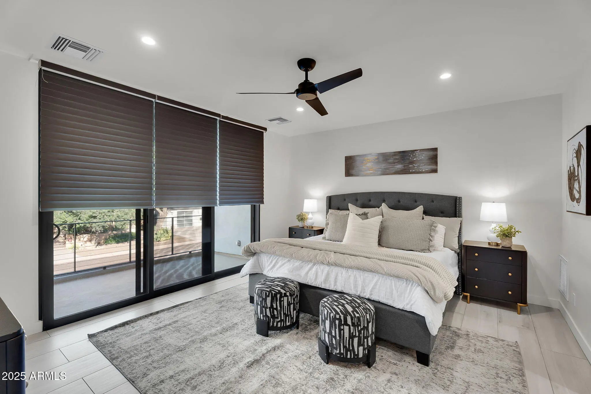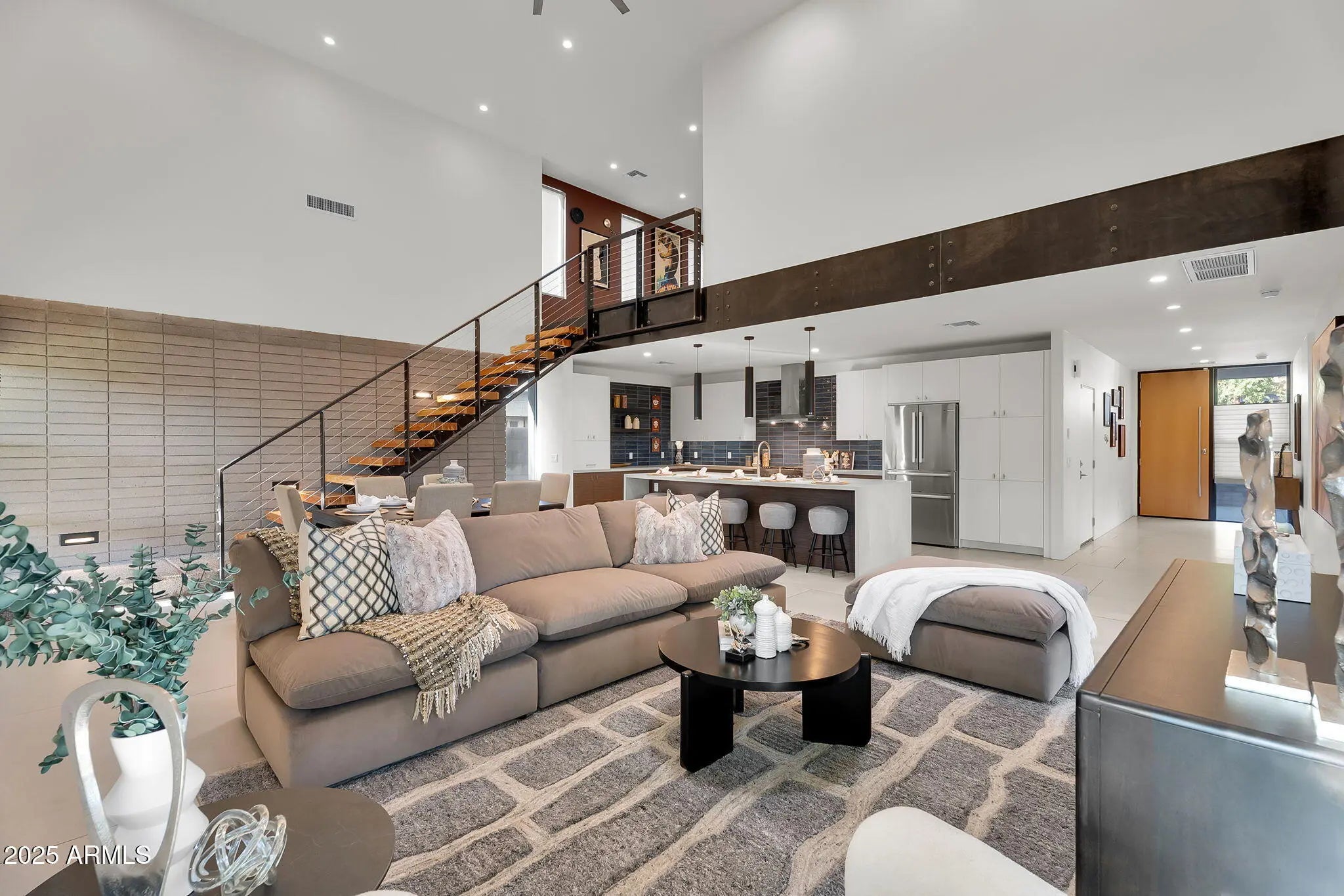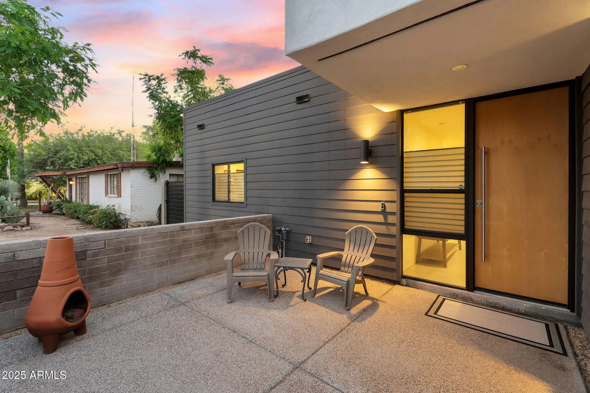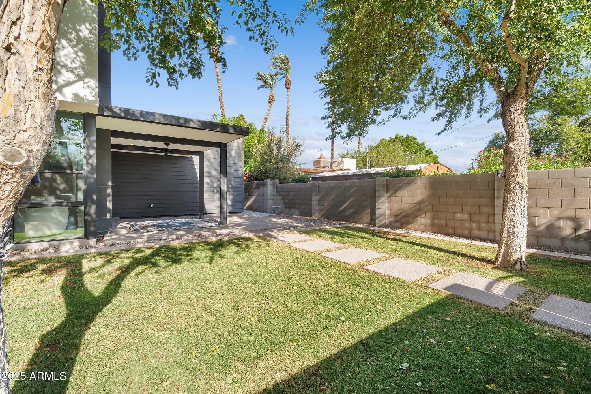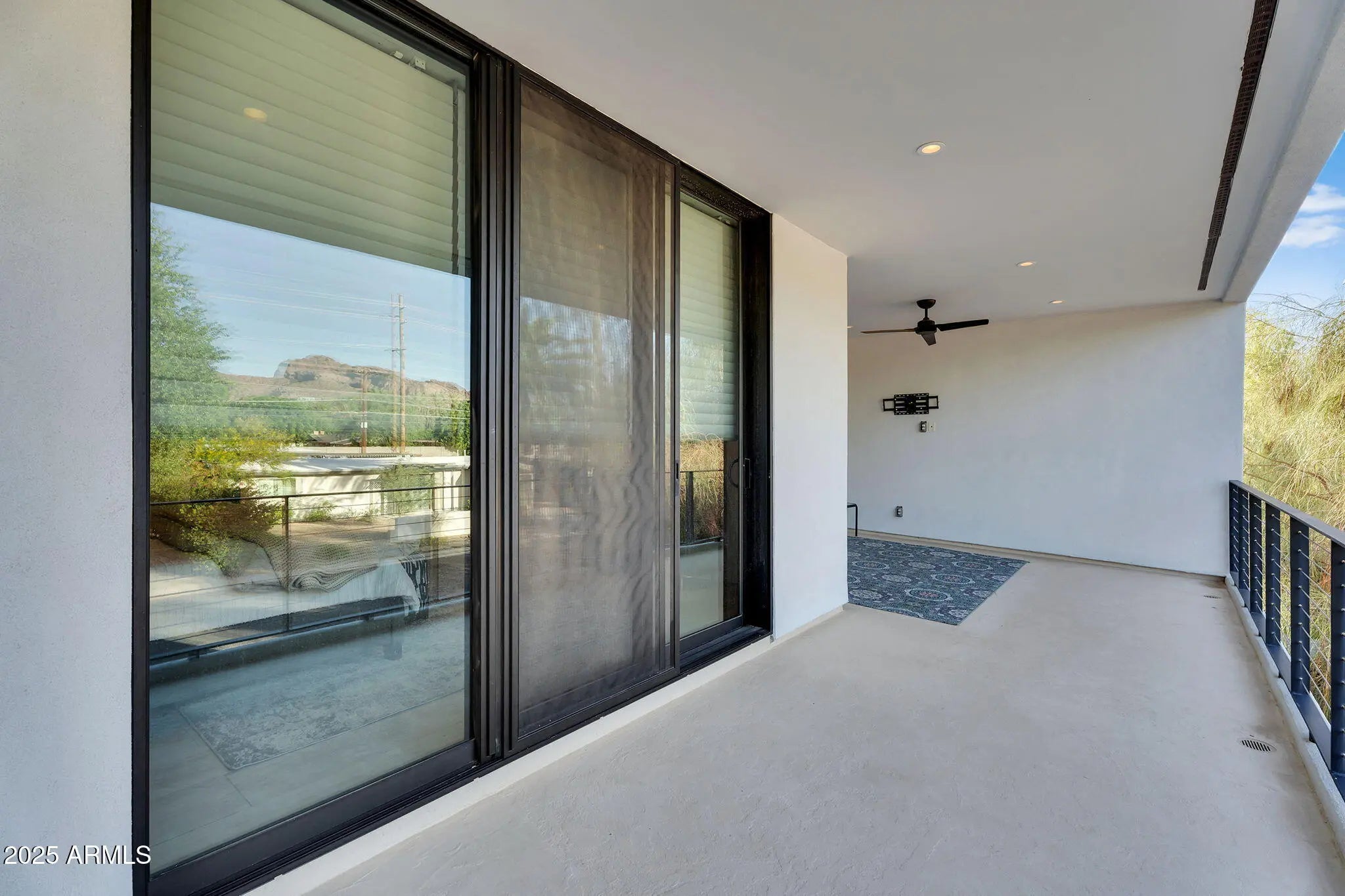 Stunning and rare view of Camelback from full-length front balcony of this state-of-the-art tech forward 2021 Arcadia rebuild. Aesthetic + Function + Comfort. Custom architecture utilizes the orientation of the lot to create maximum shade in the outdoor spaces, & design elements like multiple skylights to provide ample natural light inside. Every detail was meticulously chosen to suit the space and support energy efficiency. Soaring ceilings, custom staircase, gourmet kitchen with Bosch smart appliances, motorized blinds, tankless gas water heater, Caesarstone counters, soaking tub, stackable sliding glass doors, abundant lighting, canal adjacent. This home showcases quality construction, top of the line products, and optimal use of space to offer a unique luxury Arcadia living experience " 2,326 sq ft / 6,000 sq ft lot fully rebuilt in 2021 " 3 bedrooms / 2 bathrooms with split floor plan " Custom wood-block staircase, vaulted ceilings, exposed brick accents, and skylights in great room and primary bath " Gourmet quartz kitchen with Bosch smart appliances, oversized island, and custom cabinetry (incl. roll-up "garage-door" cabinet) Upstairs loft + primary suite open to full-length balcony with Camelback Mountain views " Primary suite features two walk-in closets and spa-style bath with quartz counters, walk-in shower, dual vanities, and bidet toilet " Downstairs: two bedrooms + oversized soaking tub bath; one bedroom with private patio access " Outdoor living: covered patio with gas fireplace, multiple shaded patios, private backyard with lawn, trees, and 6' privacy wall Smart features: recessed dimmable lighting, motorized blinds, Wi-Fi fans, Ring alarm + wiring for cameras, Ethernet/TV jacks in every room, centralized fiber hub " Dual industrial HVAC, tankless water heater, whole-home filtration " 2-car attached garage with smart opener, and Ethernet port Arcadia location walkable to restaurants, shops, grocery; minutes to Scottsdale, Phoenix, Camelback Mountain trails, and Arcadia High / SUSD schools