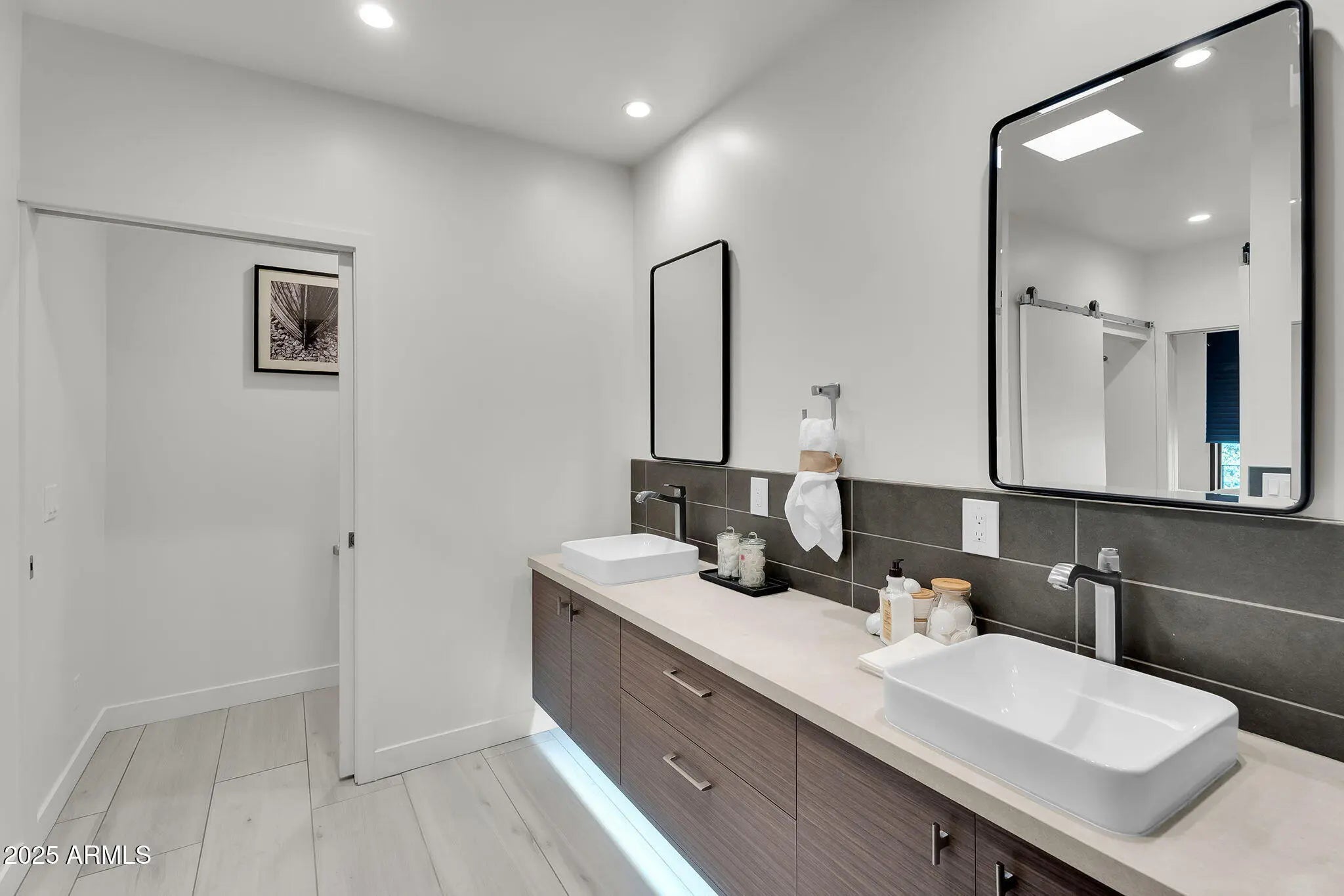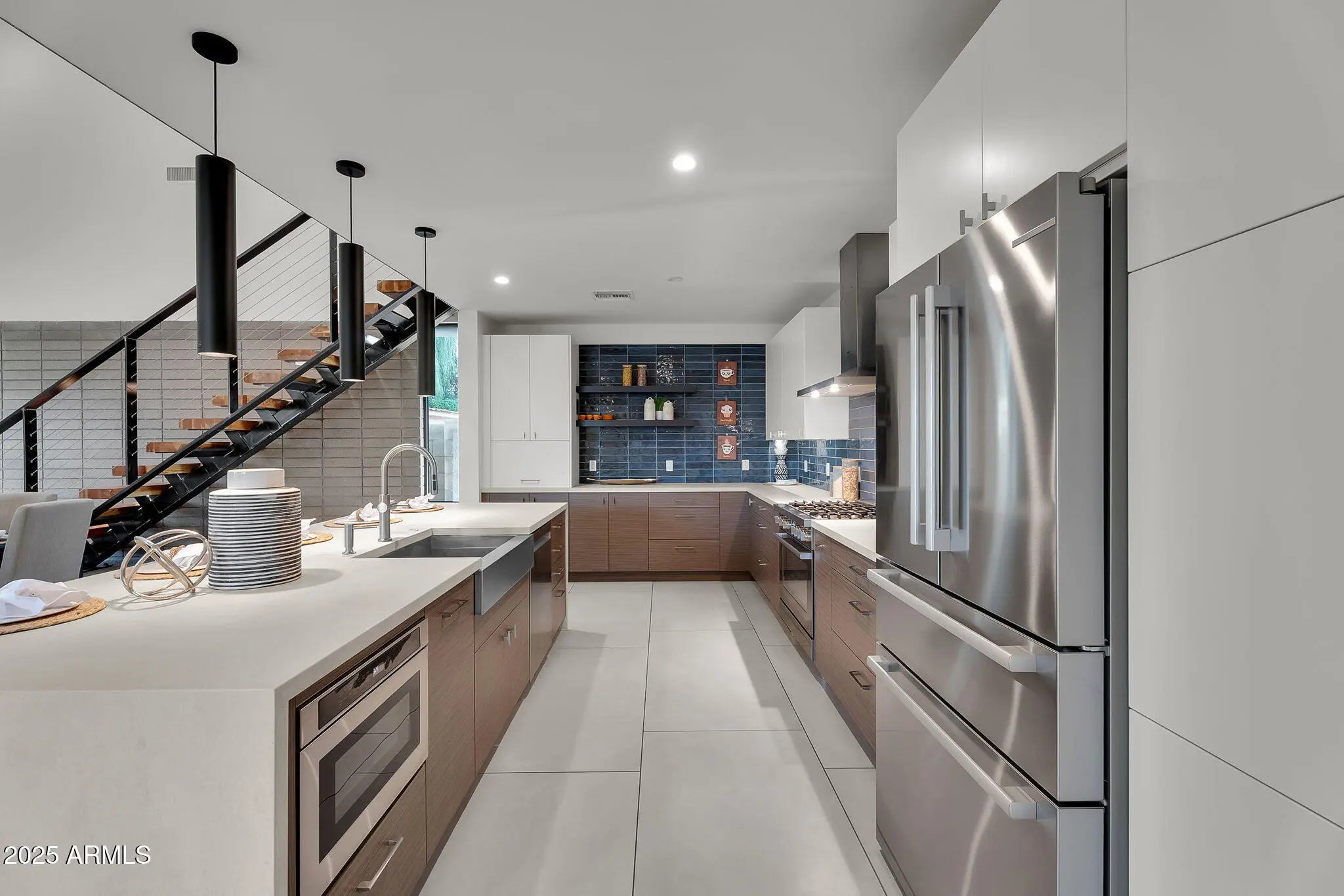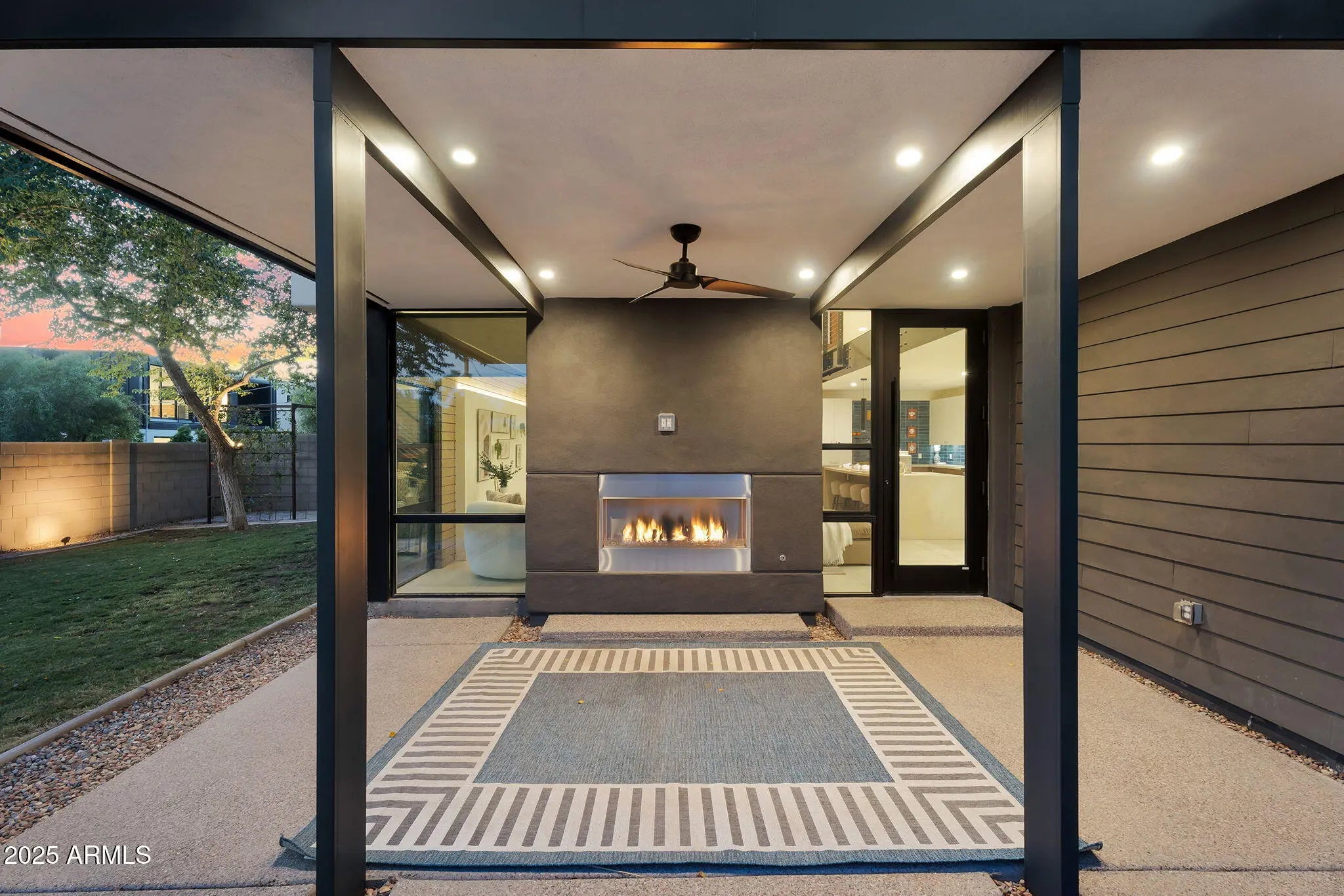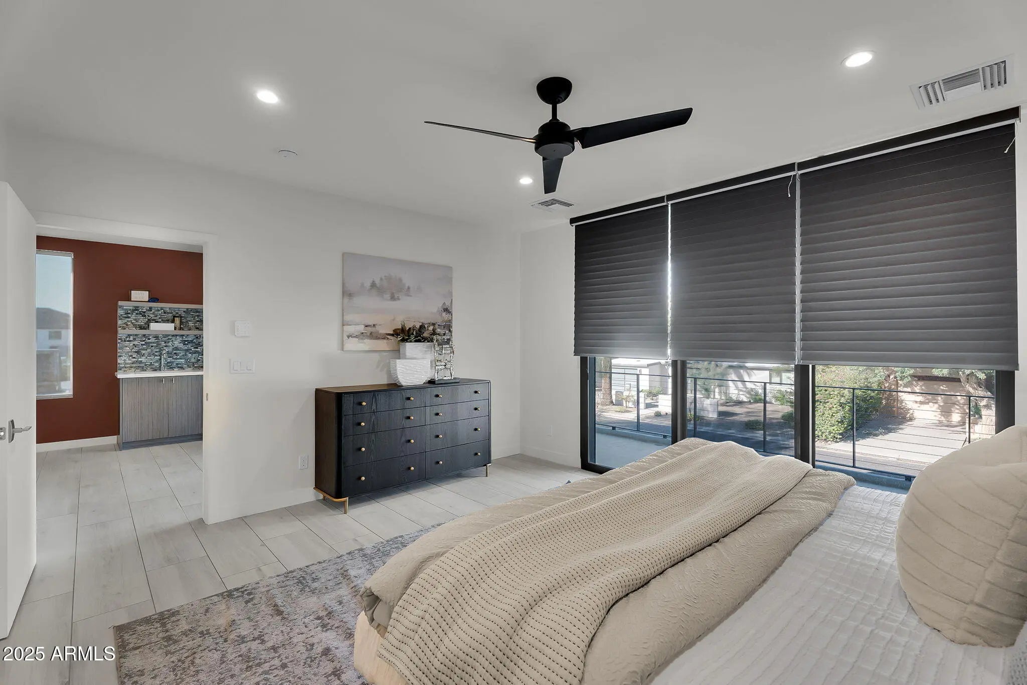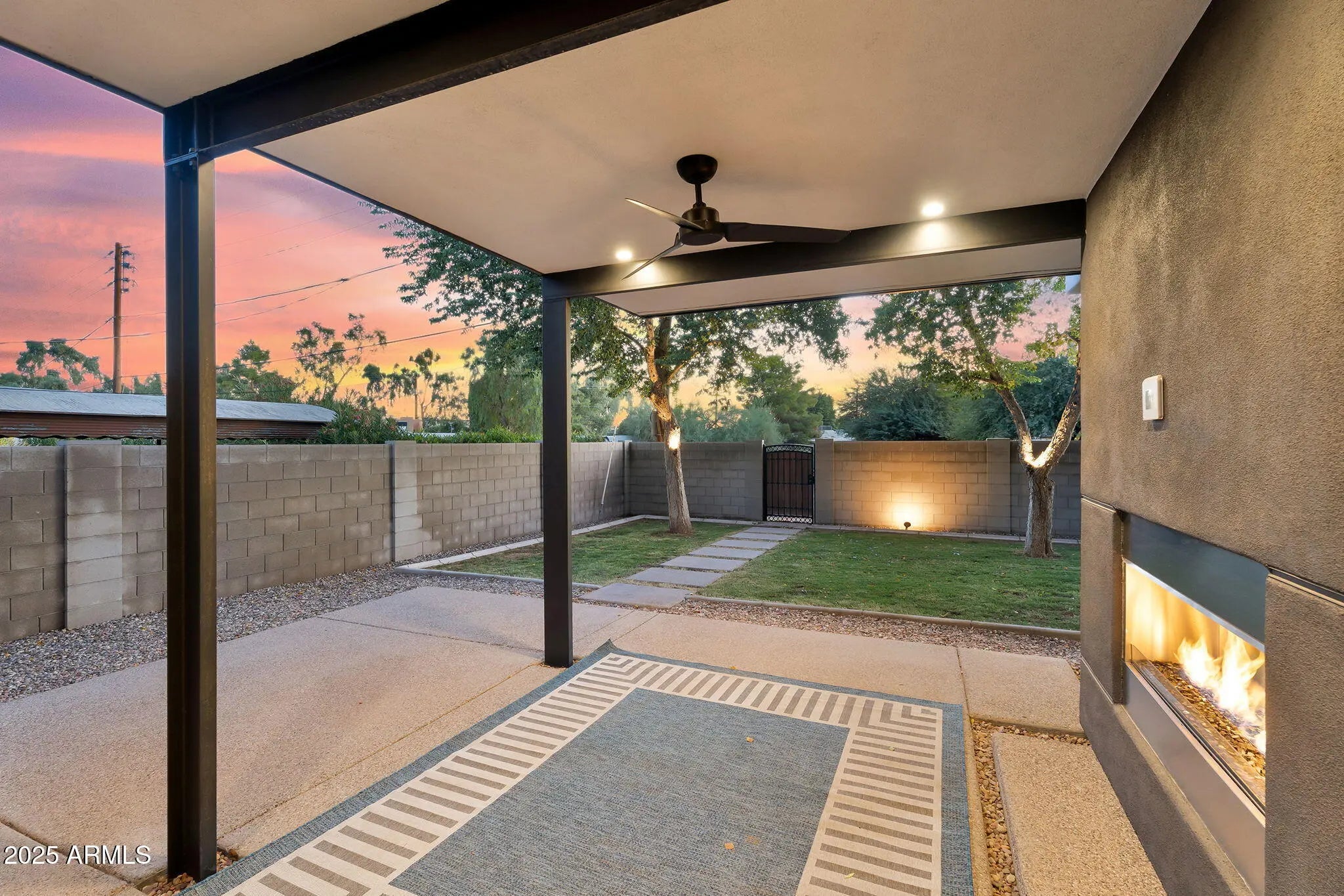Stunning and rare view of Camelback from full-length front balcony of this state-of-the-art tech forward 2021 Arcadia rebuild. Aesthetic + Function + Comfort. Custom architecture utilizes the orientation of the lot to create maximum shade in the outdoor spaces, & design elements like multiple skylights to provide ample natural light inside. Every detail was meticulously chosen to suit the space and support energy efficiency. Soaring ceilings, custom staircase, gourmet kitchen with Bosch smart appliances, motorized blinds, tankless gas water heater, Caesarstone counters, soaking tub, stackable sliding glass doors, abundant lighting, canal adjacent. This home showcases quality construction, top of the line products, and optimal use of space to offer a unique luxury Arcadia living experience " 2,326 sq ft / 6,000 sq ft lot fully rebuilt in 2021 " 3 bedrooms / 2 bathrooms with split floor plan " Custom wood-block staircase, vaulted ceilings, exposed brick accents, and skylights in great room and primary bath " Gourmet quartz kitchen with Bosch smart appliances, oversized island, and custom cabinetry (incl. roll-up "garage-door" cabinet) Upstairs loft + primary suite open to full-length balcony with Camelback Mountain views " Primary suite features two walk-in closets and spa-style bath with quartz counters, walk-in shower, dual vanities, and bidet toilet " Downstairs: two bedrooms + oversized soaking tub bath; one bedroom with private patio access " Outdoor living: covered patio with gas fireplace, multiple shaded patios, private backyard with lawn, trees, and 6' privacy wall Smart features: recessed dimmable lighting, motorized blinds, Wi-Fi fans, Ring alarm + wiring for cameras, Ethernet/TV jacks in every room, centralized fiber hub " Dual industrial HVAC, tankless water heater, whole-home filtration " 2-car attached garage with smart opener, and Ethernet port Arcadia location walkable to restaurants, shops, grocery; minutes to Scottsdale, Phoenix, Camelback Mountain trails, and Arcadia High / SUSD schools