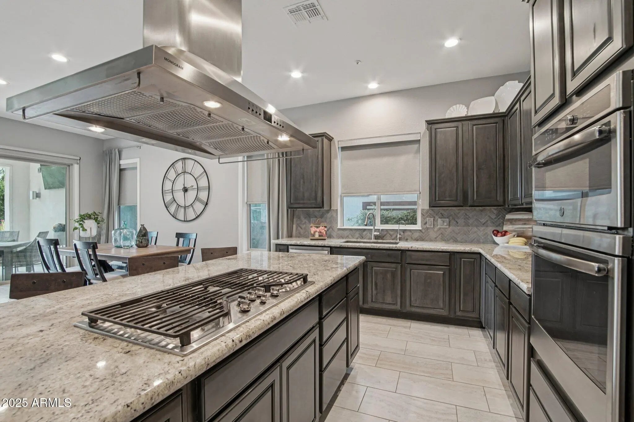 WOW - Incredible opportunity - **PRICE INCLUDES the OPTION for a truly turnkey experience. FURNISHINGS, Accessories and Household Items can be included in the price. (see documents tab for included items. ABSOLUTELY STUNNING Montage floorplan w/OWNED SOLAR (no electric bills), dual primary suites, 3 full bathrooms, den/office & 3-CAR TANDEM GARAGE. This location is PRIME - situated on a PREMIUM N/S lot overlooking a LUSH GREENBELT w/an AMAZING MOUNTAIN VIEW. As you drive up, notice the mature landscaping w/PAVER DRIVEWAY/WALKWAY/PORCH, premium stone elevation & 8' front door w/frosted glass. Step inside & you will feel like you are in a model home - w/PURE LUXURY & meticulously maintained. The GOURMET KITCHEN boasts a GORGEOUS GRANITE countertop, oversized breakfast bar/island, GAS COOKTOP, UPGRADED maple raised panel cabinets (42'' UPPERS), SS appliances including hood, DESIGNER backsplash, reverse osmosis, rollouts & recycle center. You will love the great room & dining area w/large windows that deliver an abundance of natural light, a CUSTOM ENTERTAINMENT wall & cabinet. Dual primary suites feature SPACIOUS bedrooms w/walk-in closets, CROWN MOLDING & can lighting. Also, BEAUTIFUL bathrooms w/GRANITE countertops & dual sinks. One of the bedrooms has a CUSTOM DESIGNED WALL as well. Third bathroom for visiting guests/family & laundry room w/upper & lower cabinets. Large office/den has double doors for privacy & CROWN MOLDING. Beautiful contemporary tile flooring, larger baseboards & 8' solid core doors throughout. Step outside to a SPECTACULAR RESORT OASIS backing to an expansive greenbelt (no neighbor behind you) - spacious covered patio w/tile - enclosed on both sides for privacy w/sconce lighting & TV outlet, CUSTOM IRON WATER FEATURE, synthetic grass, mister system & beautiful landscaping w/plants growing up decorative iron fencing that offers a picturesque setting for relaxation & entertaining. The 3-car garage w/epoxy floors, sink, extra fluorescent & can lighting, built-in cabinets w/countertops plus hanging racks are ideal for storage & hobbies. No detail has been overlooked in this DREAM HOME. Additional upgrades: cathedralized insulation in the attic, central vacuum system, crown molding in entry, water softener & water filtration system, window coverings, light fixtures, electrical outlets, ceiling fans, sinks, faucets, two-tone interior paint & trash enclosure. Located in award-winning gated, 55+ Trilogy at Vistancia with 5-star-resort style amenities at the 35,000 SF Kiva Club with indoor & outdoor pools, fitness center, day spa, cafe, billiards, meeting rooms, library, tennis courts, pickle ball, bocce ball, events & a plethora of activities to choose from. Outstanding Gary Panks-designed golf course is woven throughout the neighborhood. The Mita Club has additional community amenities. Easy access from Trilogy to the 303, shopping, restaurants, entertainment, Lake Pleasant & Paloma Park.