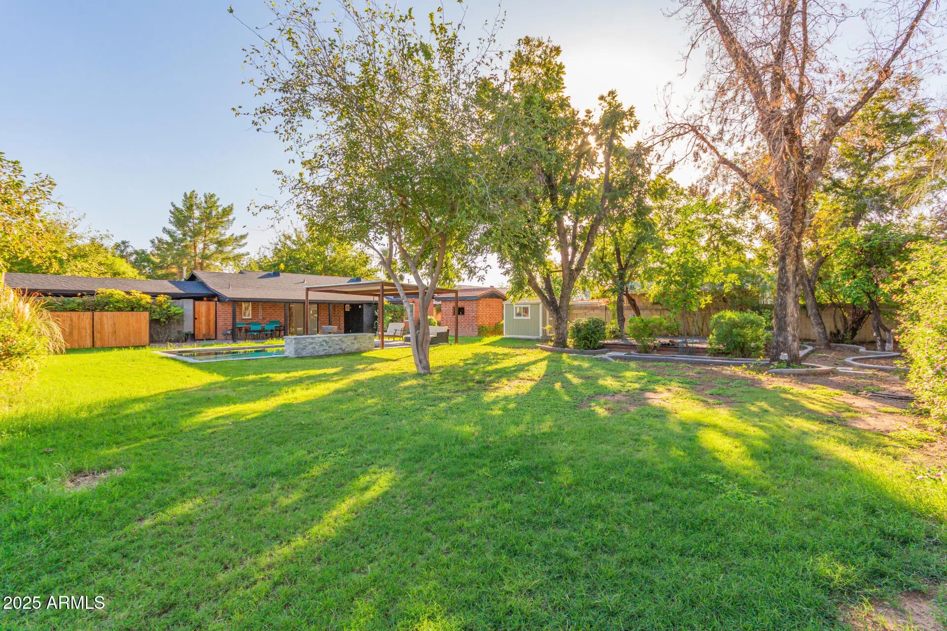 Step into this vintage red brick charmer nestled on an incredible 15,000 sq ft irrigated double lot. You'll love the lush landscape filled with mature citrus and pecan trees—and no HOA! Inside light pours through corner windows, highlighting fresh interior and exterior paint, newer primary roof, and a rebuilt carport with a brand new roof and footers. The backyard is pure MAGIC with a sparkling pool, two sheds, and endless room to play, garden, or entertain. Close to dining, shopping, and the light rail! It's an ABSOLUTE must see!