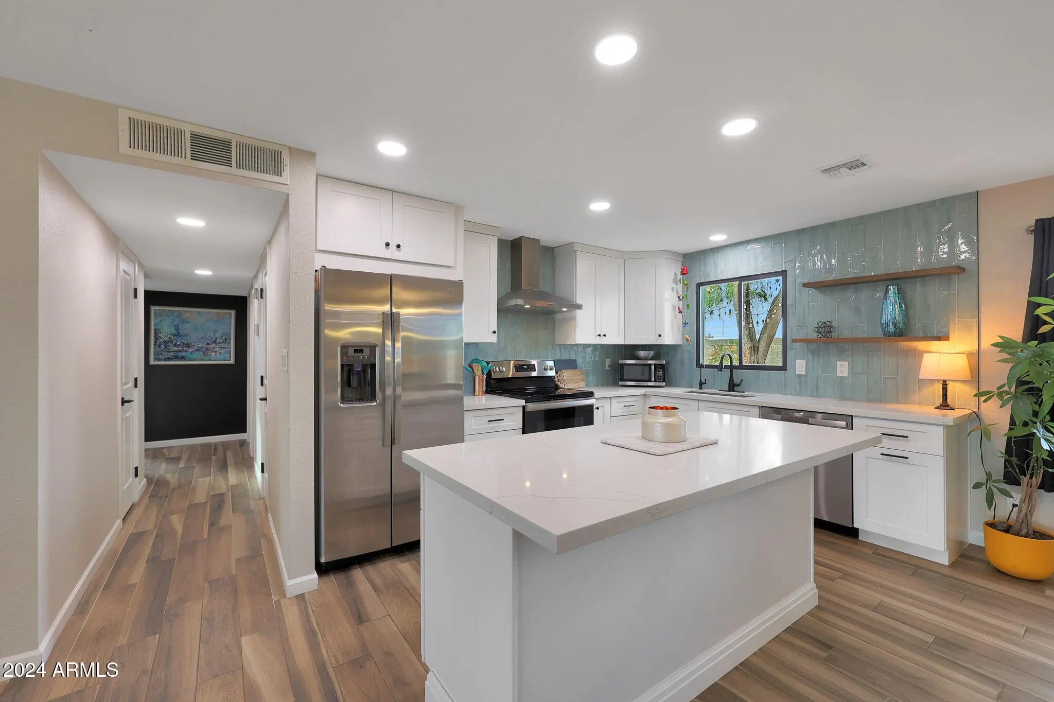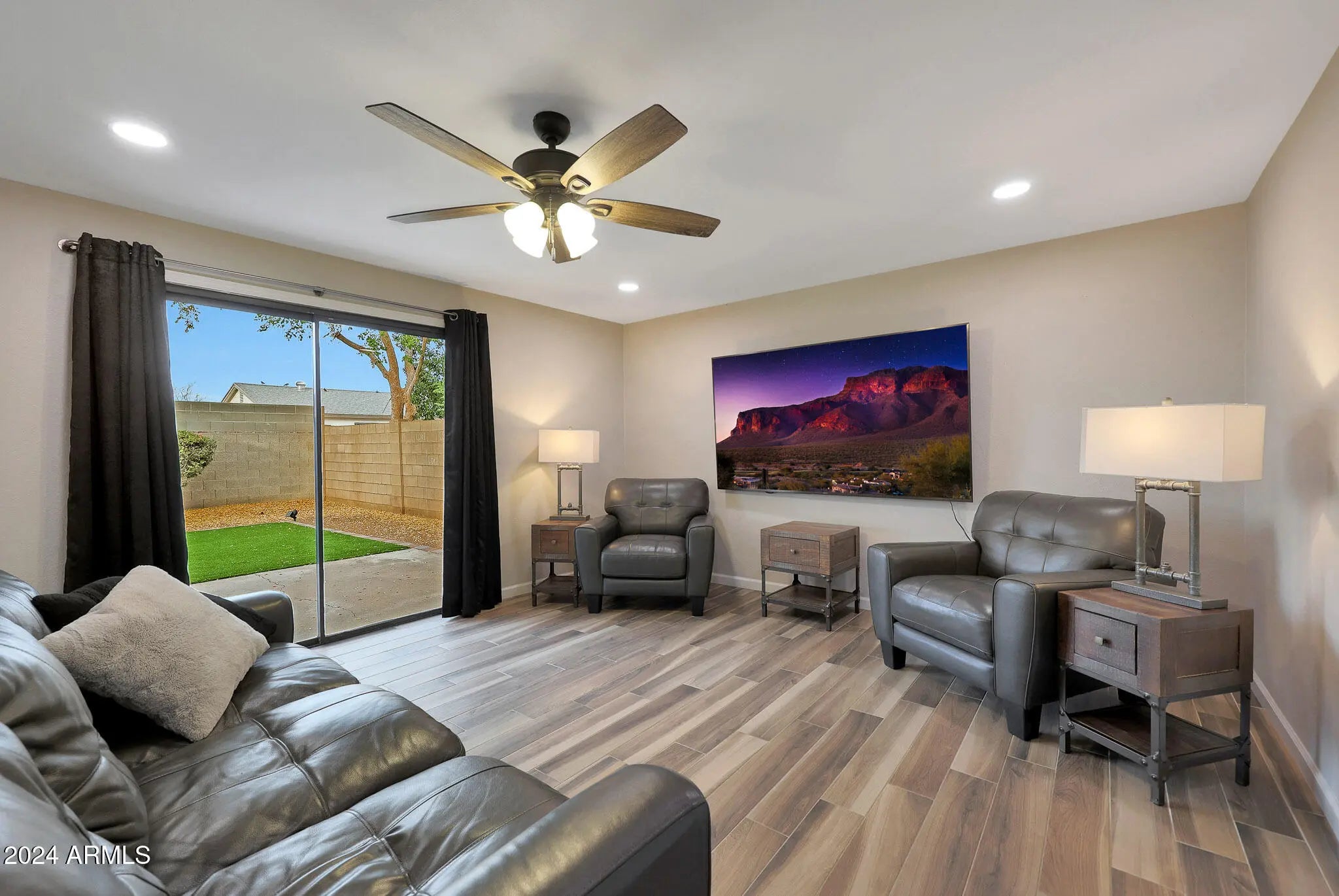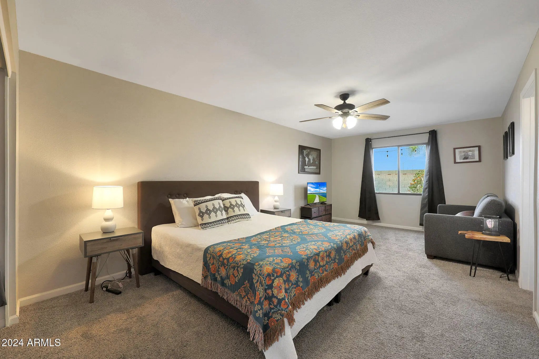 ***SELLER IS GIVING A 2-YEAR TEMPORARY INTEREST RATE BUYDOWN - 2% LOWER IN YEAR 1, 1% LOWER IN YEAR 2*** Beautifully remodeled home on a corner lot in a prime location! Great curb appeal with a welcoming front courtyard. Large driveway that can accommodate vehicles of any size, and enough room to park an RV if desired. NO HOA! Upon entry, this open concept floor plan has a formal living/lounge area that flows into the kitchen/dining/family room. Remodeled with modern finishes from top to bottom. Wood plank tile throughout and carpet in the bedrooms. White shaker style cabinets throughout. Stunning kitchen with a gorgeous turquoise tile backsplash that runs all the way up to the ceiling and complements the white cabinets and quartz countertops perfectly. Single basin sink. Reverse osmosis tap for purified drinking water. Recessed lighting throughout the kitchen and family room. Huge primary suite with enough space for a king size bed, night stands, AND a sitting area! Quartz countertops and comfort-height vanities with impeccable tile showers in both bathrooms. Spacious laundry room with enough space for a 2nd refrigerator. Ceiling fans in every room. North/south exposure. Low maintenance landscaping with gravel in front and turf/gravel in the back. Wood burning fire pit to enjoy too! Low property taxes. Very convenient location near the 51 freeway, allowing for easy access to any part of the valley. Tons of shopping, dining, and entertainment nearby to enjoy. Only minutes away from Scottsdale! BONUS: All furniture and TV's can be included with the sale!