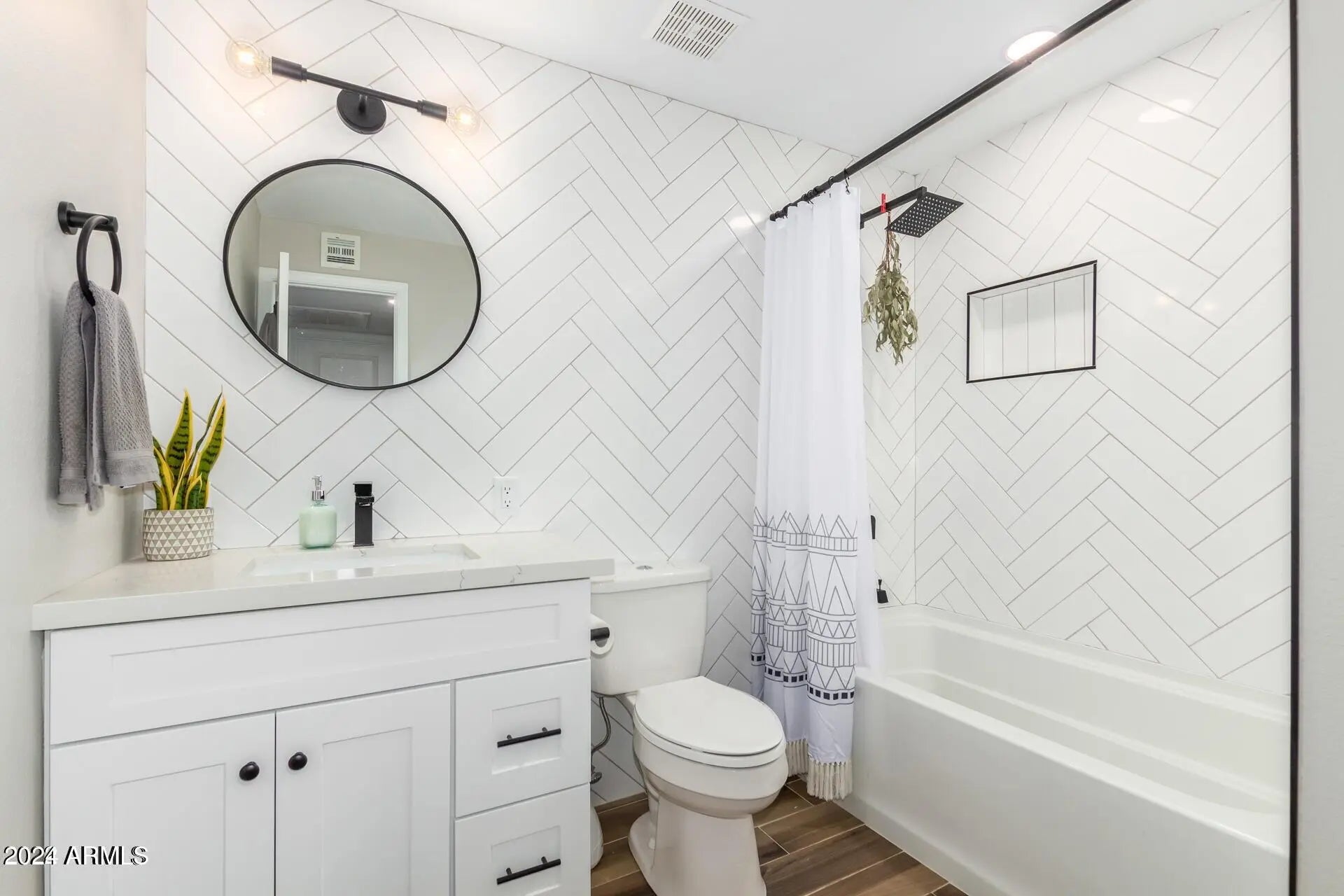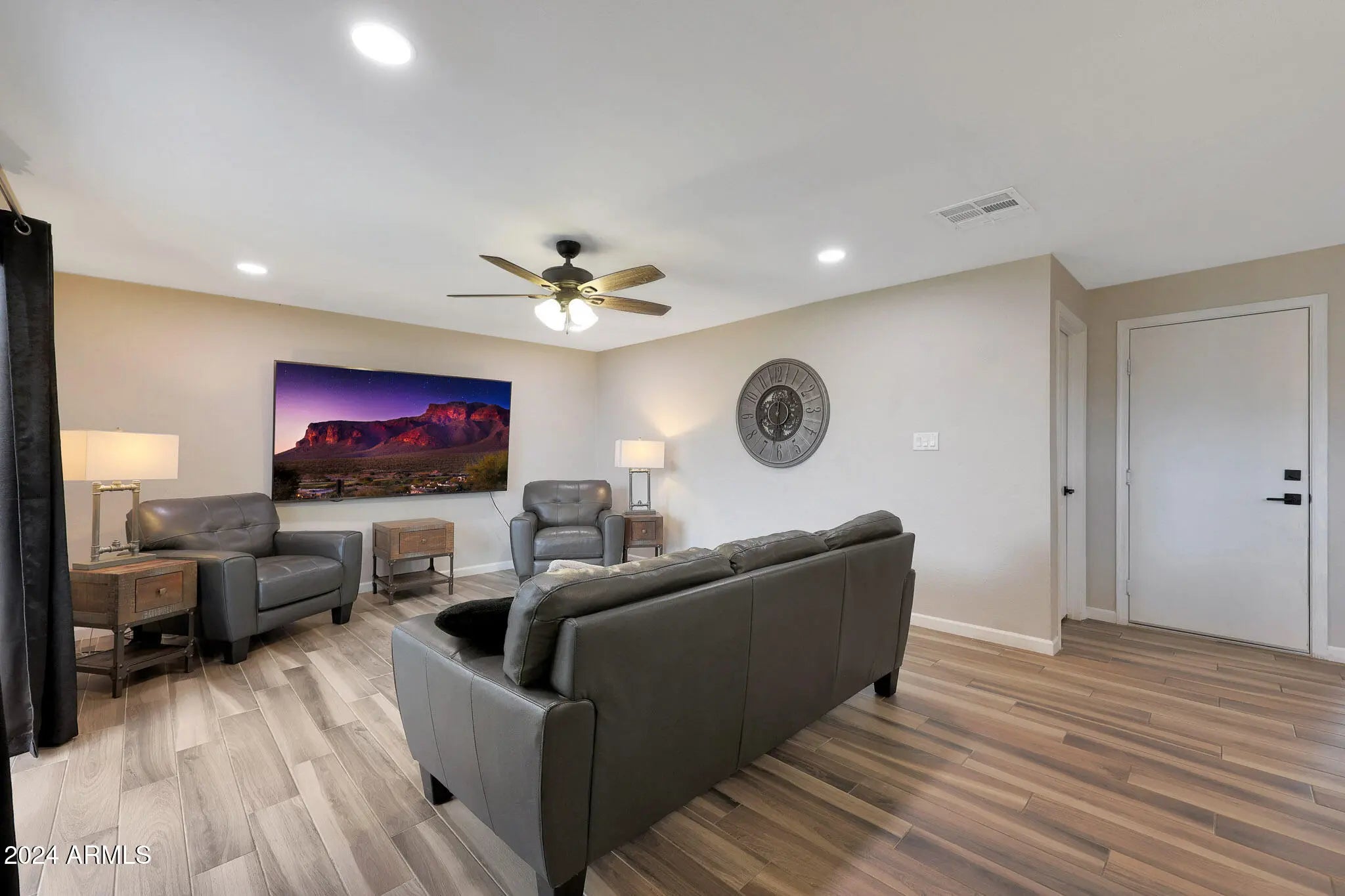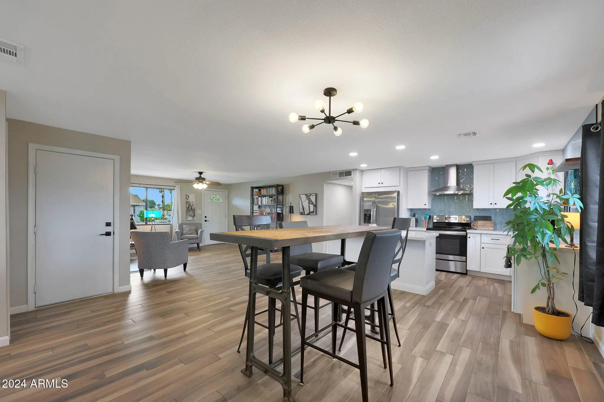***SELLER IS GIVING A 2-YEAR TEMPORARY INTEREST RATE BUYDOWN - 2% LOWER IN YEAR 1, 1% LOWER IN YEAR 2*** Beautifully remodeled home on a corner lot in a prime location! Great curb appeal with a welcoming front courtyard. Large driveway that can accommodate vehicles of any size, and enough room to park an RV if desired. NO HOA! Upon entry, this open concept floor plan has a formal living/lounge area that flows into the kitchen/dining/family room. Remodeled with modern finishes from top to bottom. Wood plank tile throughout and carpet in the bedrooms. White shaker style cabinets throughout. Stunning kitchen with a gorgeous turquoise tile backsplash that runs all the way up to the ceiling and complements the white cabinets and quartz countertops perfectly. Single basin sink. Reverse osmosis tap for purified drinking water. Recessed lighting throughout the kitchen and family room. Huge primary suite with enough space for a king size bed, night stands, AND a sitting area! Quartz countertops and comfort-height vanities with impeccable tile showers in both bathrooms. Spacious laundry room with enough space for a 2nd refrigerator. Ceiling fans in every room. North/south exposure. Low maintenance landscaping with gravel in front and turf/gravel in the back. Wood burning fire pit to enjoy too! Low property taxes. Very convenient location near the 51 freeway, allowing for easy access to any part of the valley. Tons of shopping, dining, and entertainment nearby to enjoy. Only minutes away from Scottsdale! BONUS: All furniture and TV's can be included with the sale!