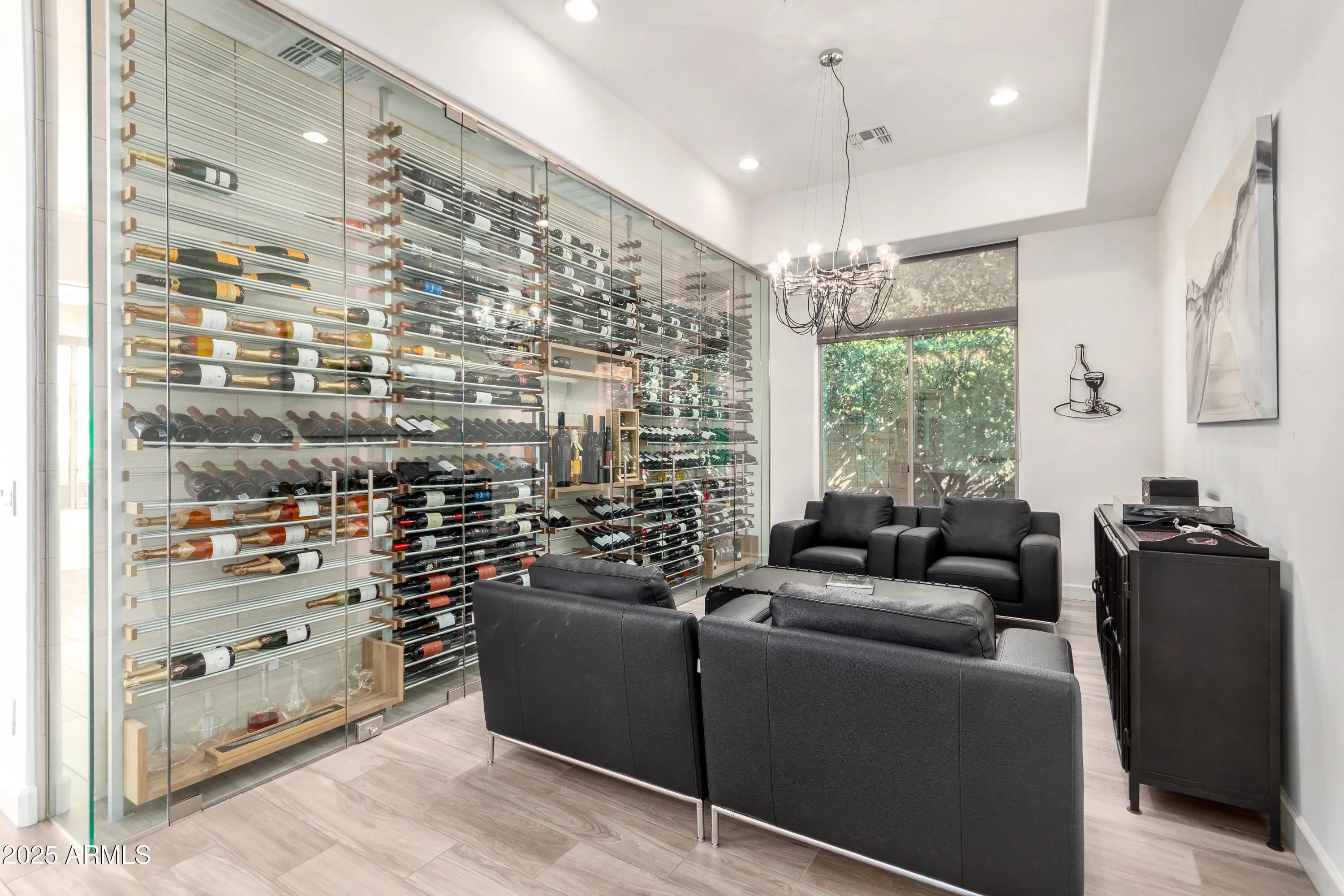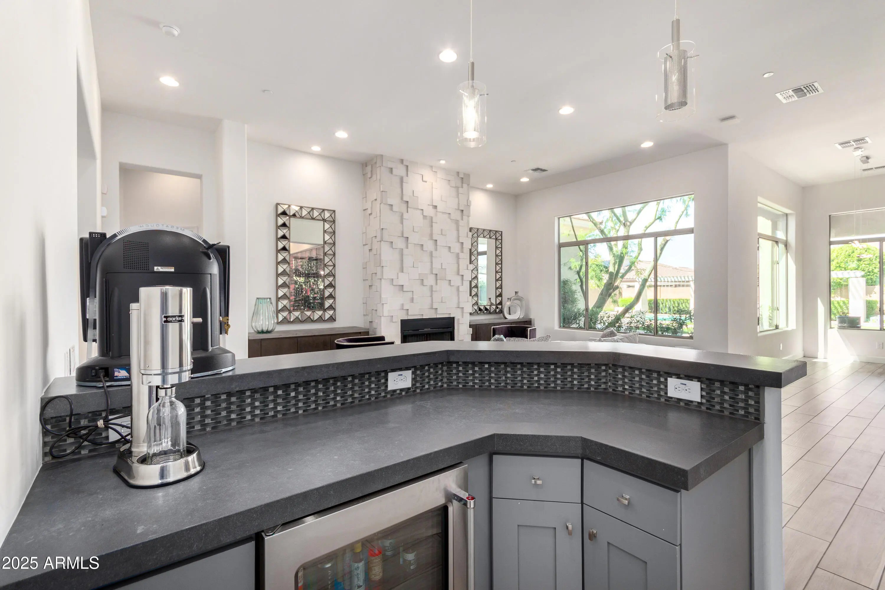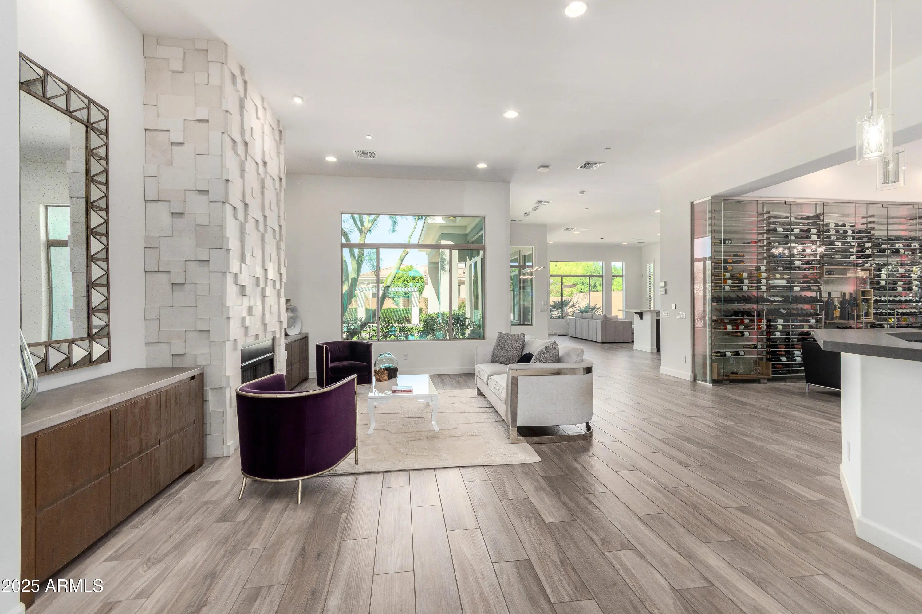 An Entertainer's Paradise in the Coveted Gated Community of Montevista! Welcome to this exceptional Mercado Great Room residence—an entertainer's dream where luxury, comfort, and sophistication converge. Designed for those who appreciate fine living, this home showcases an exquisite open floor plan ideal for hosting family and friends in effortless style. The show-stopping centerpiece is the custom glass-enclosed wine wall, artfully designed to hold over 500 bottles and equipped with its own independent cooling system. Adjustable ambient lighting offers a full spectrum of colors and moods, transforming the space into a visual masterpiece. A separate built-in bar enhances the home's entertaining potential, creating the perfect setting for gatherings large or intimate. The Chef's Kitchen is a culinary sanctuary featuring an island, breakfast bar, gourmet gas cooktop, pot filler, stainless steel appliances, and stunning granite countertops. A spacious walk-in pantry ensures ample storage, while abundant natural light and multiple windows infuse the space with warmth and openness. The split floor plan provides privacy and flexibility, with each Bedroom boasting its own private en-suite Bath. The Primary Suite is a serene retreat with dual walk-in closets, separate vanities, extensive cabinetry, a soaking tub, and an oversized walk-in showeran ideal blend of elegance and relaxation. Step outside to your own resort-inspired backyard oasis, complete with a sparkling play pool and cascading water feature, full outdoor kitchen, authentic pizza oven, fire pit, and lush green lawn. Whether hosting sunset soirées or enjoying quiet evenings under the stars, this space is pure perfection. Additional highlights include a Tesla Solar Package with Powerwall, offering energy efficiency and backup power storage. Located just minutes from Desert Ridge and historic downtown Cave Creek, and a short stroll to the community's five-acre park featuring pickleball, basketball, and playgrounds. This home truly has it all. Come experience luxury living reimagined in Montevista where every detail has been thoughtfully crafted for those who expect the extraordinary.