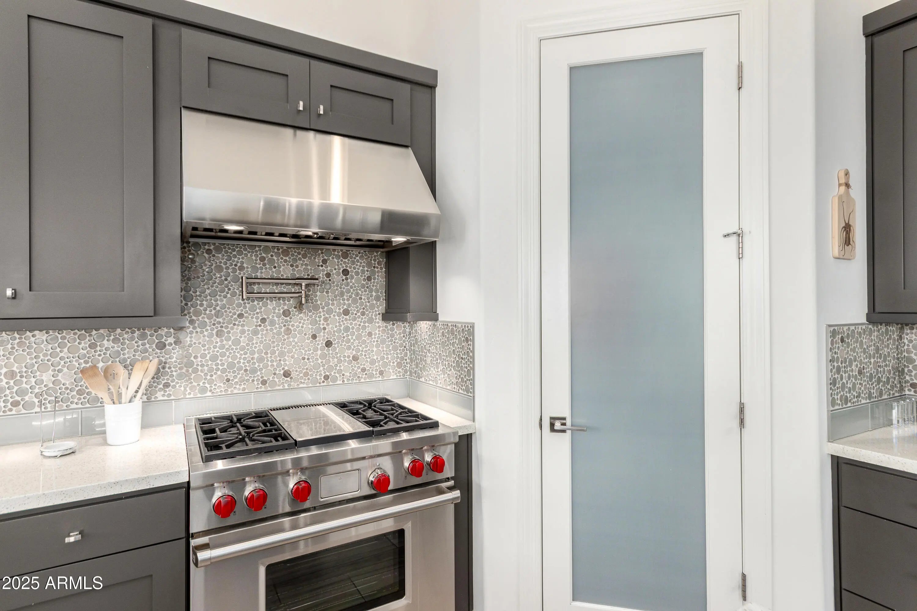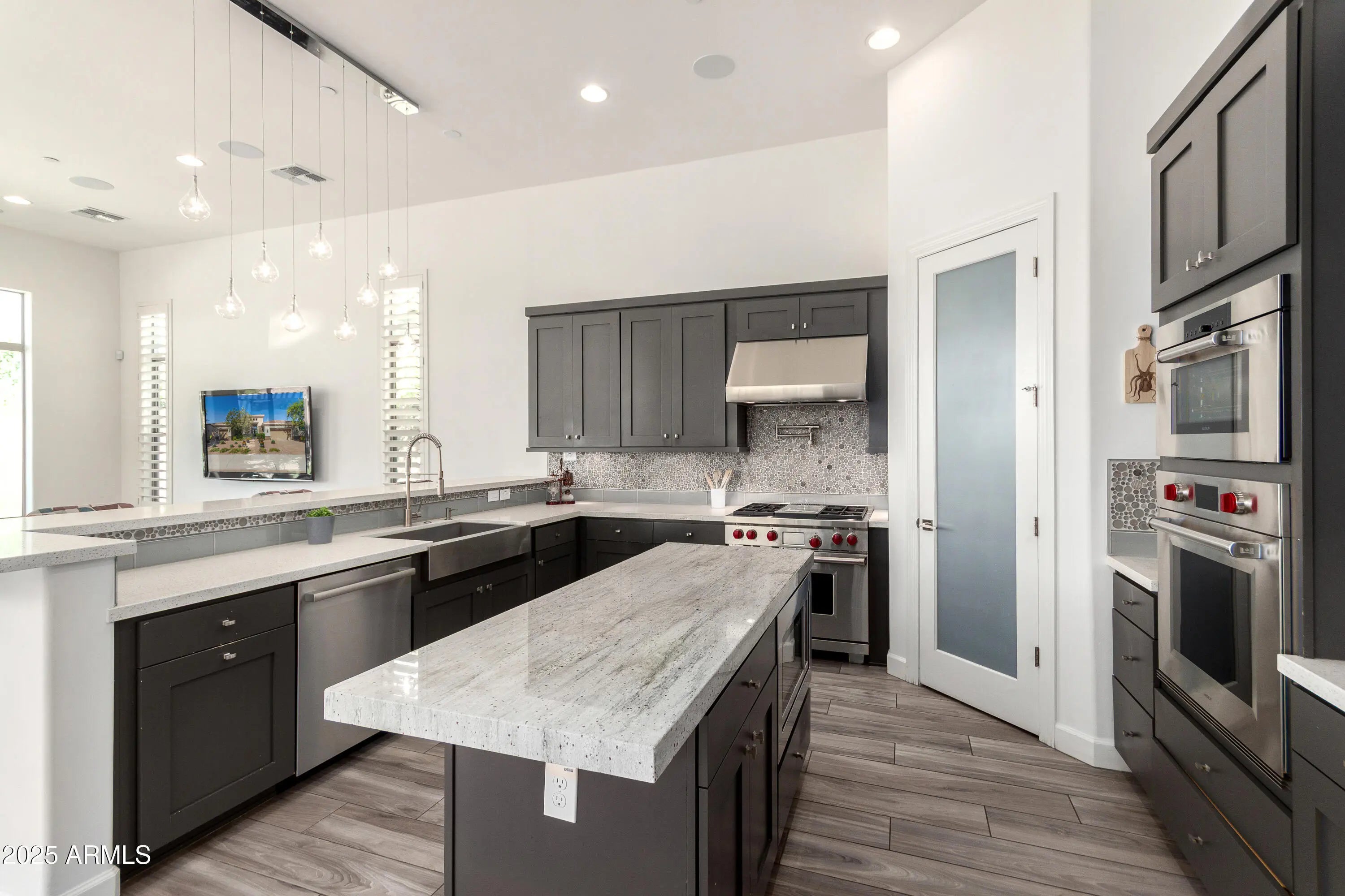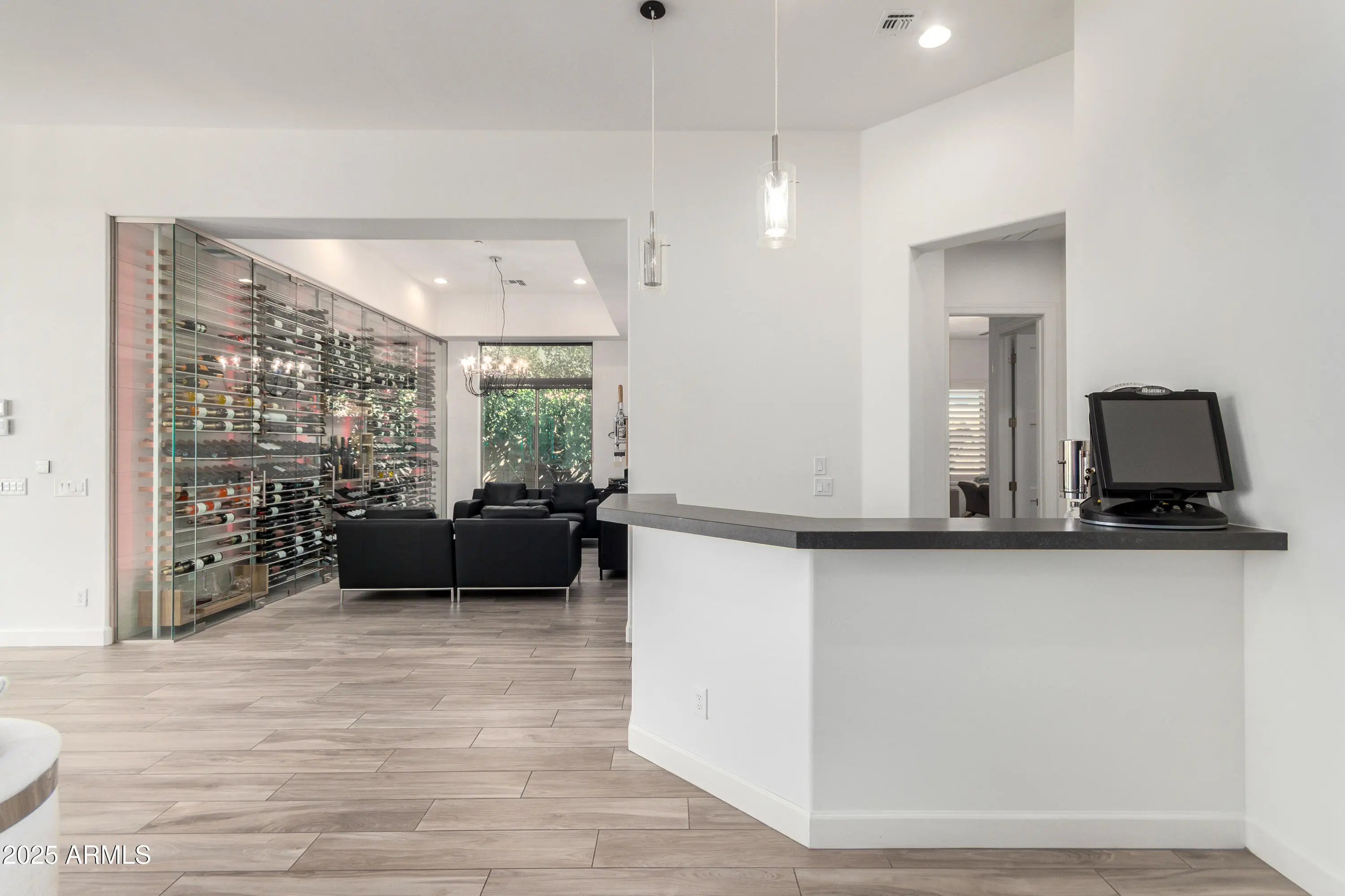 An Entertainer's Paradise in the Coveted Gated Community of Montevista! Welcome to this exceptional Mercado Great Room residence—an entertainer's dream where luxury, comfort, and sophistication converge. Designed for those who appreciate fine living, this home showcases an exquisite open floor plan ideal for hosting family and friends in effortless style. The show-stopping centerpiece is the custom glass-enclosed wine wall, artfully designed to hold over 500 bottles and equipped with its own independent cooling system. Adjustable ambient lighting offers a full spectrum of colors and moods, transforming the space into a visual masterpiece. A separate built-in bar enhances the home's entertaining potential, creating the perfect setting for gatherings large or intimate. The Chef's Kitchen is a culinary sanctuary featuring an island, breakfast bar, gourmet gas cooktop, pot filler, stainless steel appliances, and stunning granite countertops. A spacious walk-in pantry ensures ample storage, while abundant natural light and multiple windows infuse the space with warmth and openness. The split floor plan provides privacy and flexibility, with each Bedroom boasting its own private en-suite Bath. The Primary Suite is a serene retreat with dual walk-in closets, separate vanities, extensive cabinetry, a soaking tub, and an oversized walk-in showeran ideal blend of elegance and relaxation. Step outside to your own resort-inspired backyard oasis, complete with a sparkling play pool and cascading water feature, full outdoor kitchen, authentic pizza oven, fire pit, and lush green lawn. Whether hosting sunset soirées or enjoying quiet evenings under the stars, this space is pure perfection. Additional highlights include a Tesla Solar Package with Powerwall, offering energy efficiency and backup power storage. Located just minutes from Desert Ridge and historic downtown Cave Creek, and a short stroll to the community's five-acre park featuring pickleball, basketball, and playgrounds. This home truly has it all. Come experience luxury living reimagined in Montevista where every detail has been thoughtfully crafted for those who expect the extraordinary.
